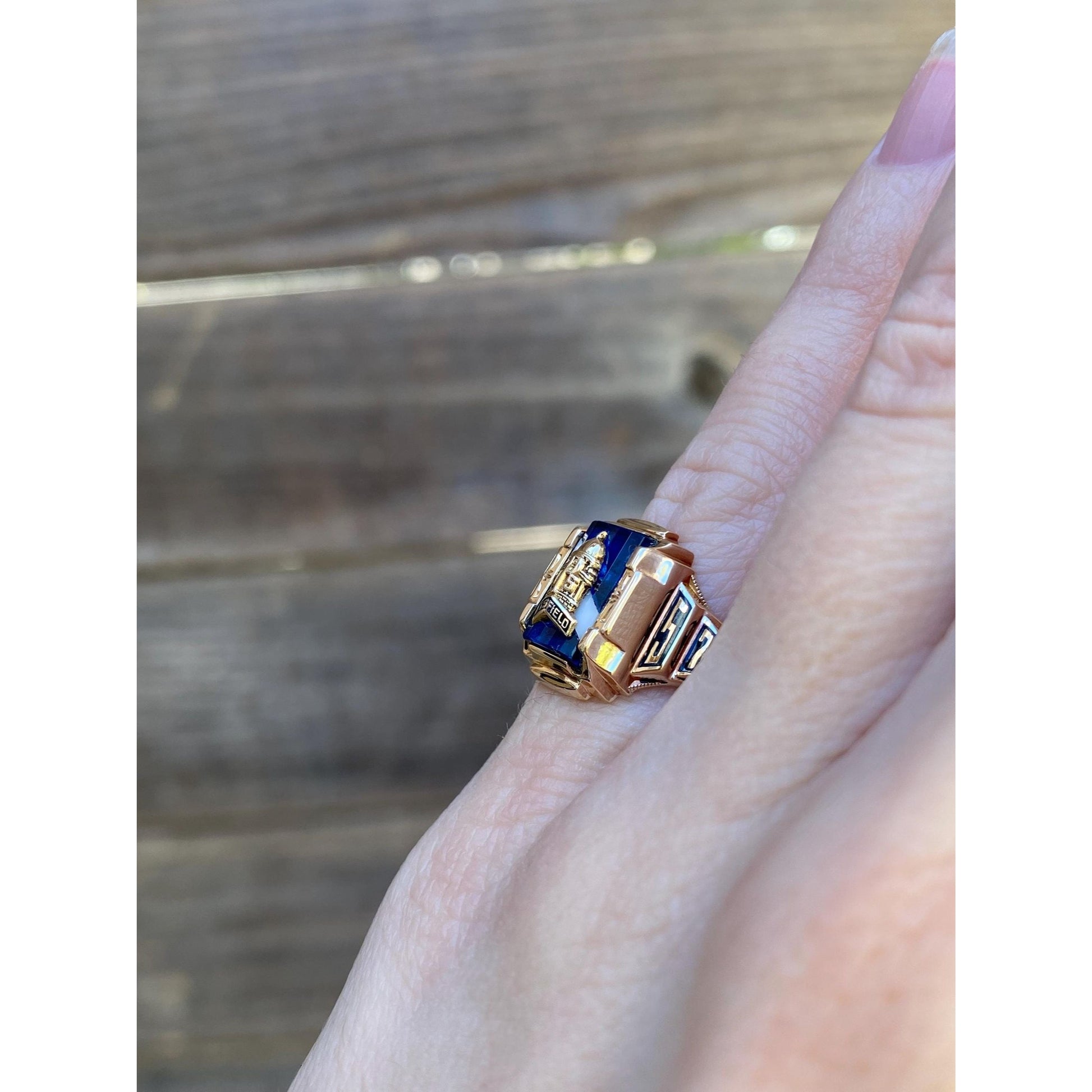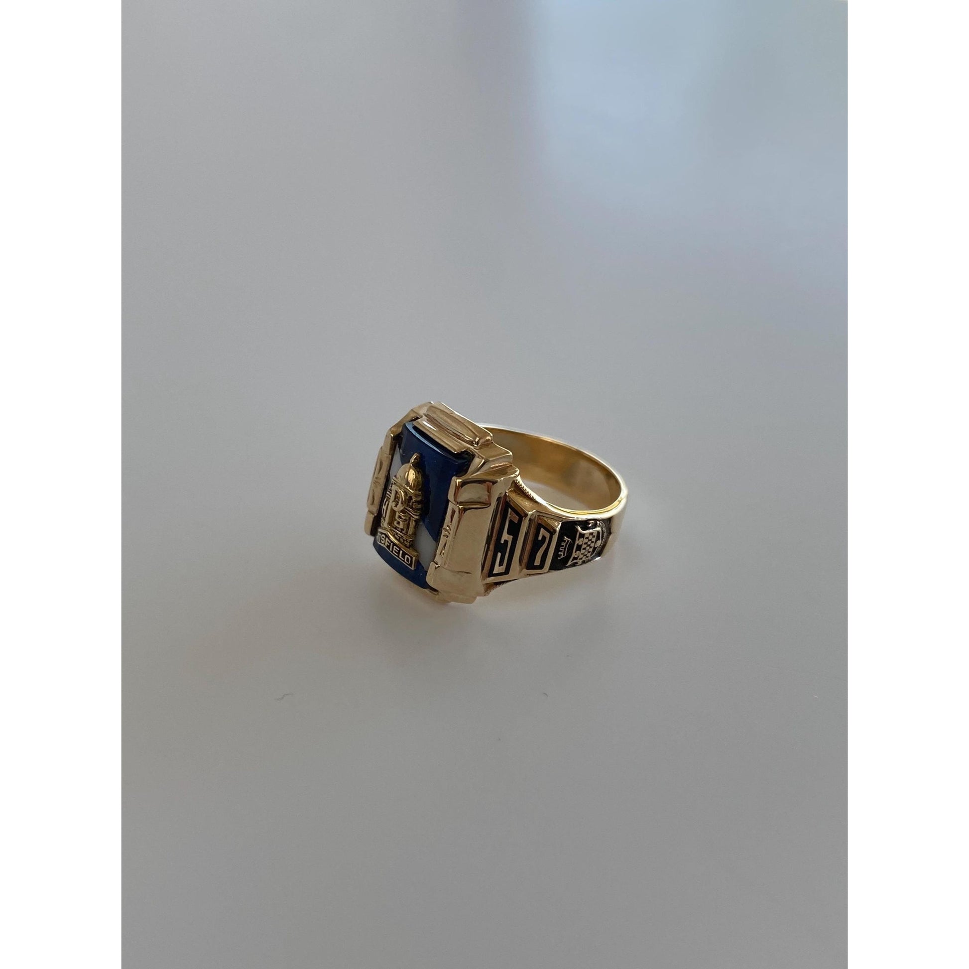 Vintage Solid 10k Yellow Gold Blue Spinel Pittsfield 1957 Class Ring - Size 4