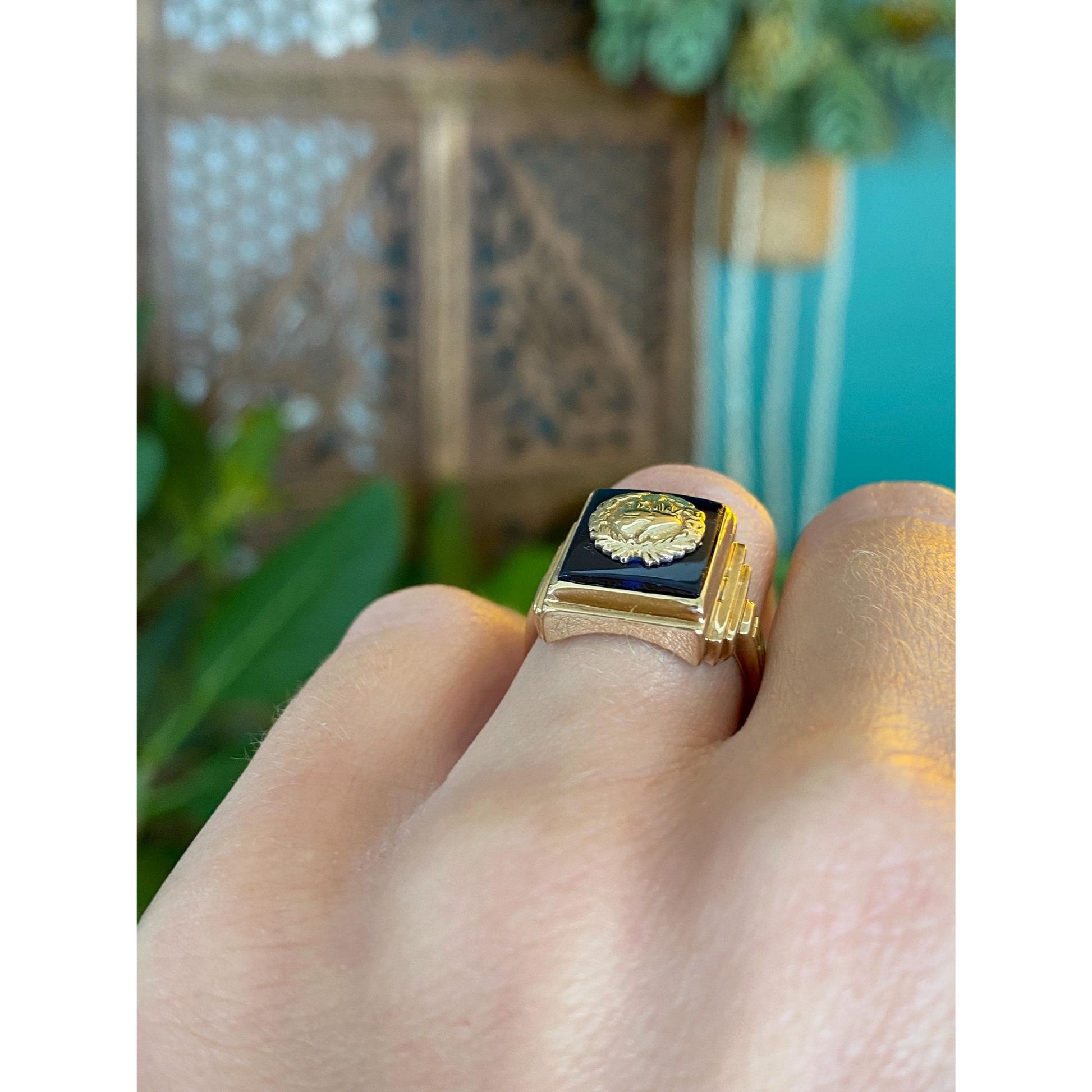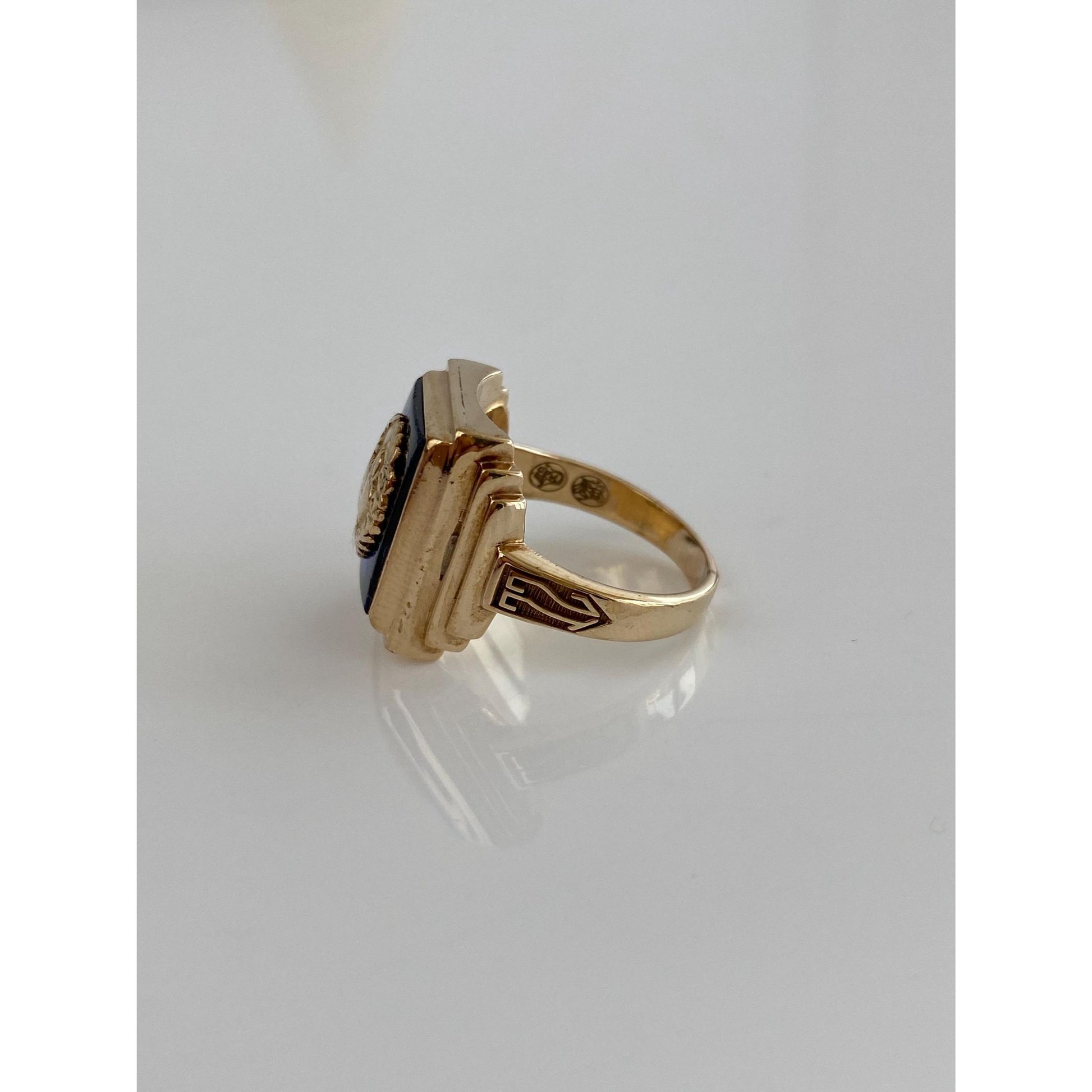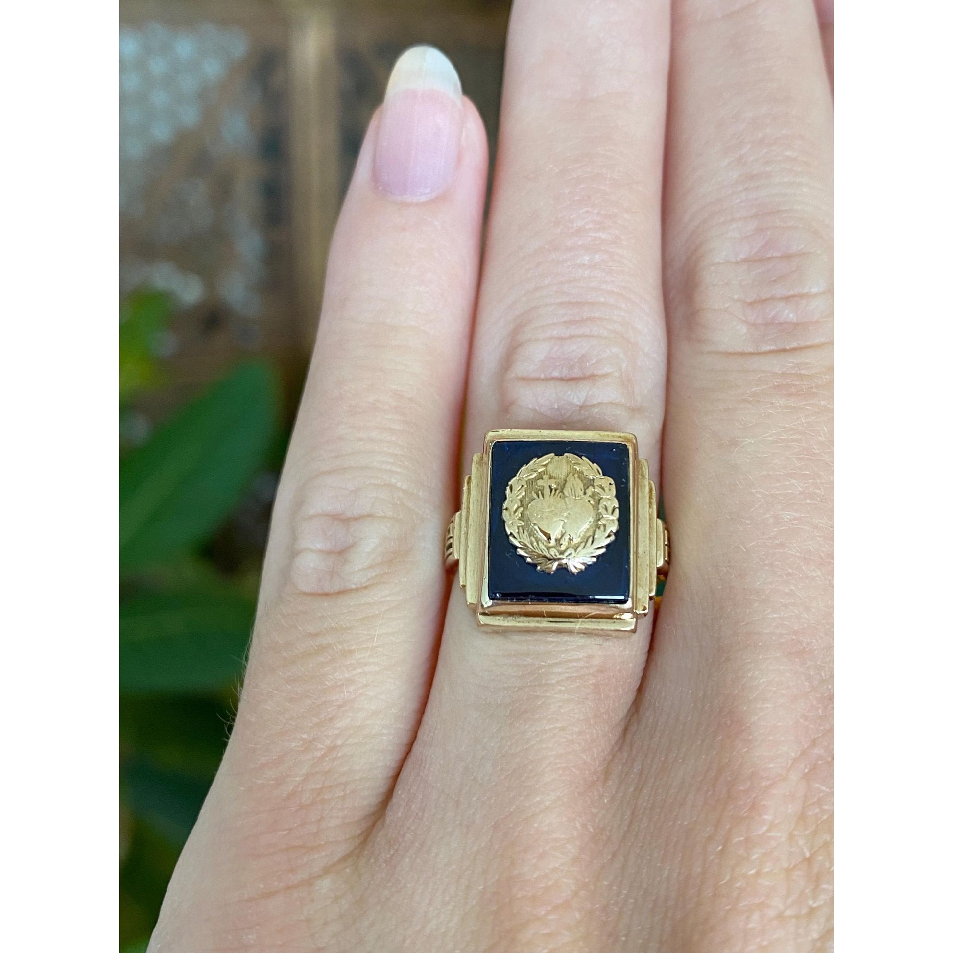 Vintage Solid 10k Yellow Gold Blue Spinel Sacred Heart Class Ring - Size 5.5