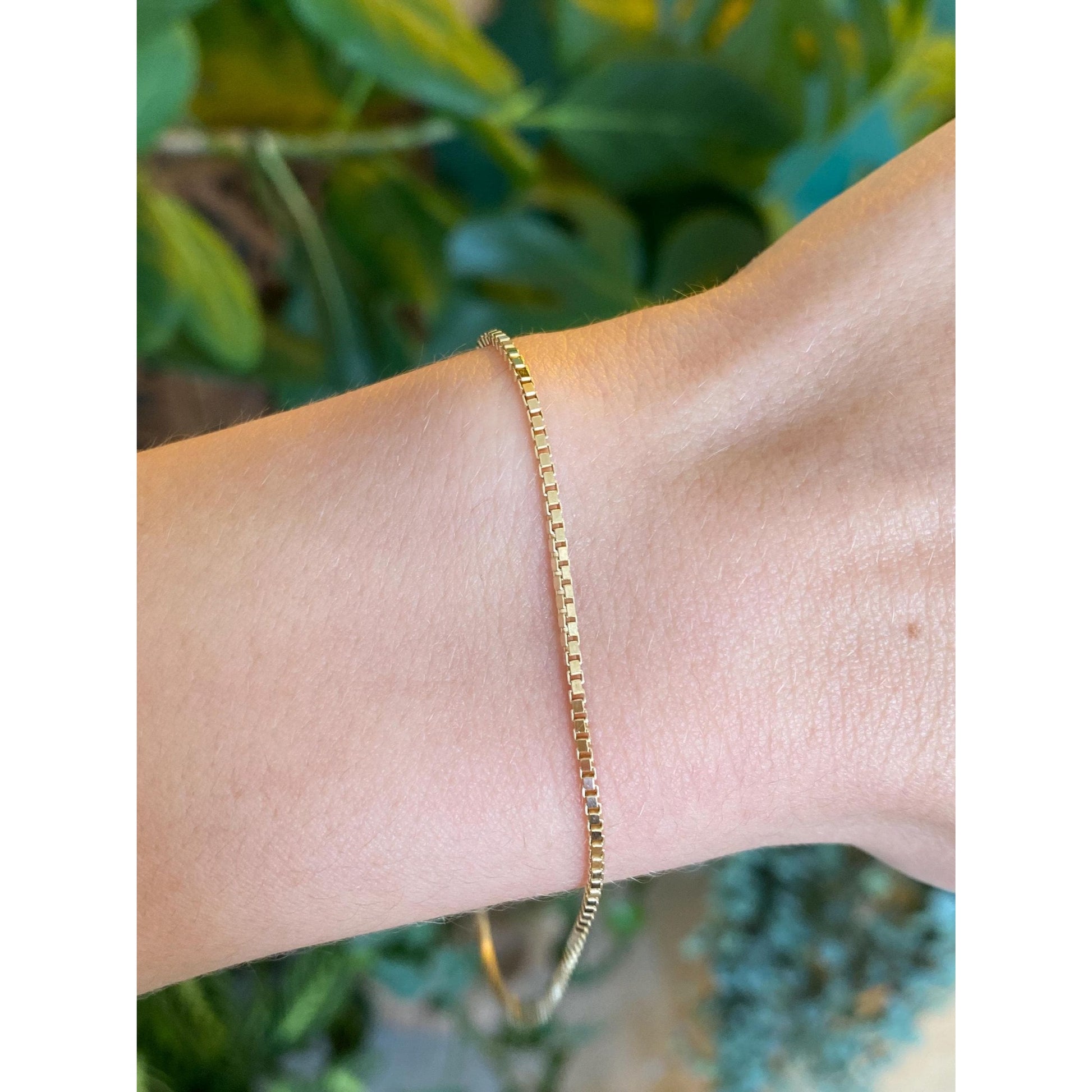 Vintage Solid 10k Yellow Gold Box Chain Anklet Bracelet - 9.25 inches