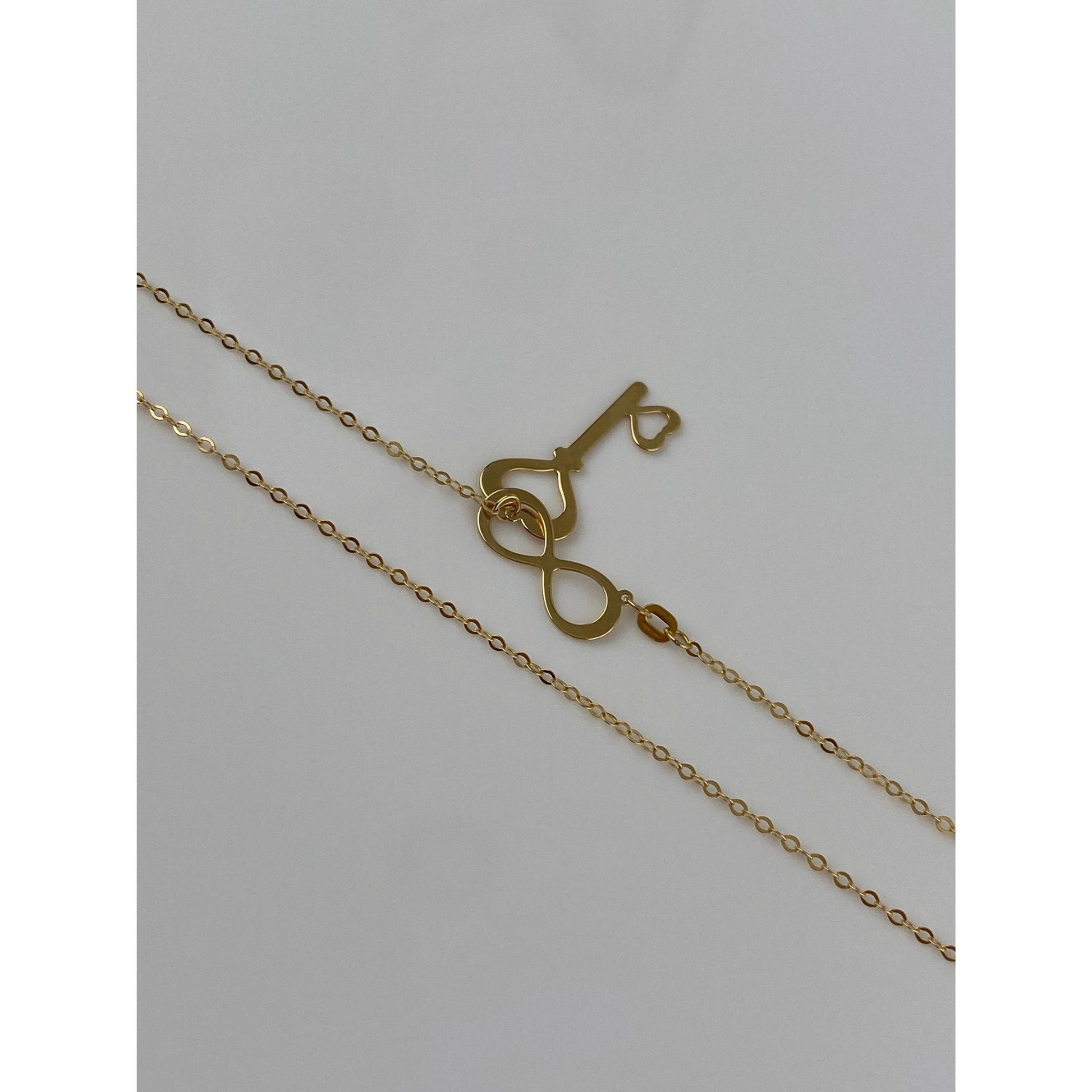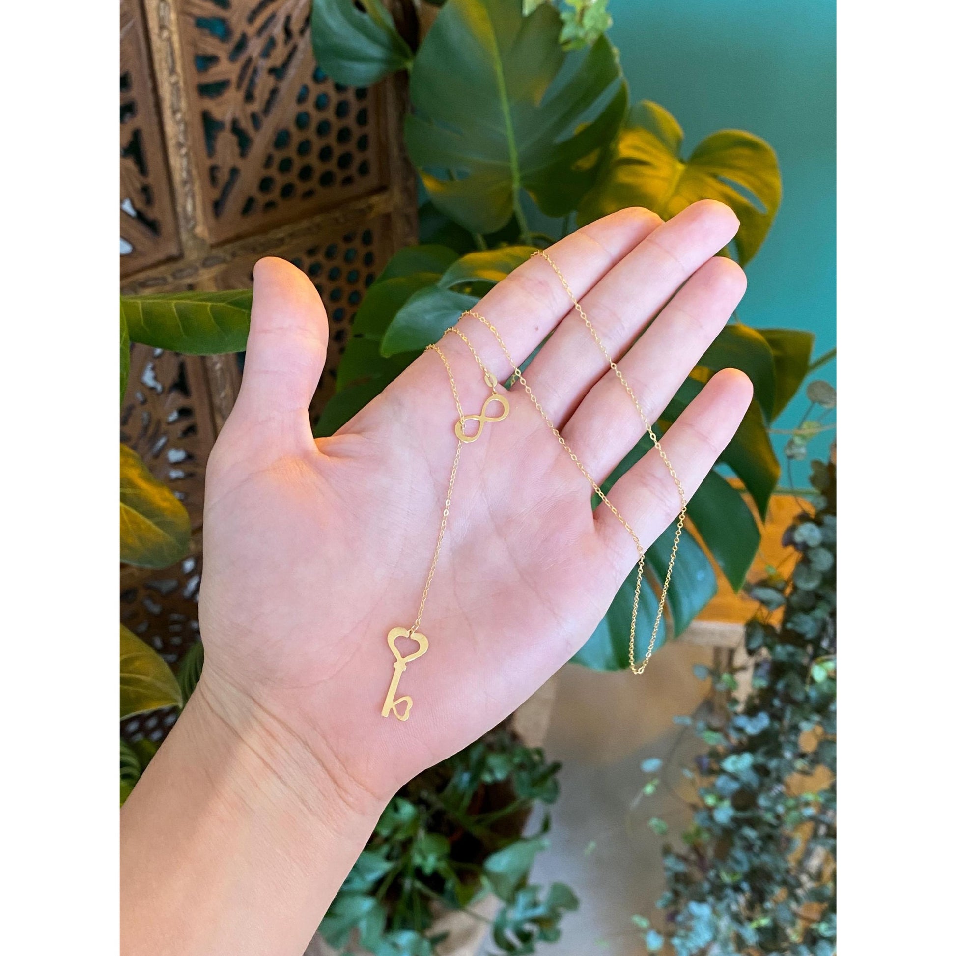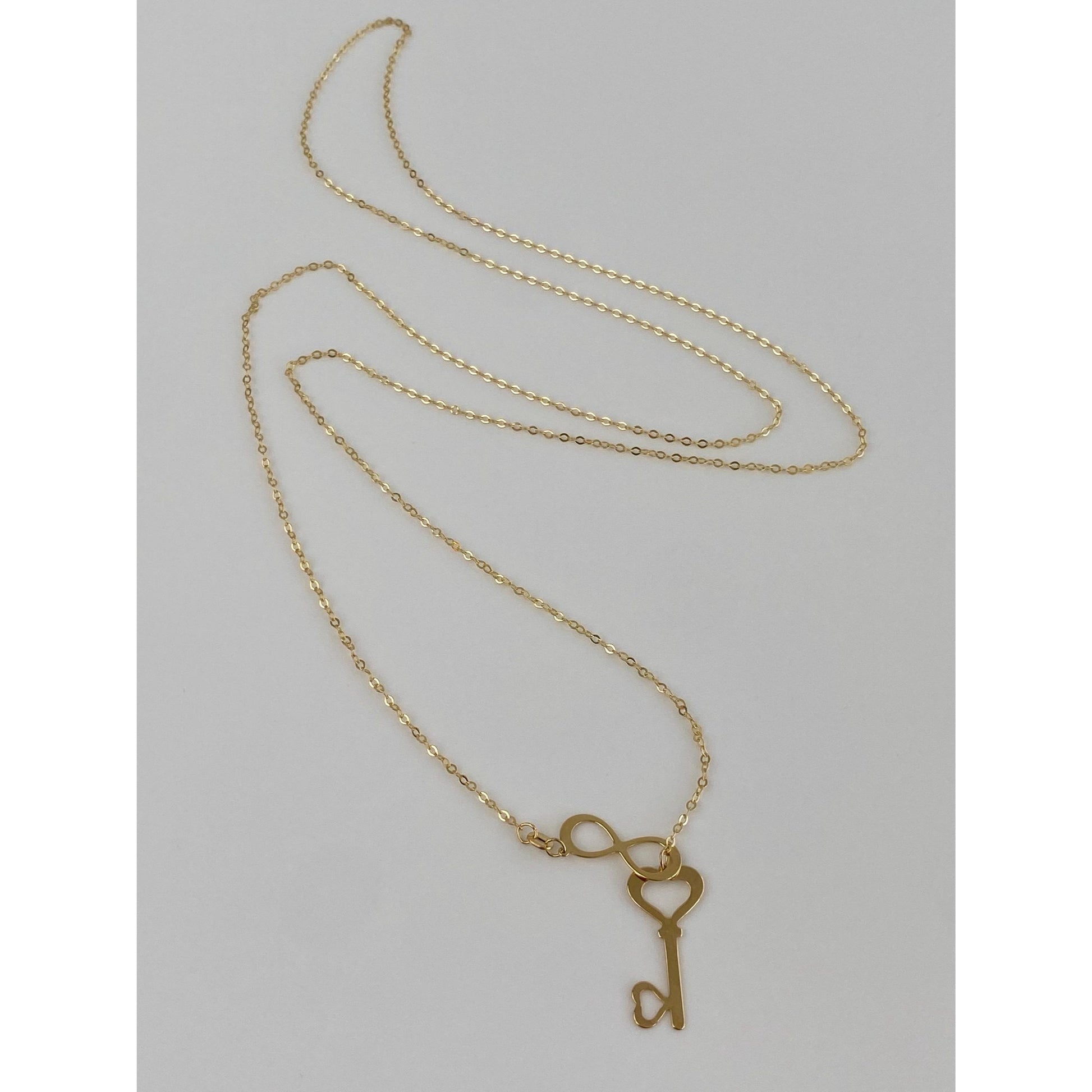 Vintage Solid 10k Yellow Gold Cable Link Key Lariat Necklace - 27.5 inches