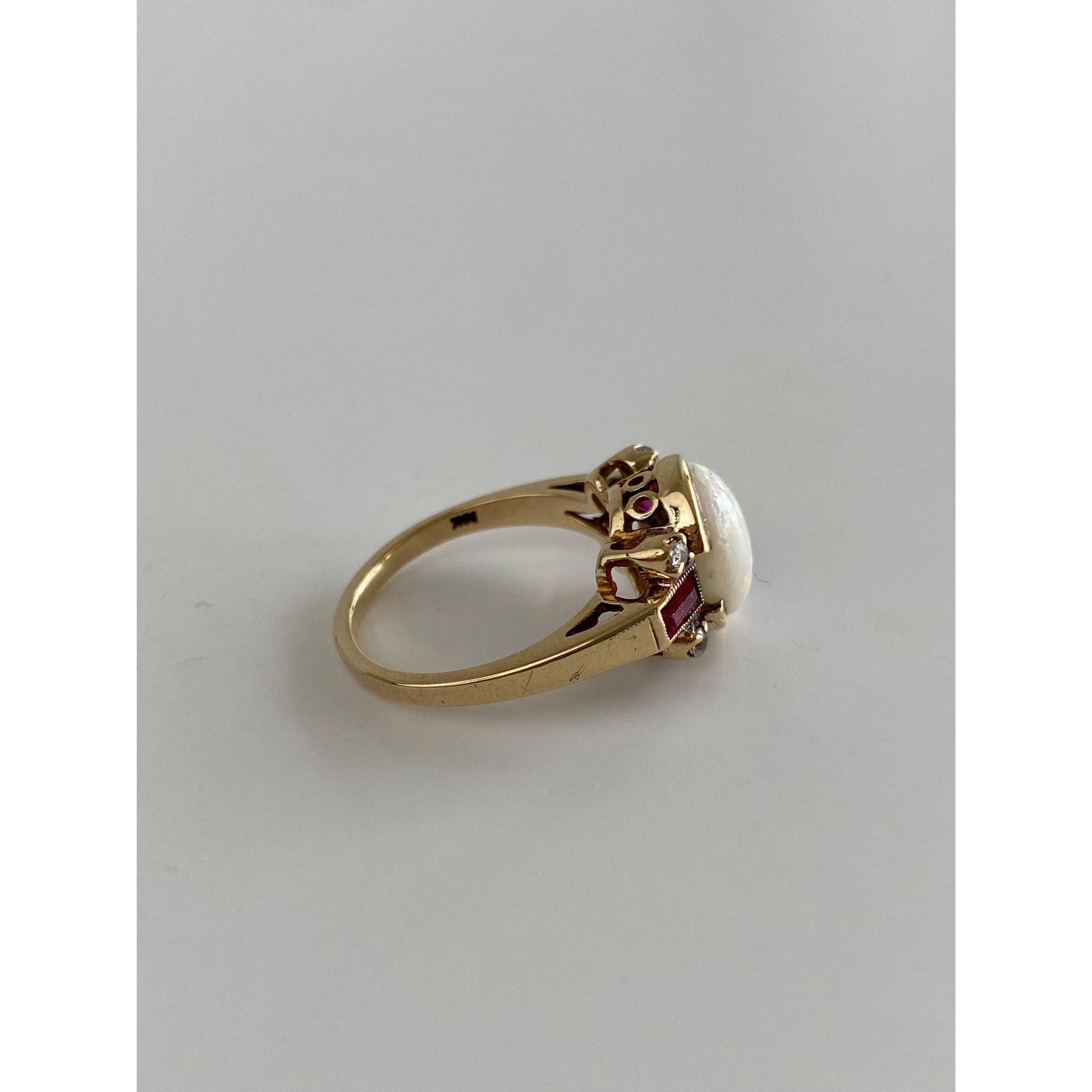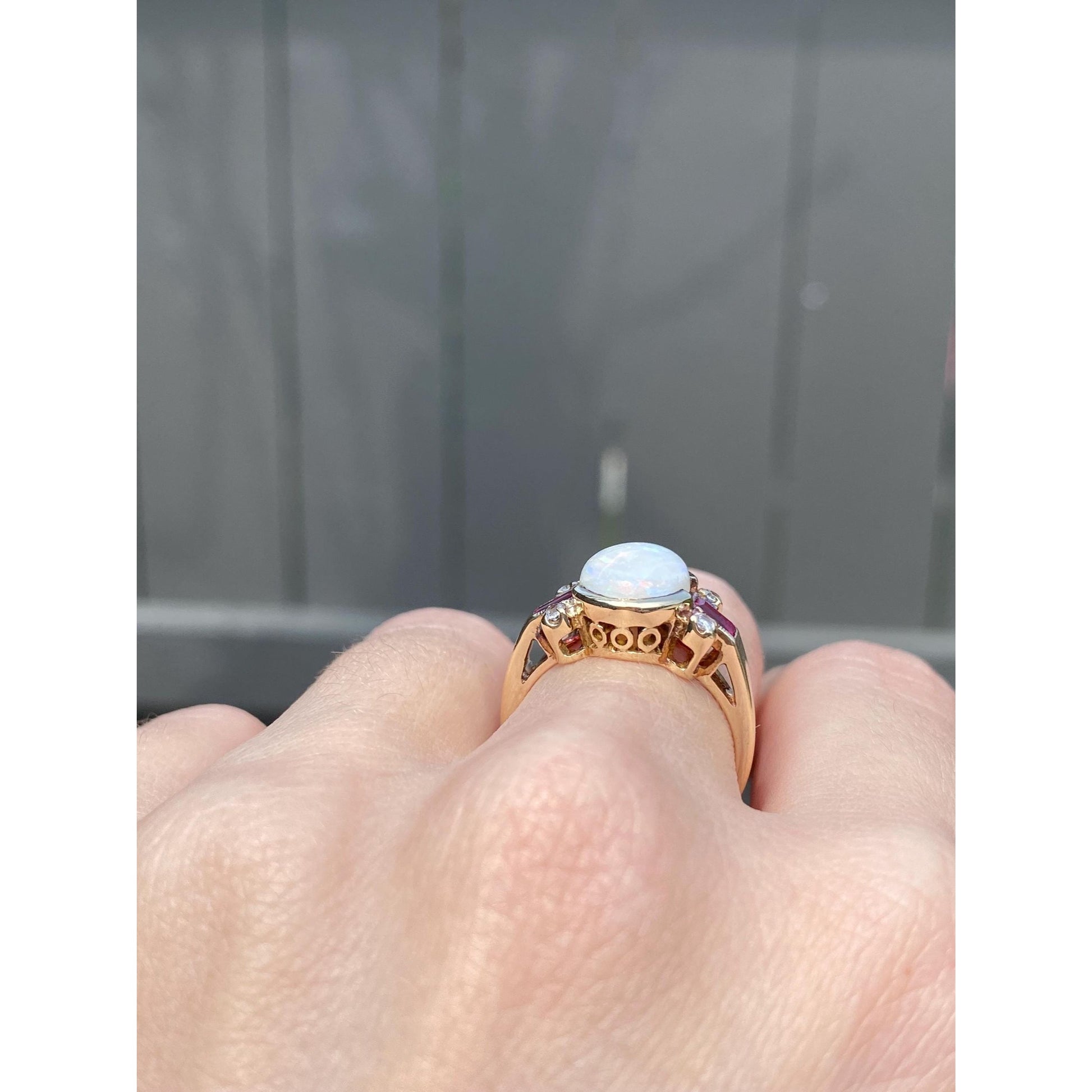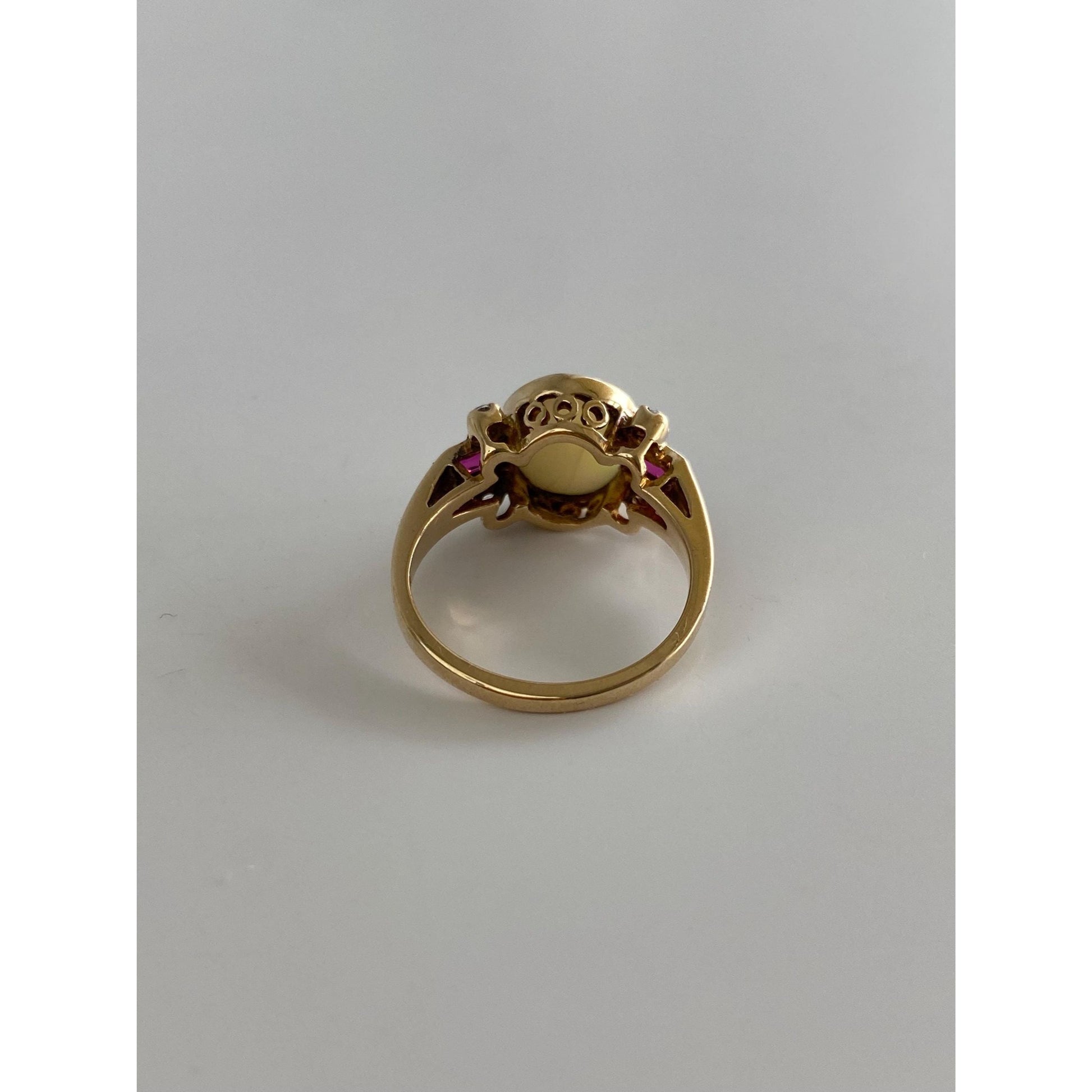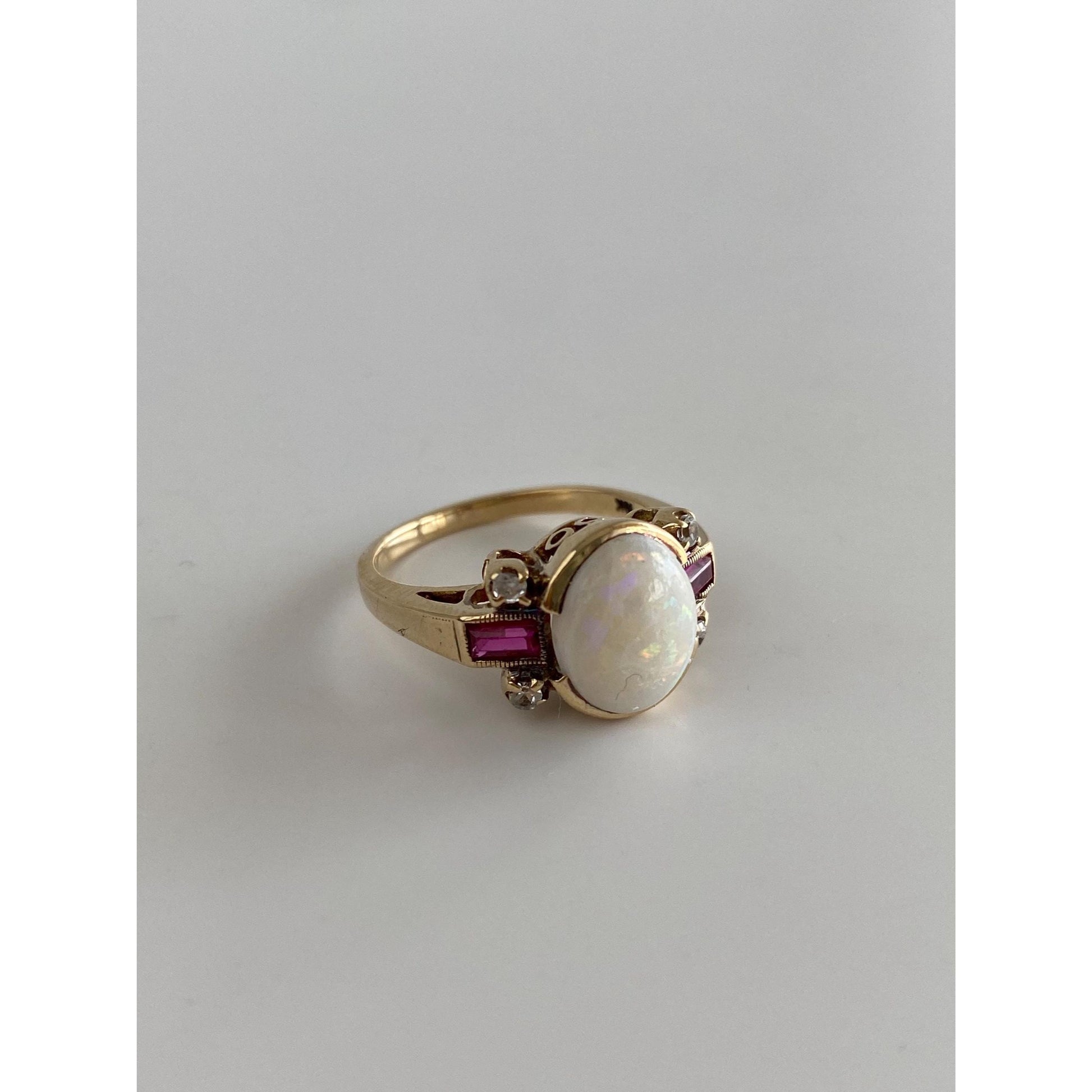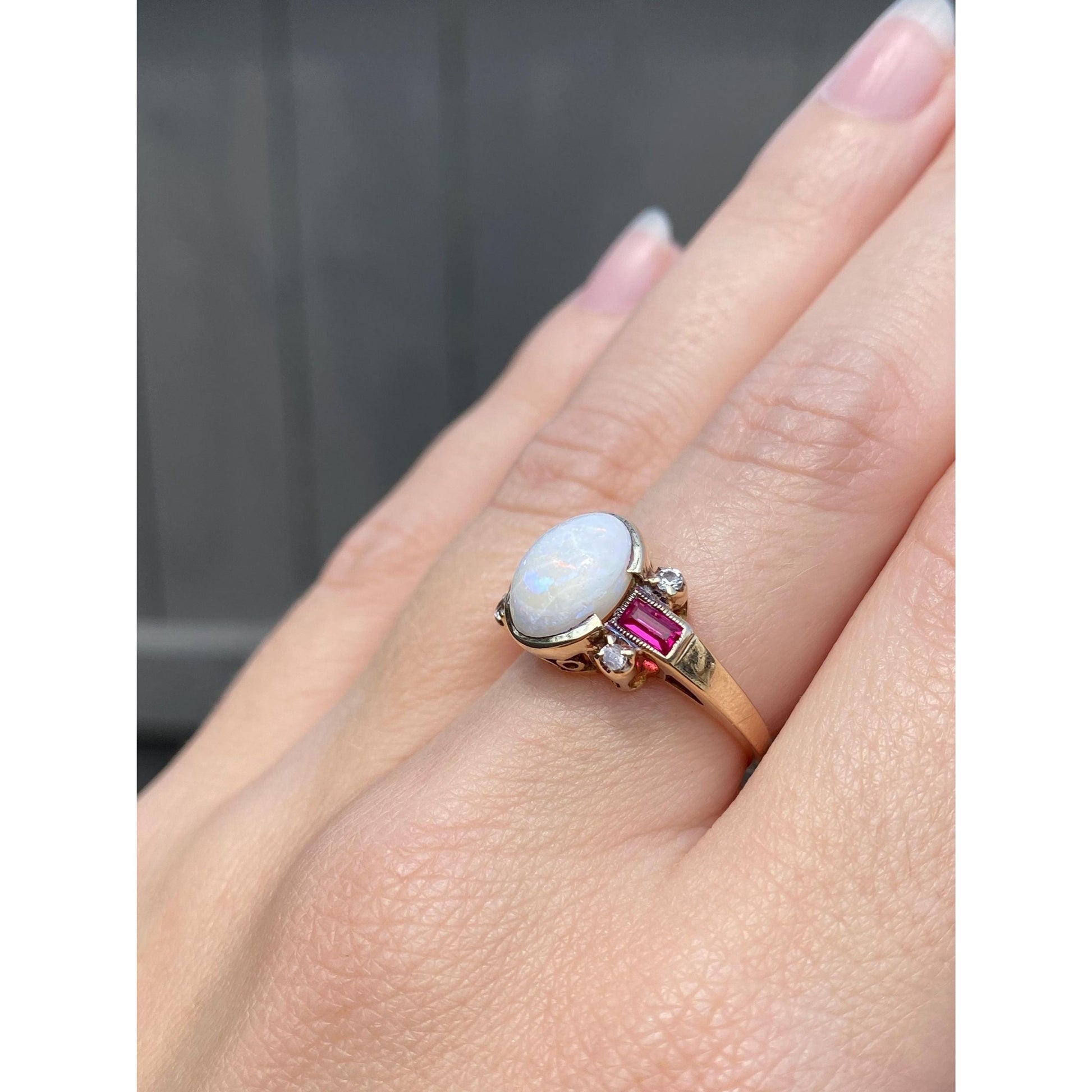 Vintage Solid 10k Yellow Gold Clear Quartz Pink Sapphire Opal Ring - Size 6