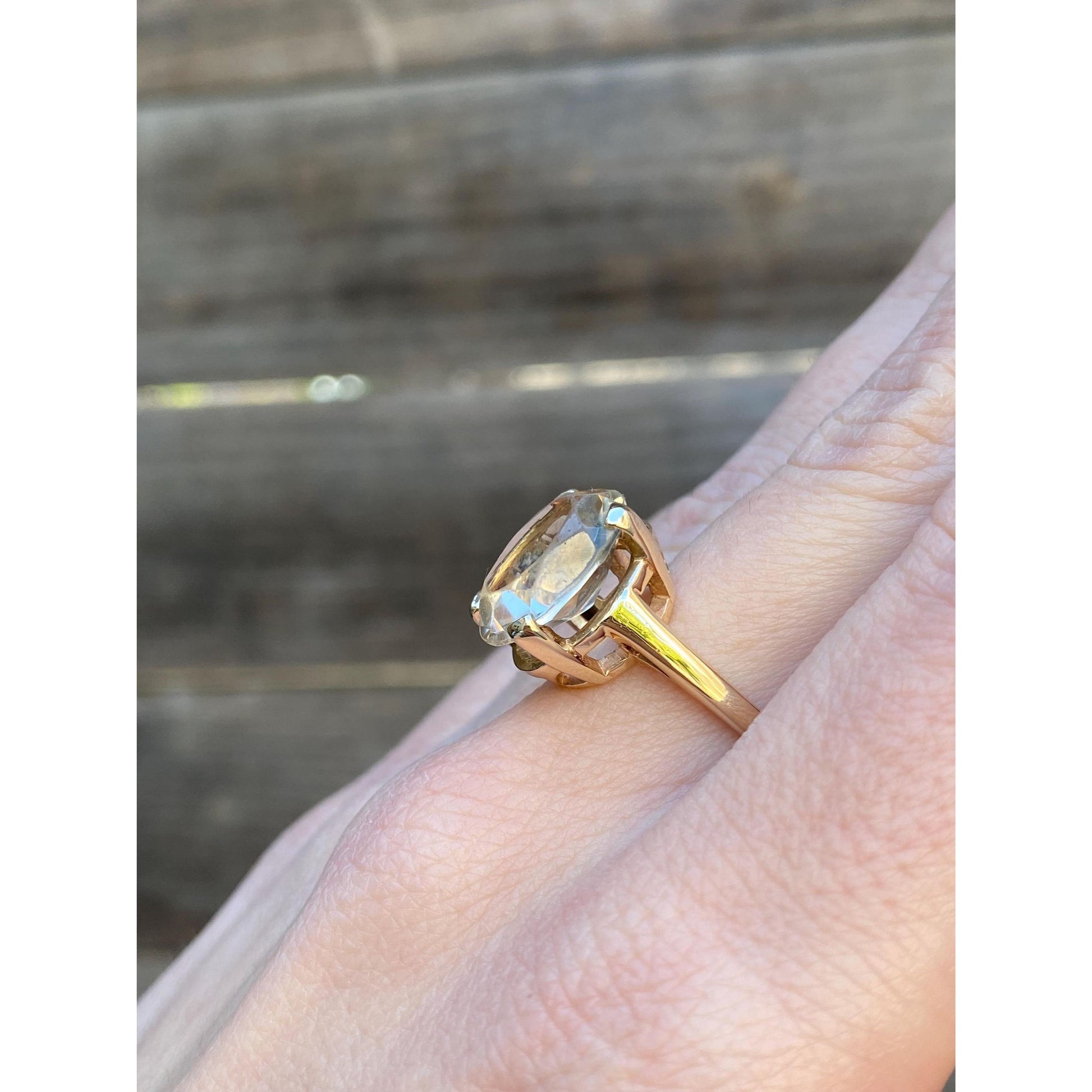 Vintage Solid 10k Yellow Gold Clear Quartz Ring - Size 7.5