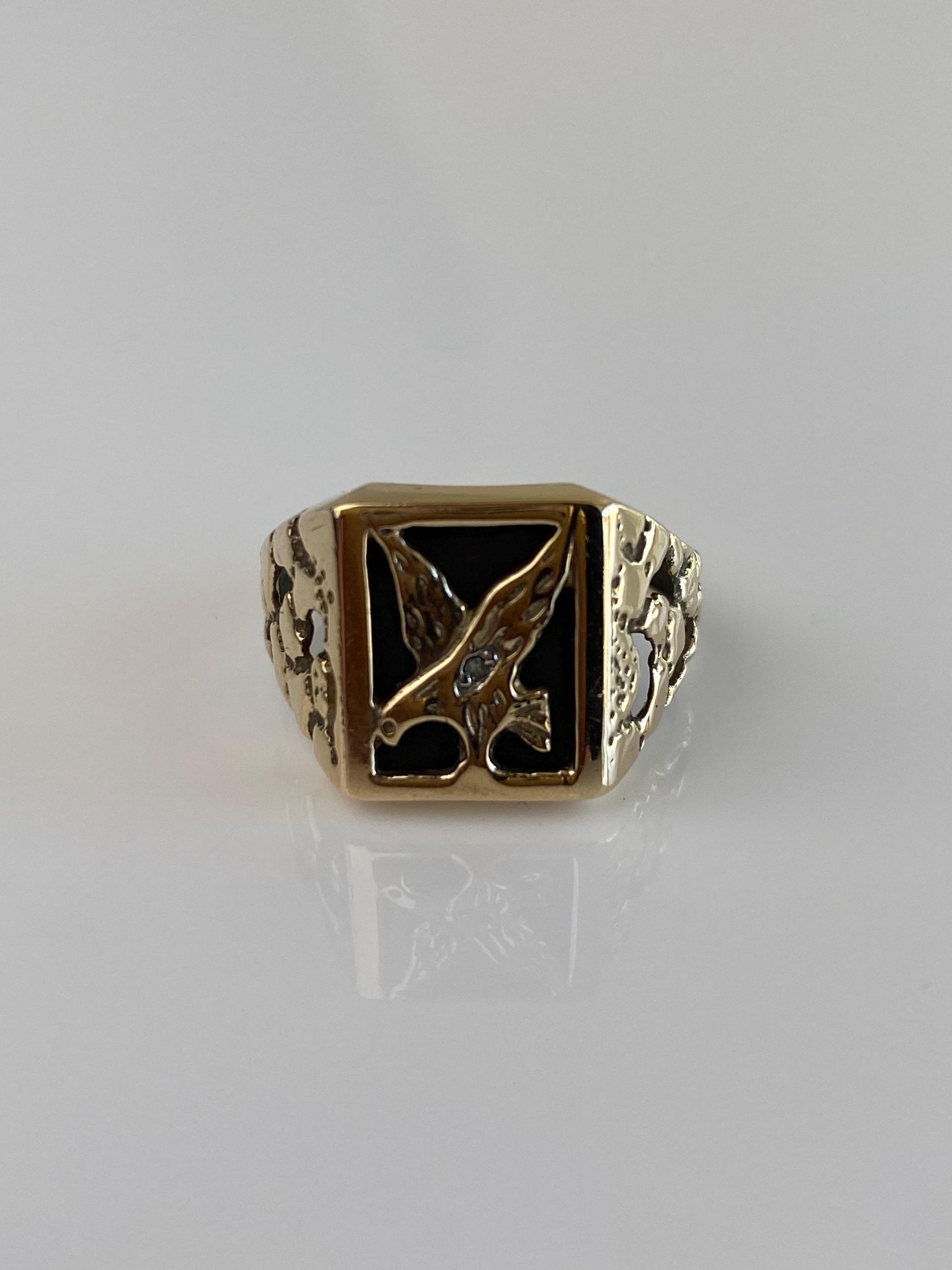 Vintage Solid 10k Yellow Gold Clear Sapphire Eagle Signet Ring - Size 10