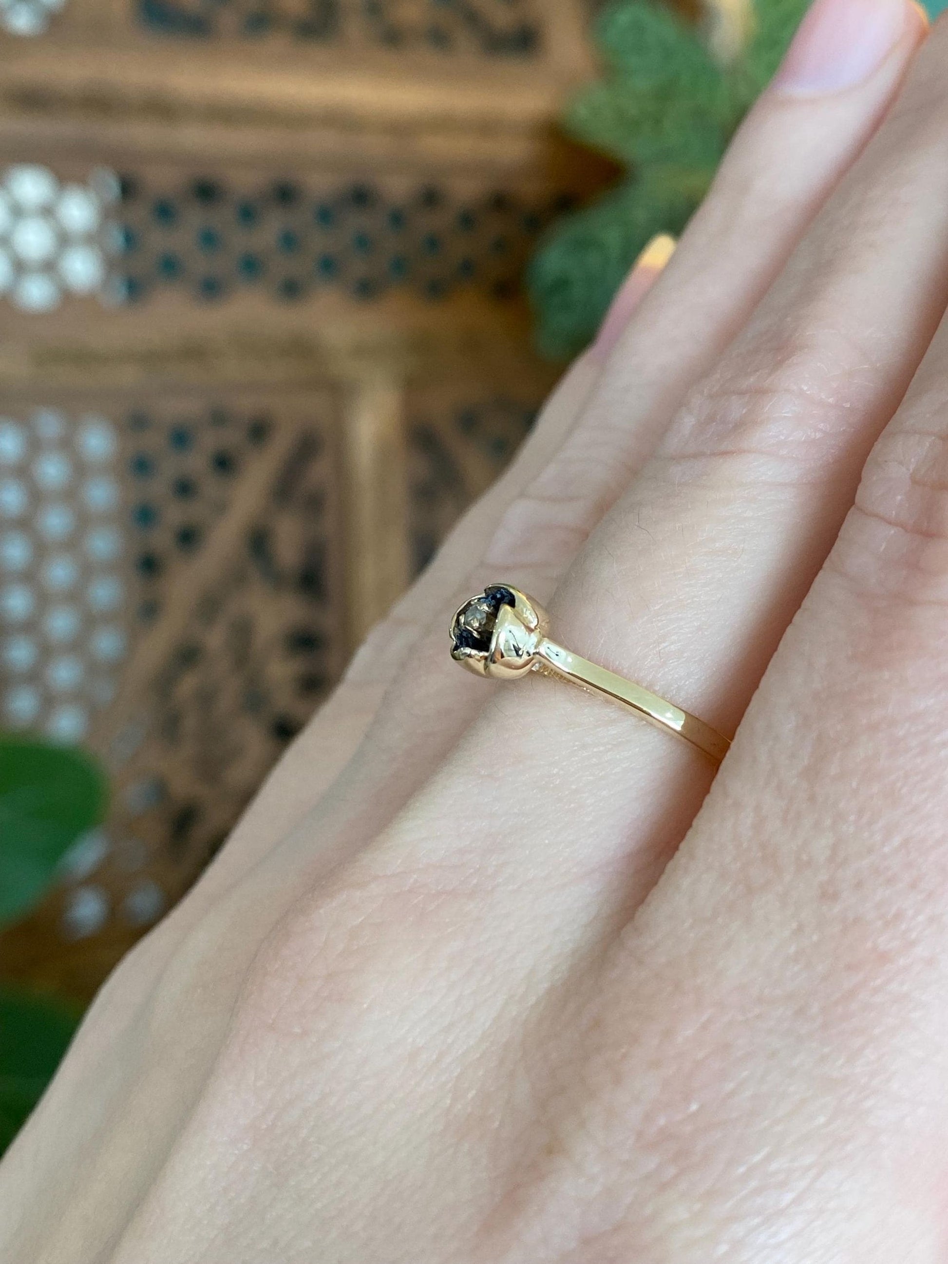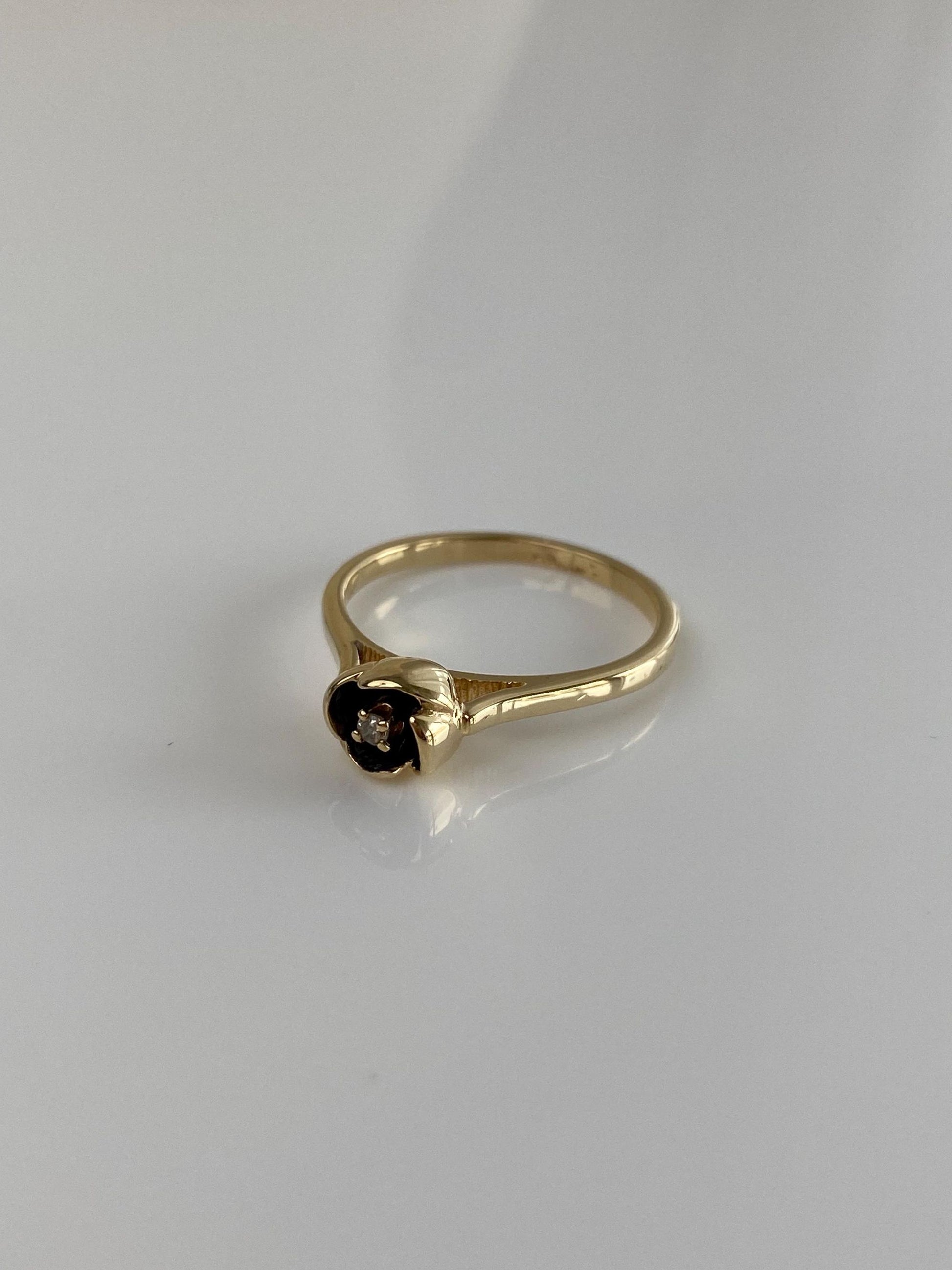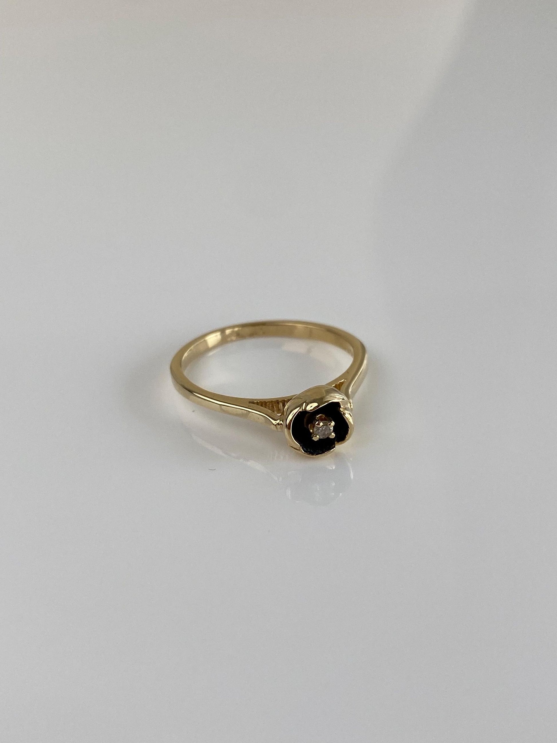 Vintage Solid 10k Yellow Gold Clear Sapphire Flower Ring - Size 5.75