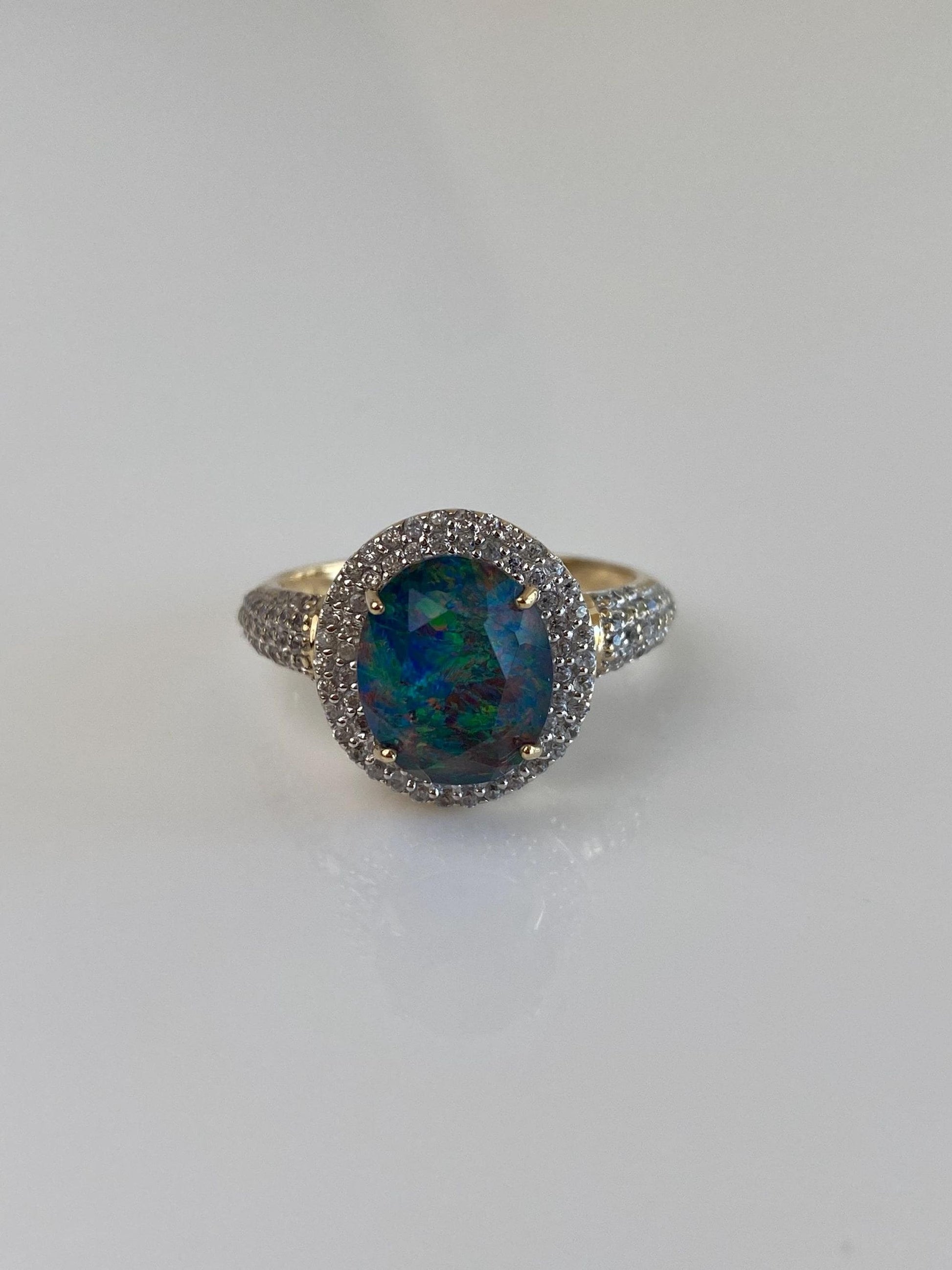 Vintage Solid 10k Yellow Gold Clear Topaz Opal Triplet Ring - Size 9.75
