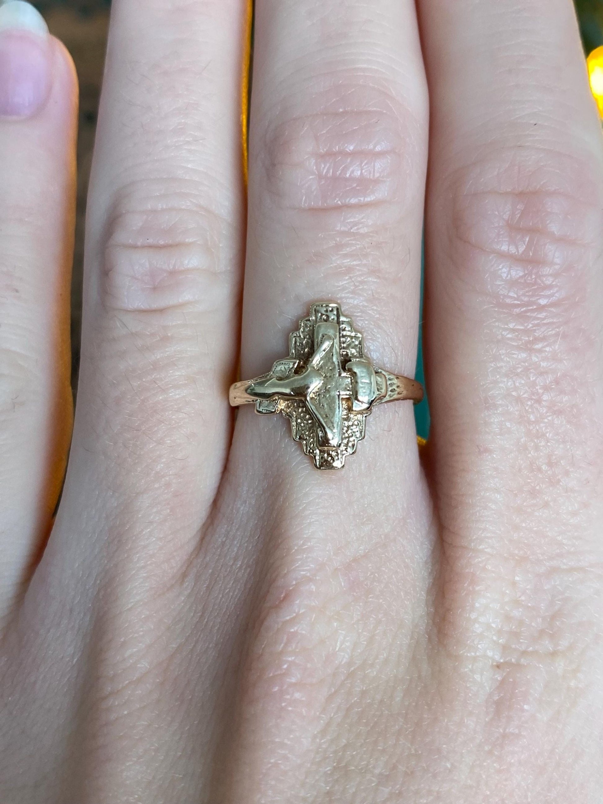 Vintage Solid 10k Yellow Gold Crucifix Cross Ring - Size 6.25