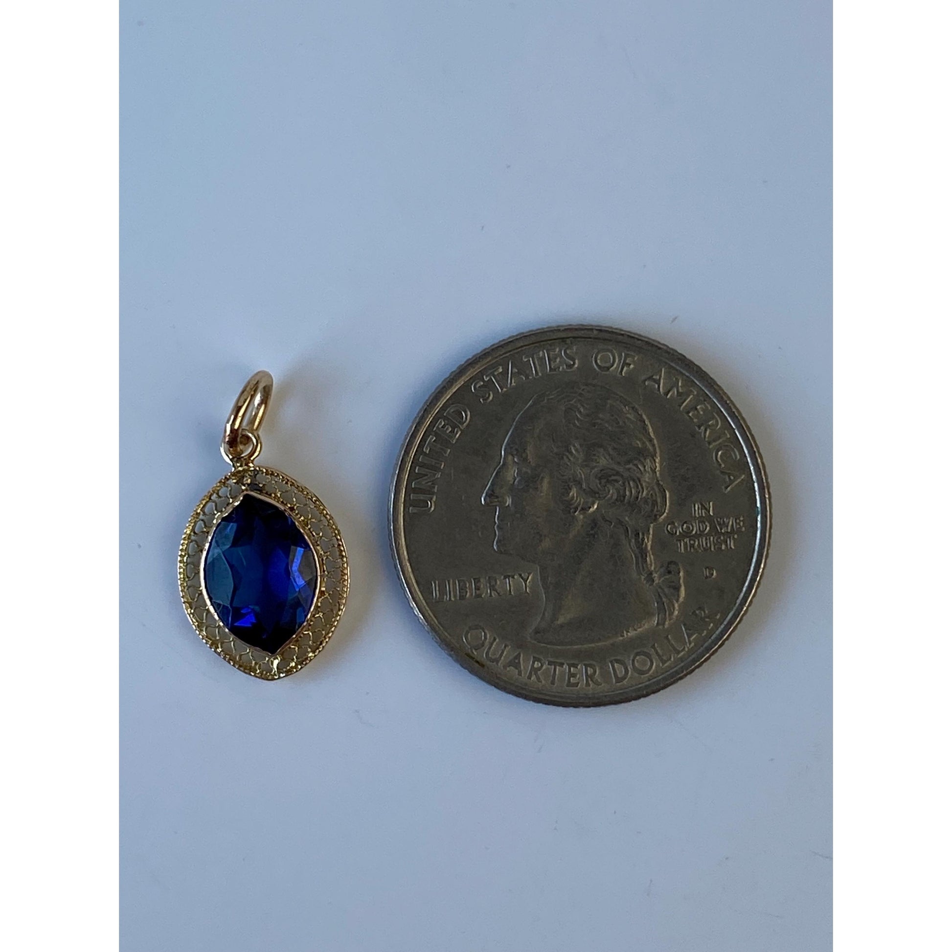 Vintage Solid 10k Yellow Gold Dark Blue Cubic Zirconia Stick Pin Conversion Charm