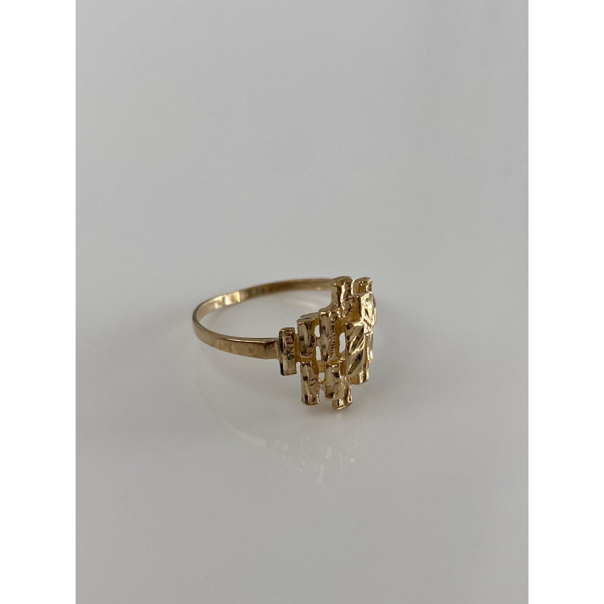 Vintage Solid 10k Yellow Gold Diamond Cut Cubist Ring - Size 7