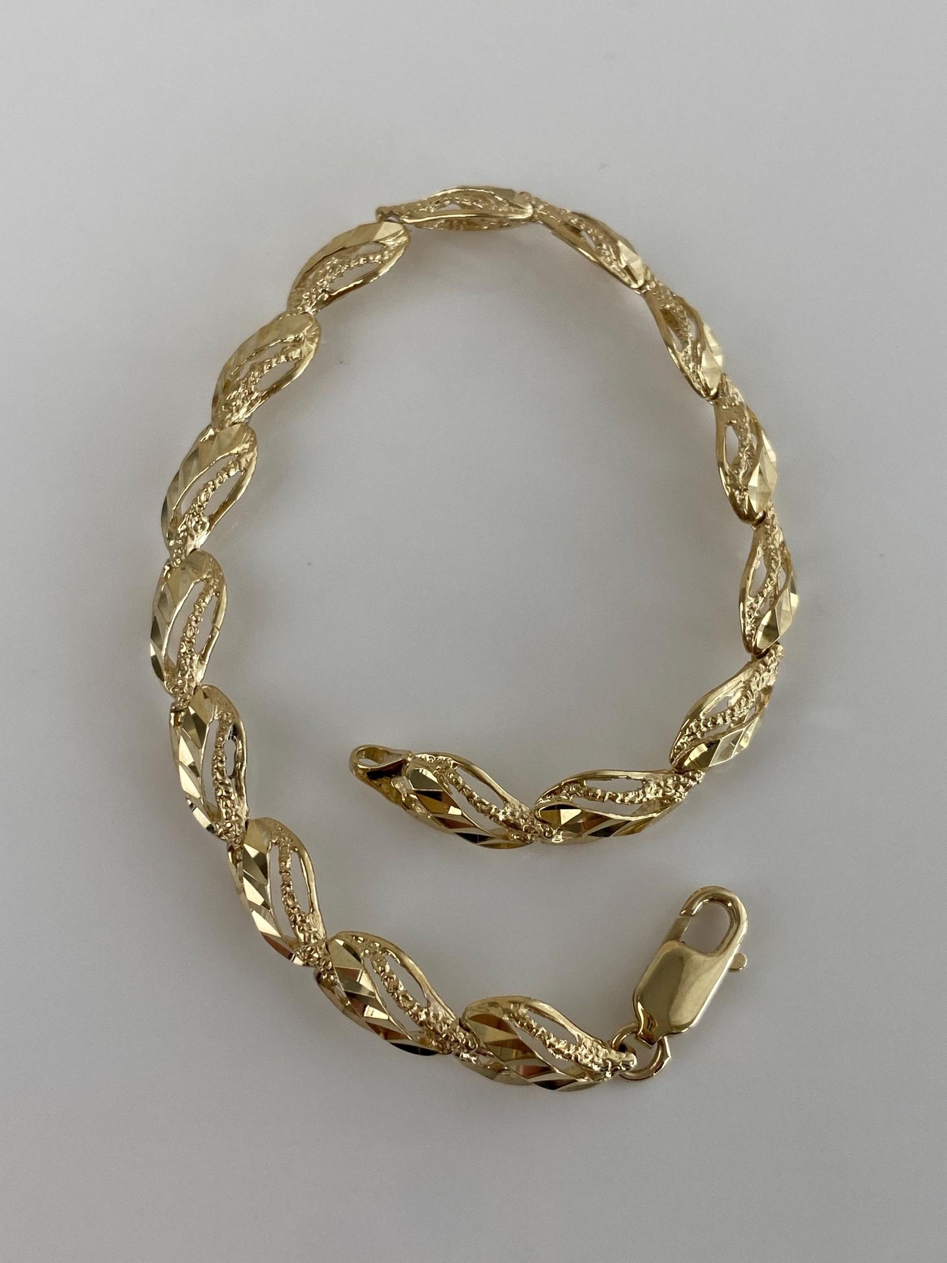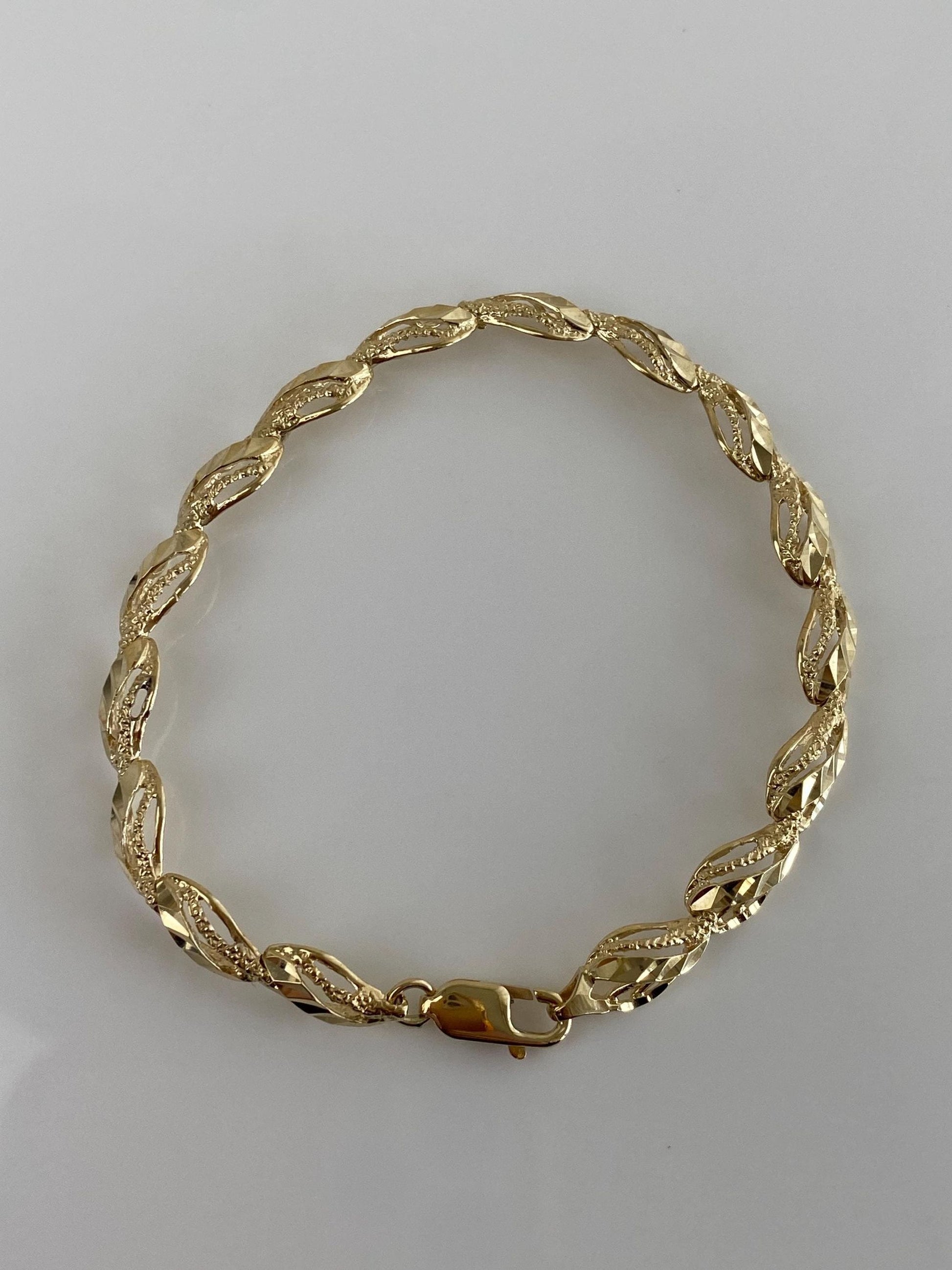 Vintage Solid 10k Yellow Gold Diamond Cut Link Bracelet - 6.75 inches