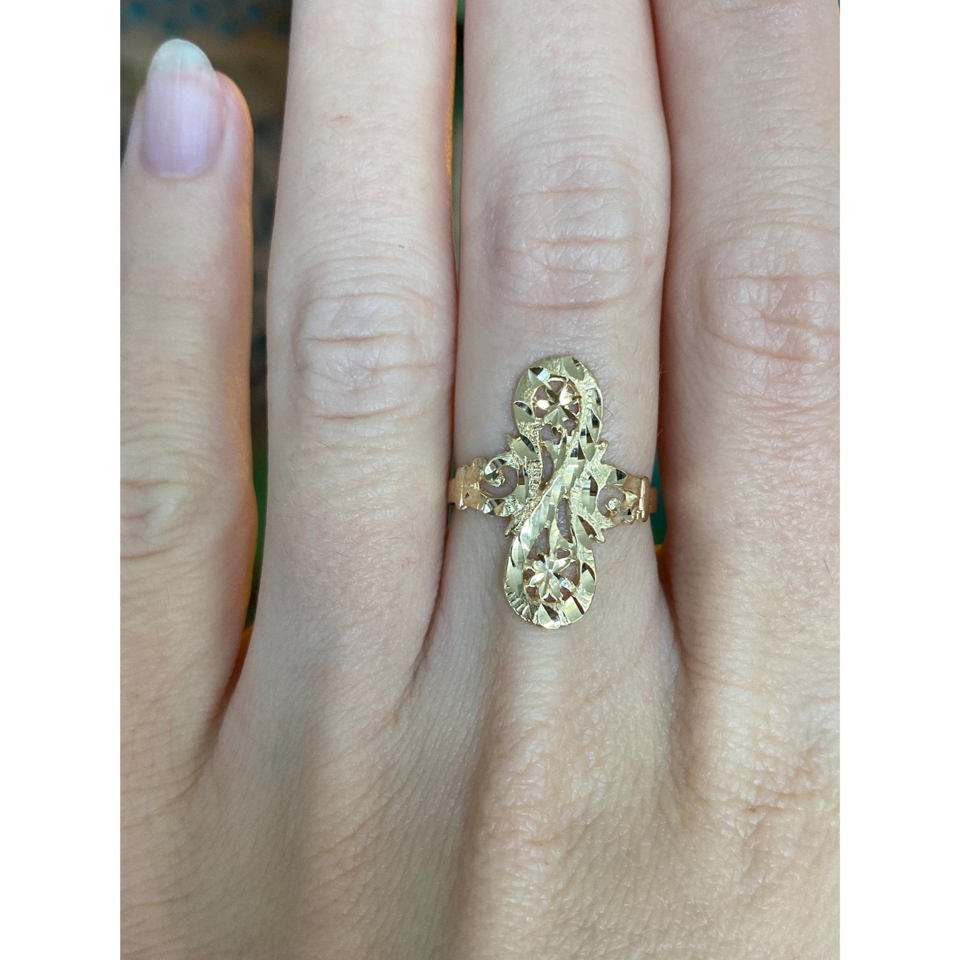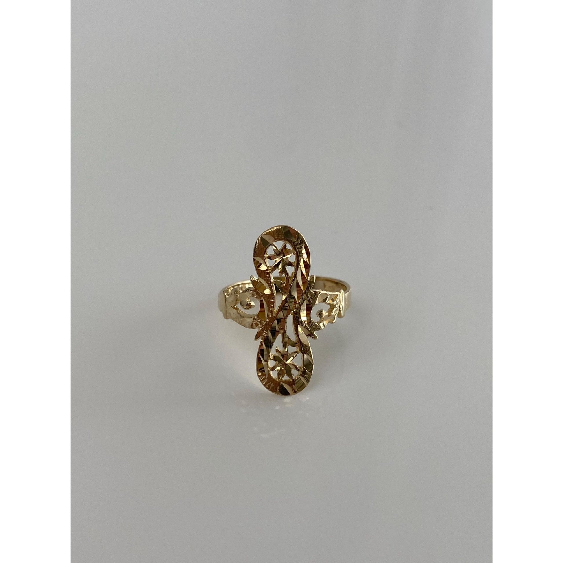 Vintage Solid 10k Yellow Gold Diamond Cut Ring - Size 6