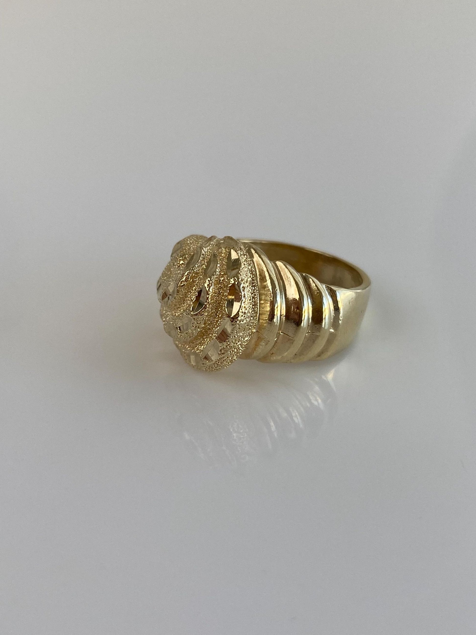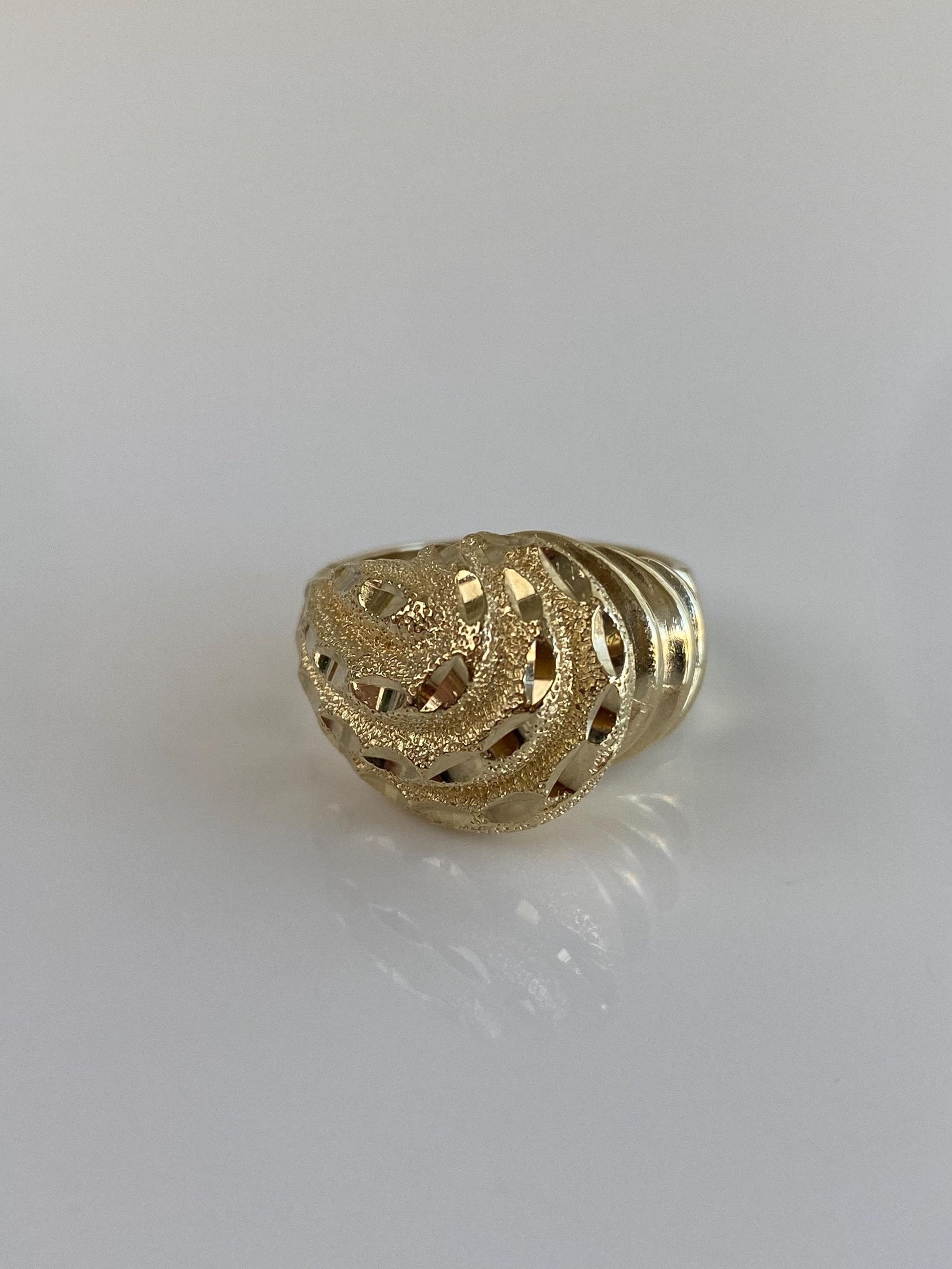 Vintage Solid 10k Yellow Gold Diamond Cut Shell Scalloped Ring Band - Size 7