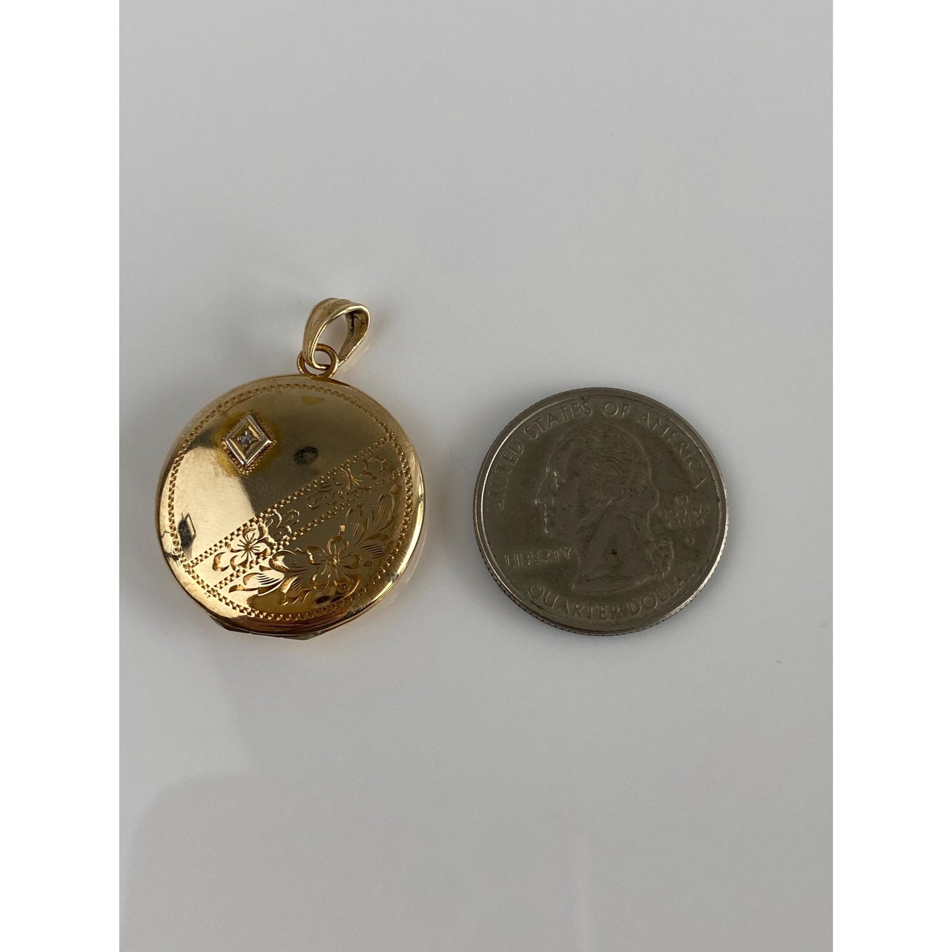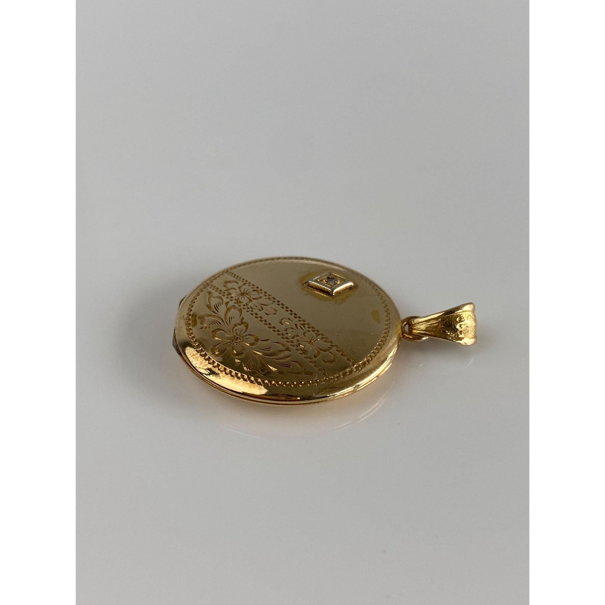 Vintage Solid 10k Yellow Gold Diamond Engraved Locket Charm