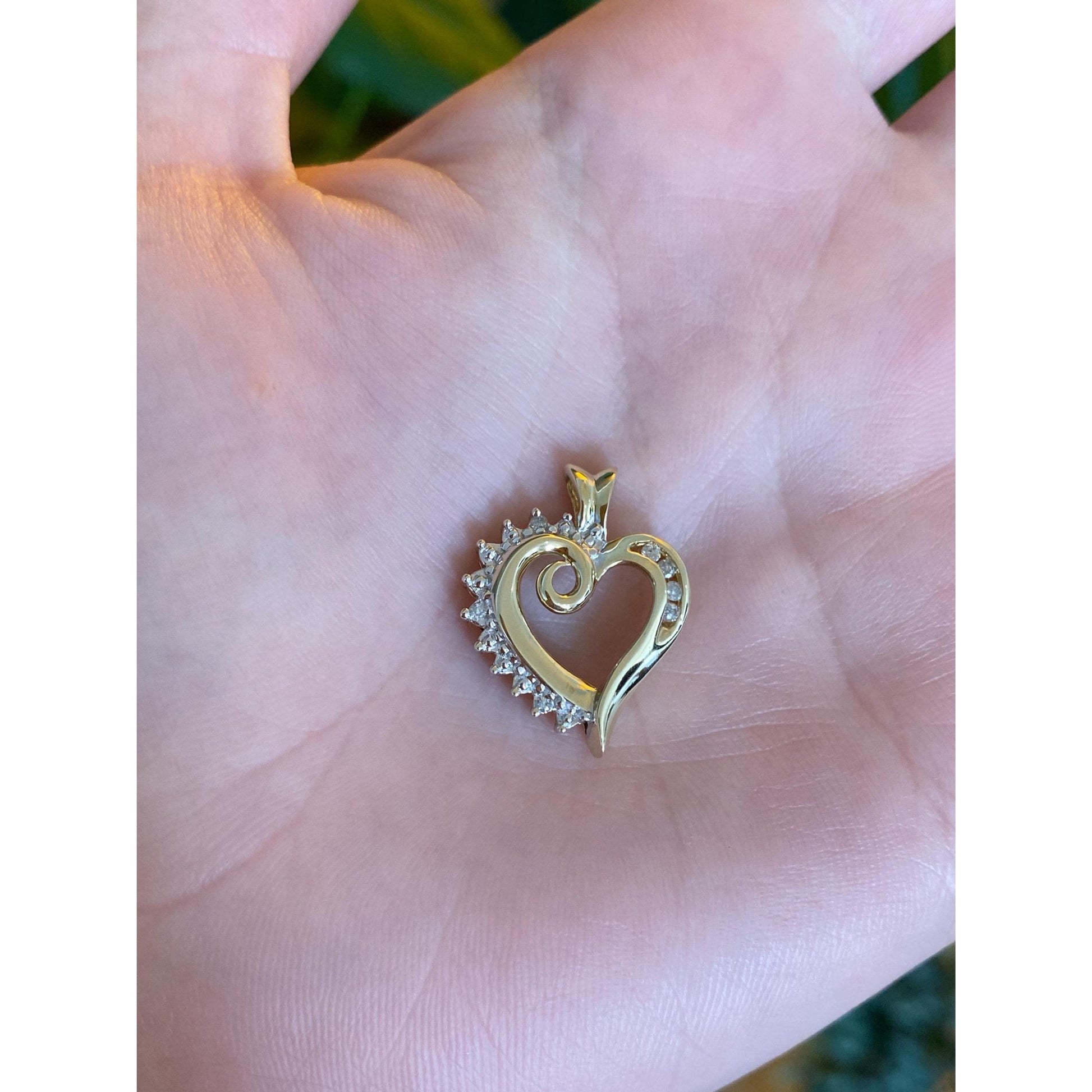 Vintage Solid 10k Yellow Gold Diamond Heart Charm