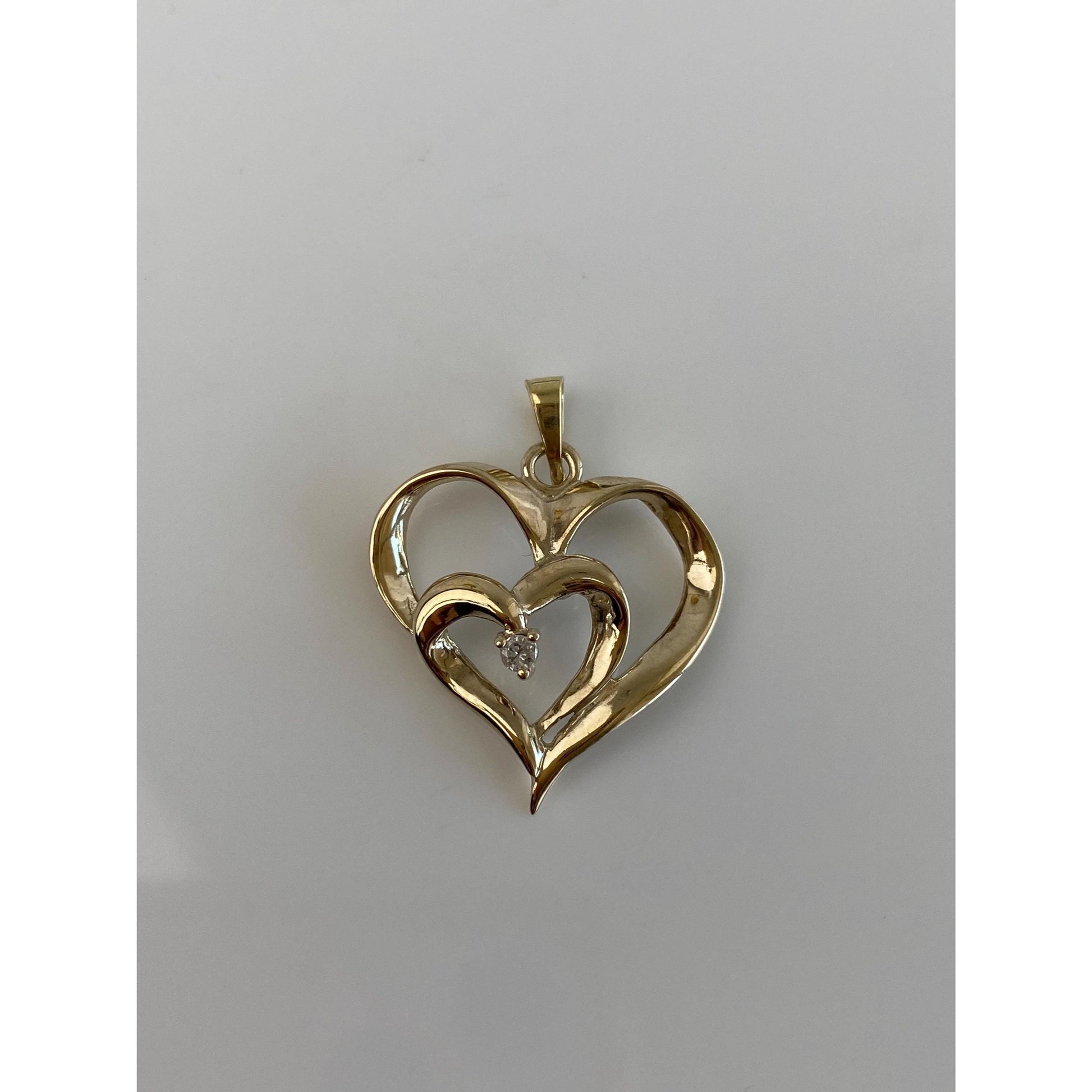 Vintage Solid 10k Yellow Gold Diamond Hearts Charm