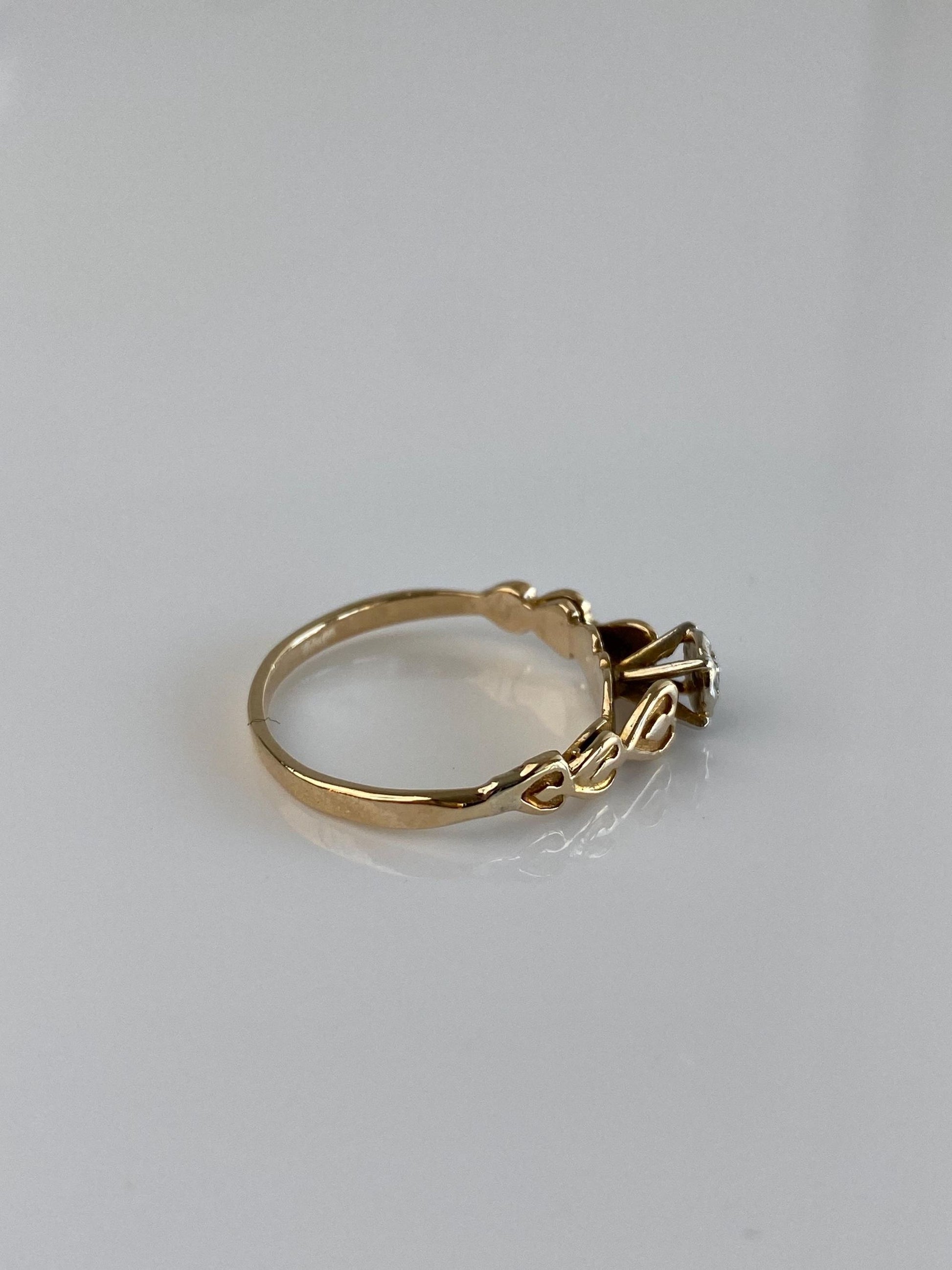 Vintage Solid 10k Yellow Gold Diamond Hearts Ring - Size 5.75