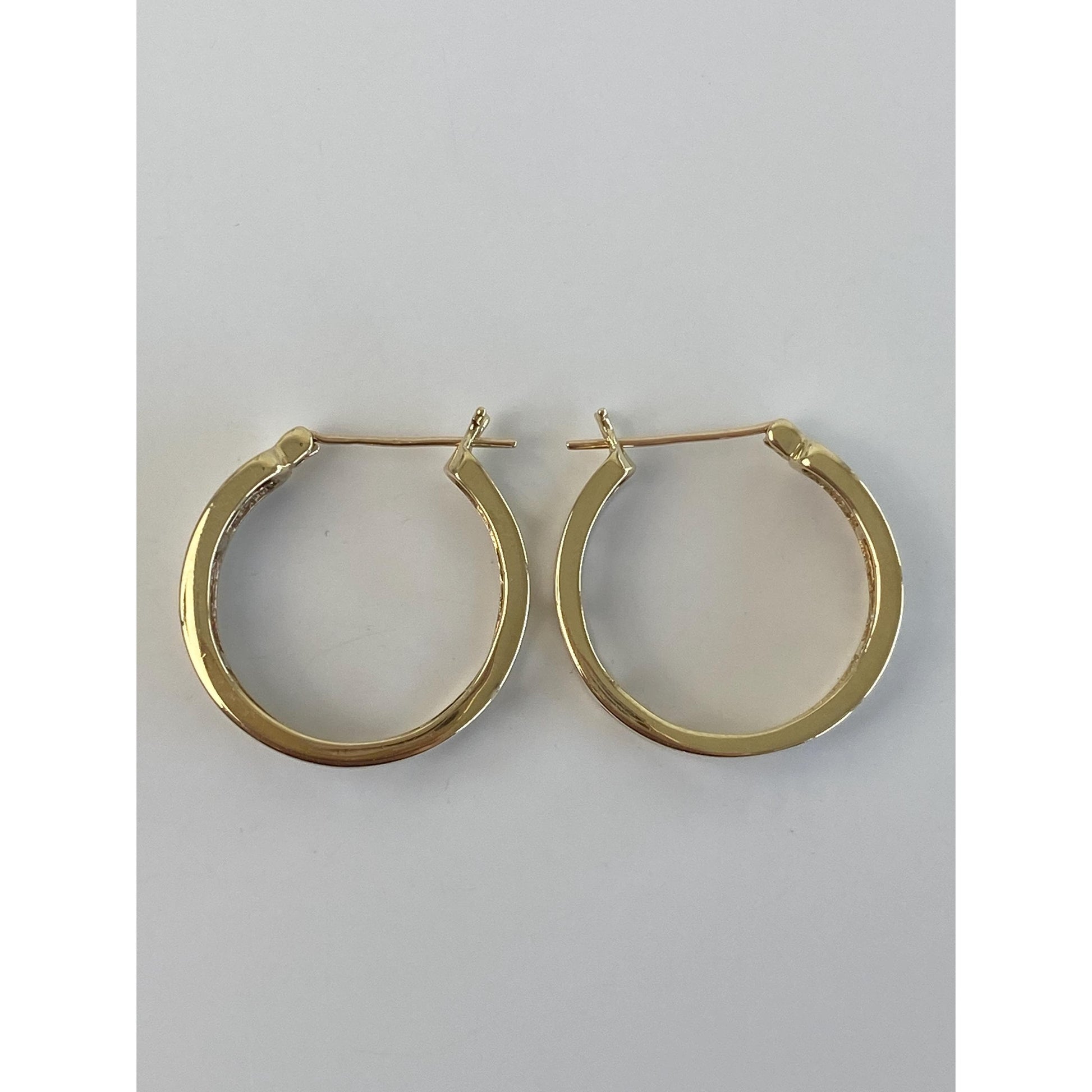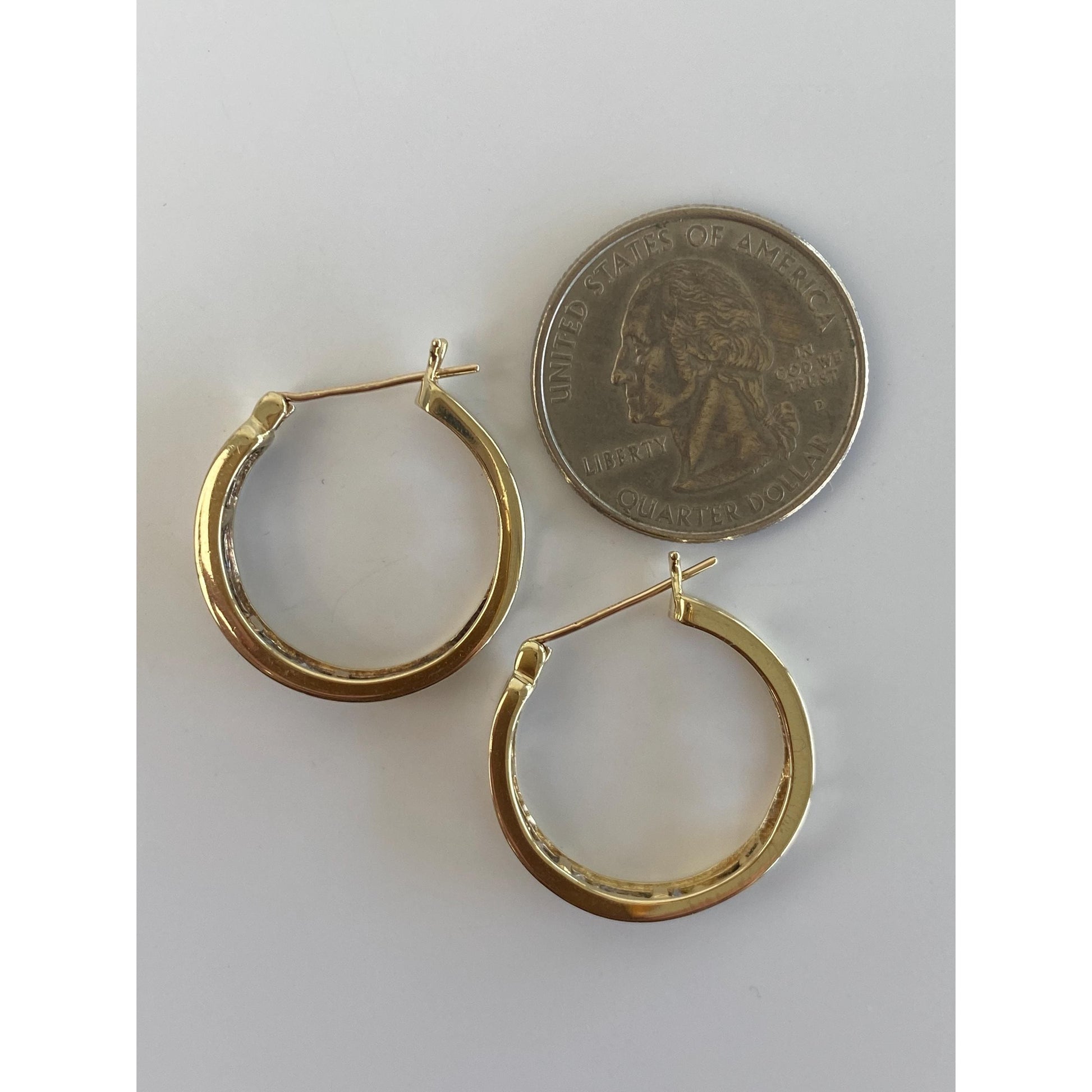 Vintage Solid 10k Yellow Gold Diamond Hoop Earrings