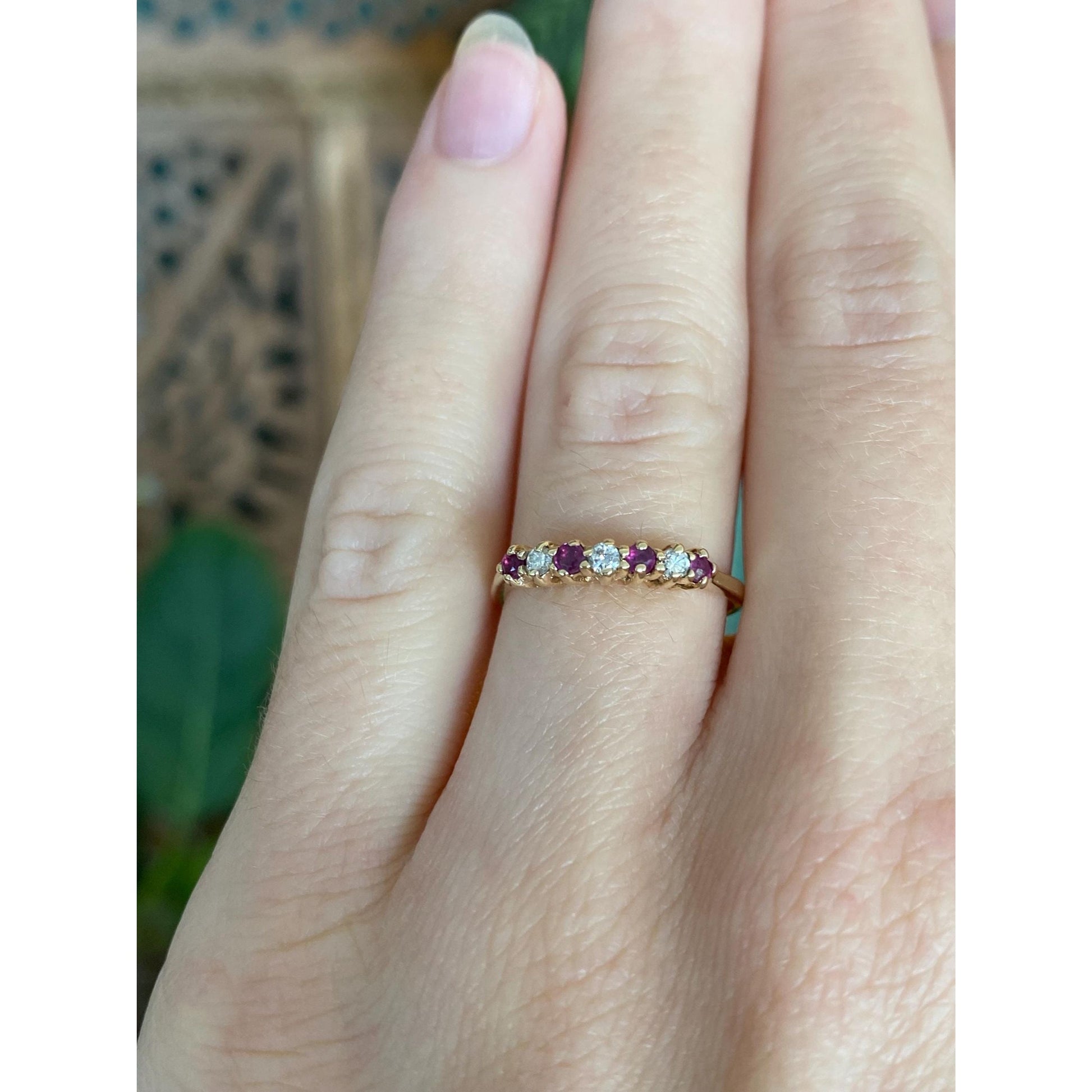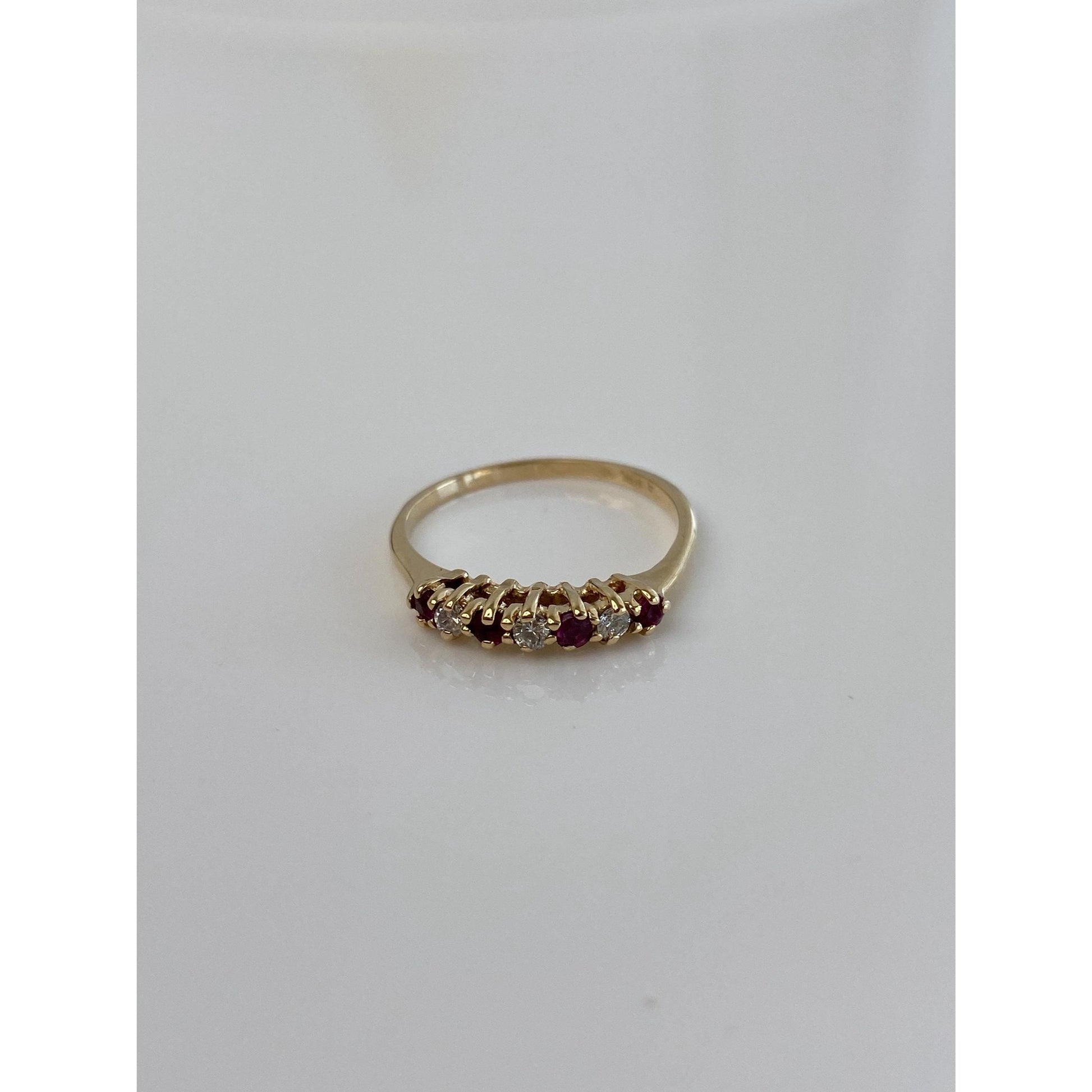 Vintage Solid 10k Yellow Gold Diamond Ruby Ring - Size 5.25
