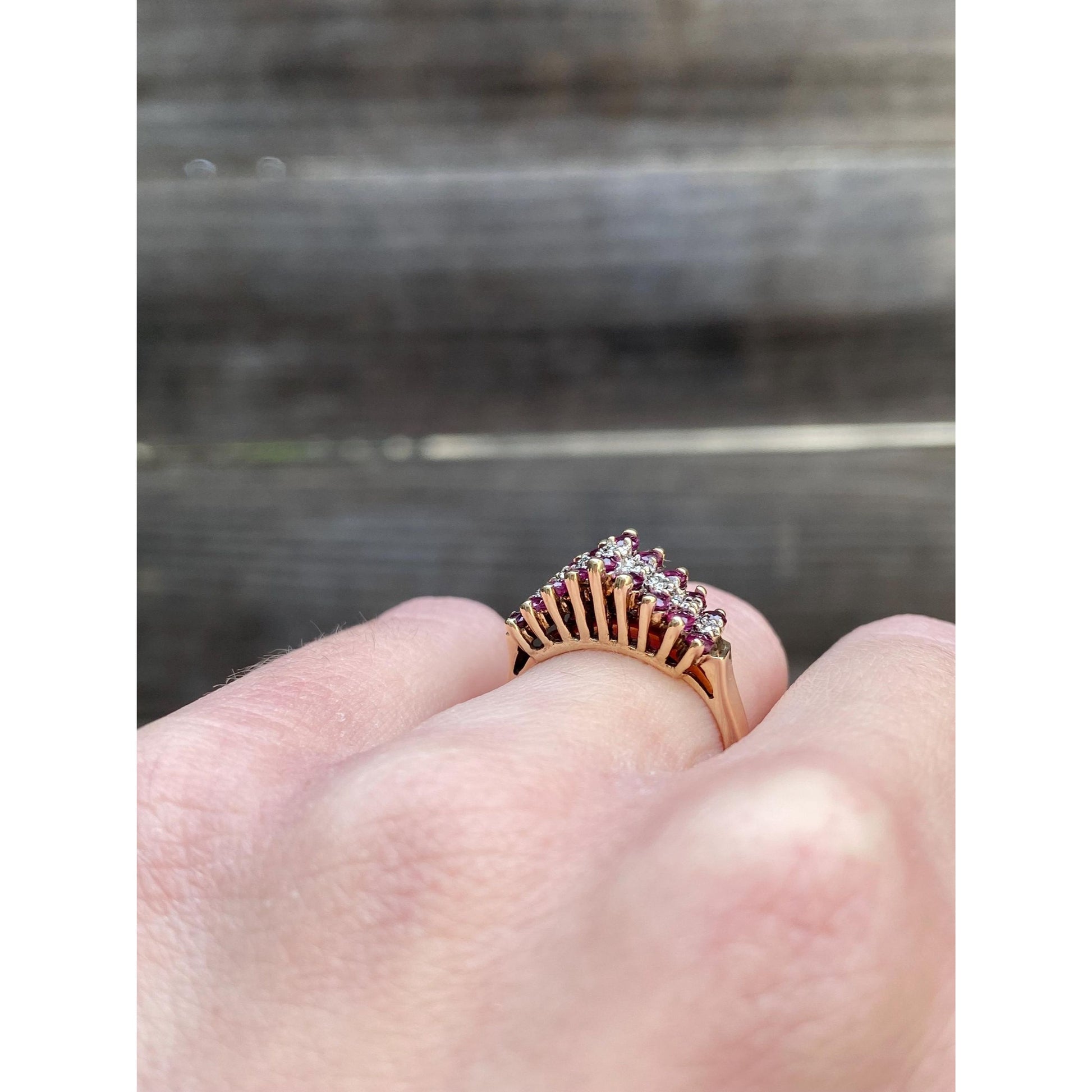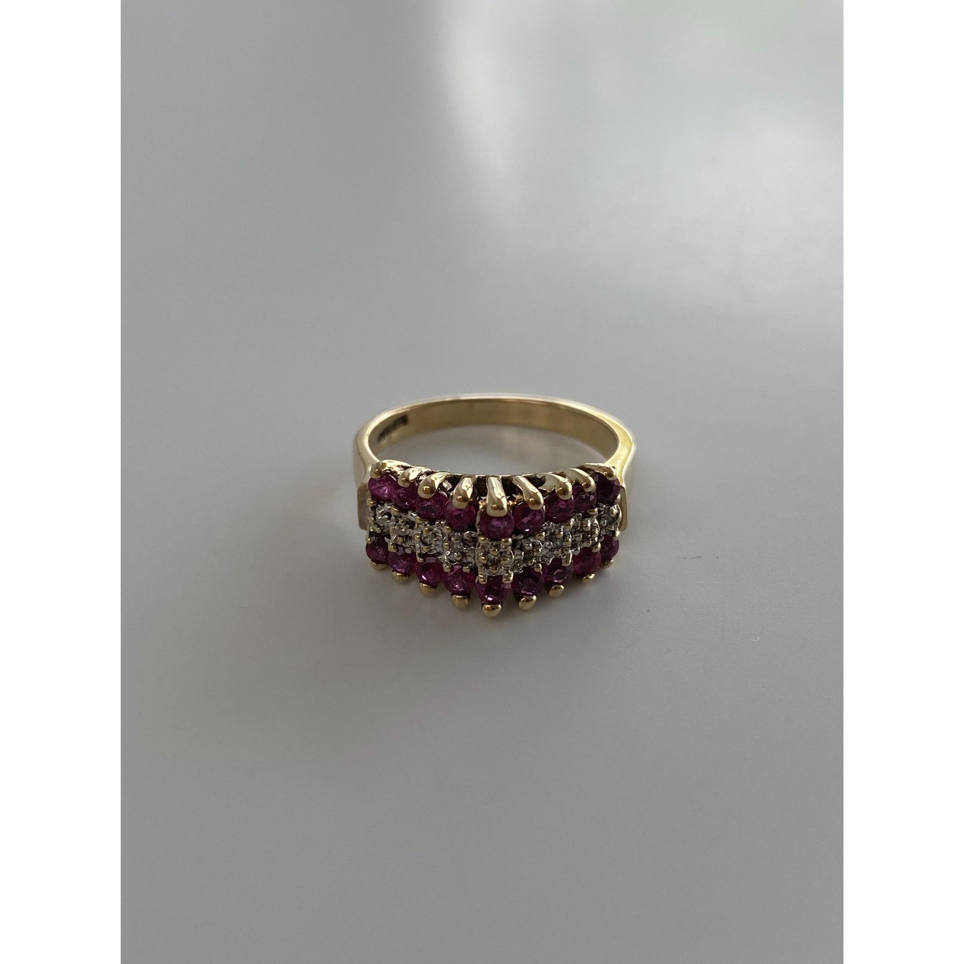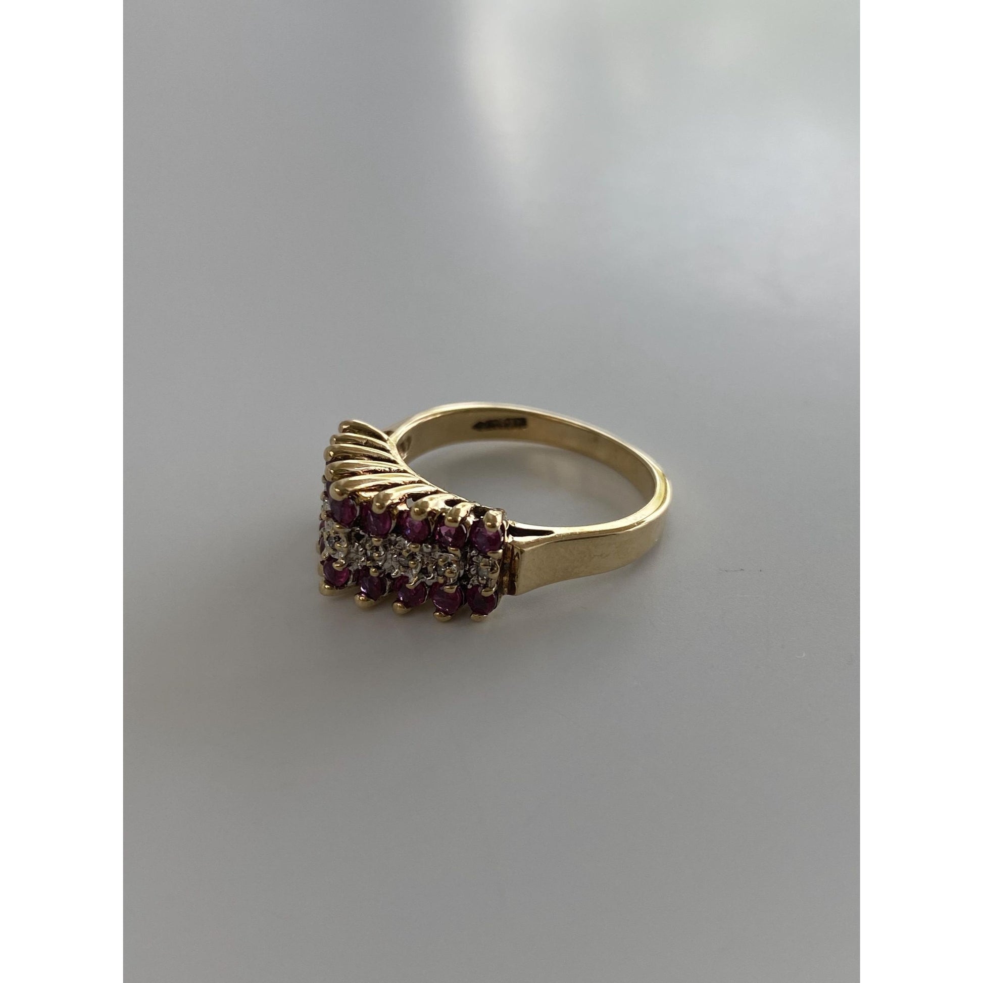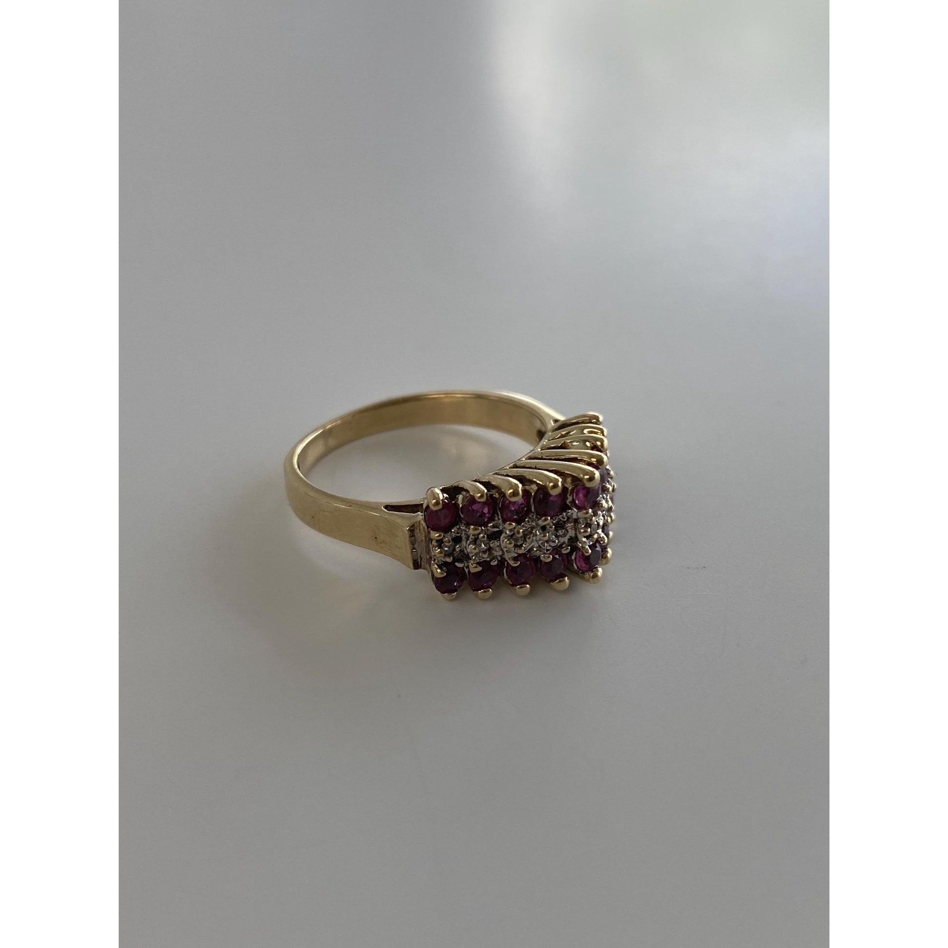 Vintage Solid 10k Yellow Gold Diamond Ruby Ring - Size 5.75