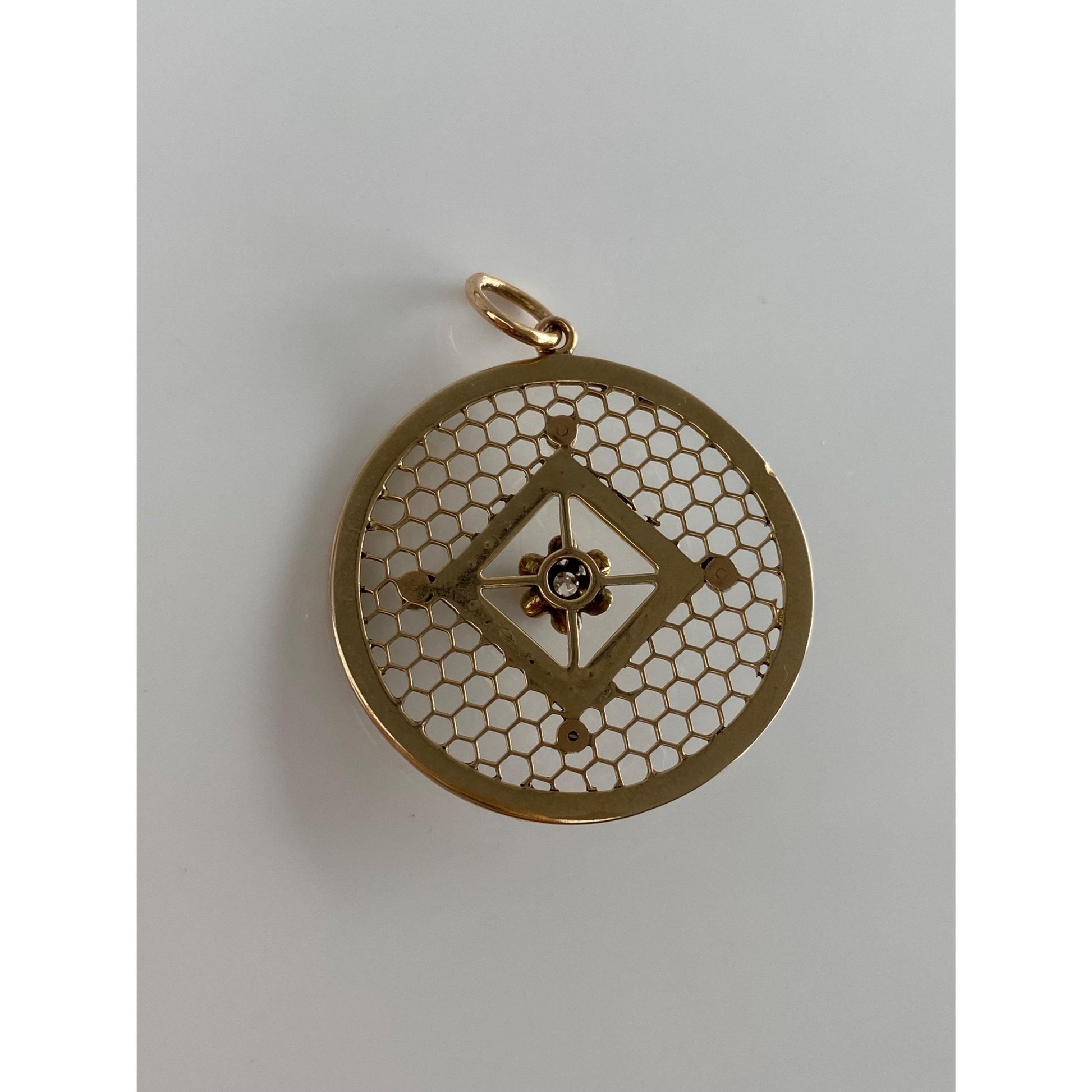 Vintage Solid 10k Yellow Gold Diamond Seed Pearl Halo Honeycomb Open Work Charm