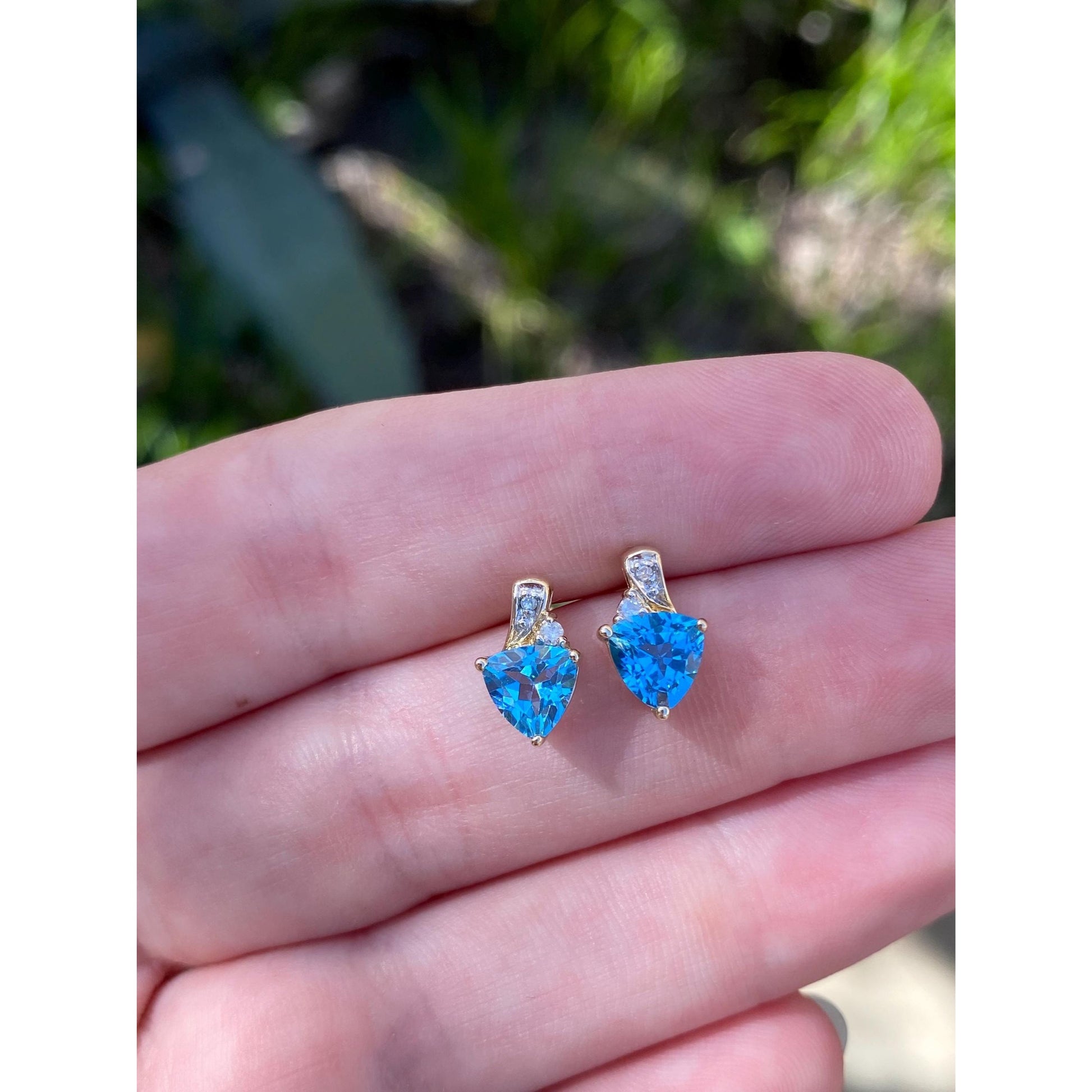 Vintage Solid 10k Yellow Gold Diamond Topaz Stud Earrings