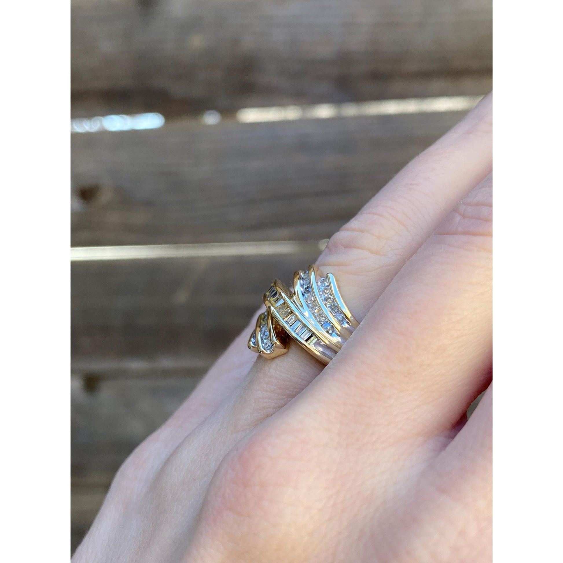 Vintage Solid 10k Yellow Gold Diamond Twist Ring - Size 3.75