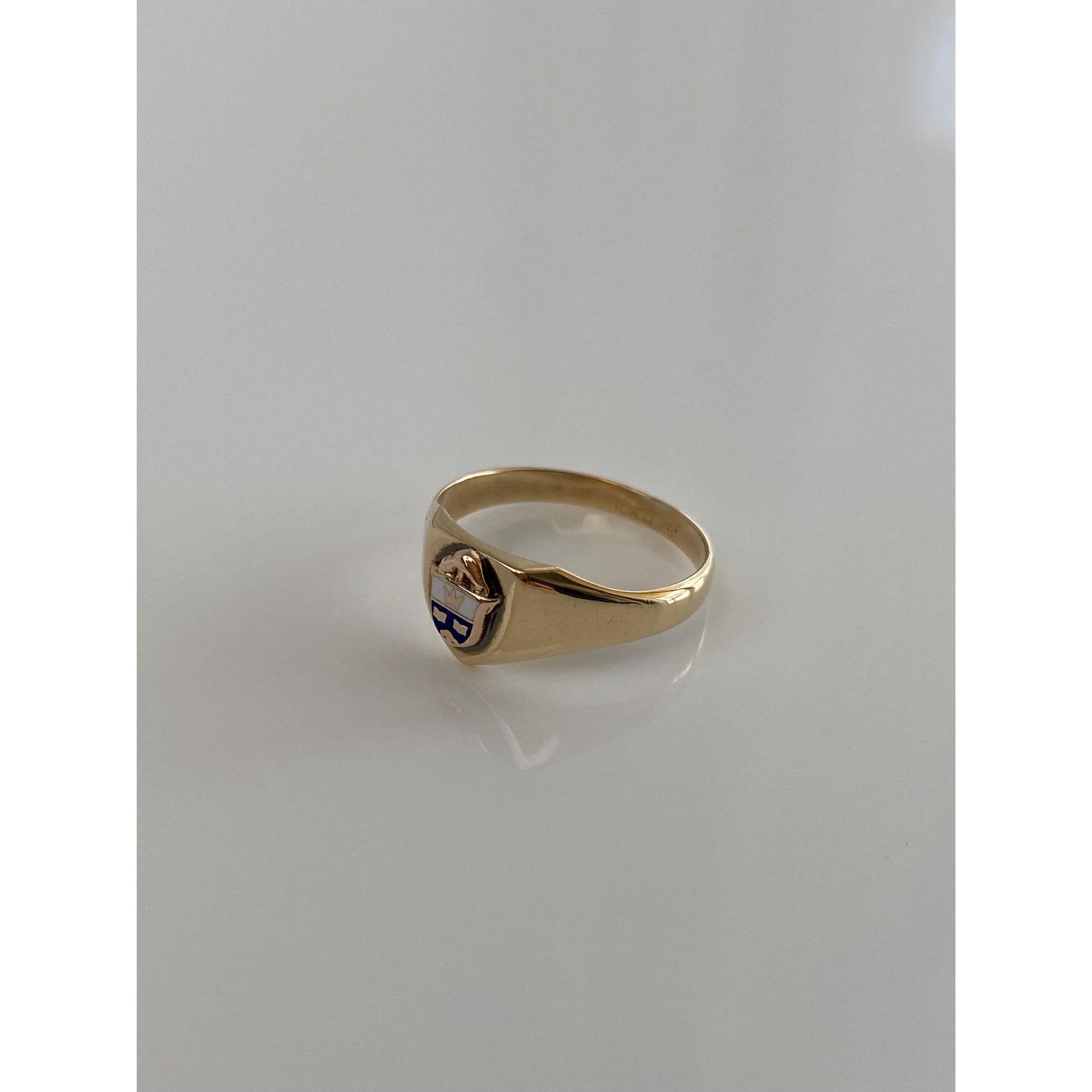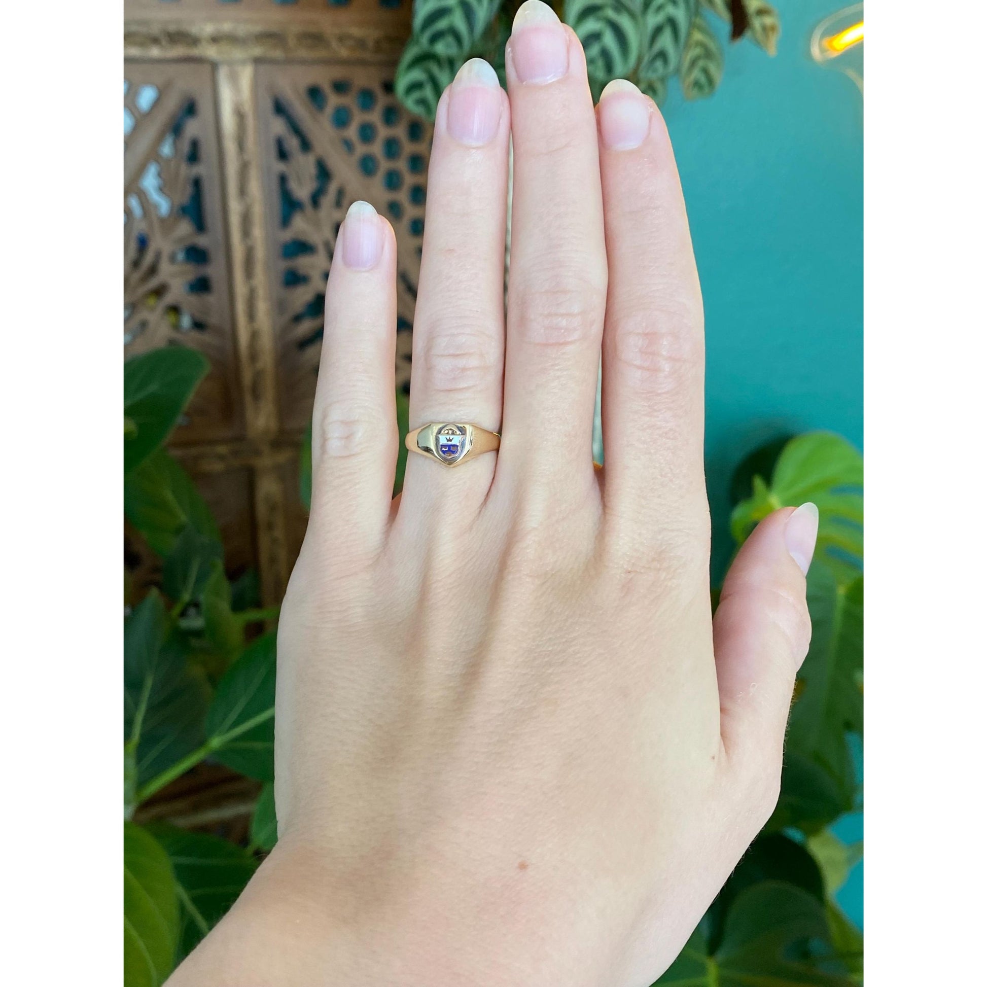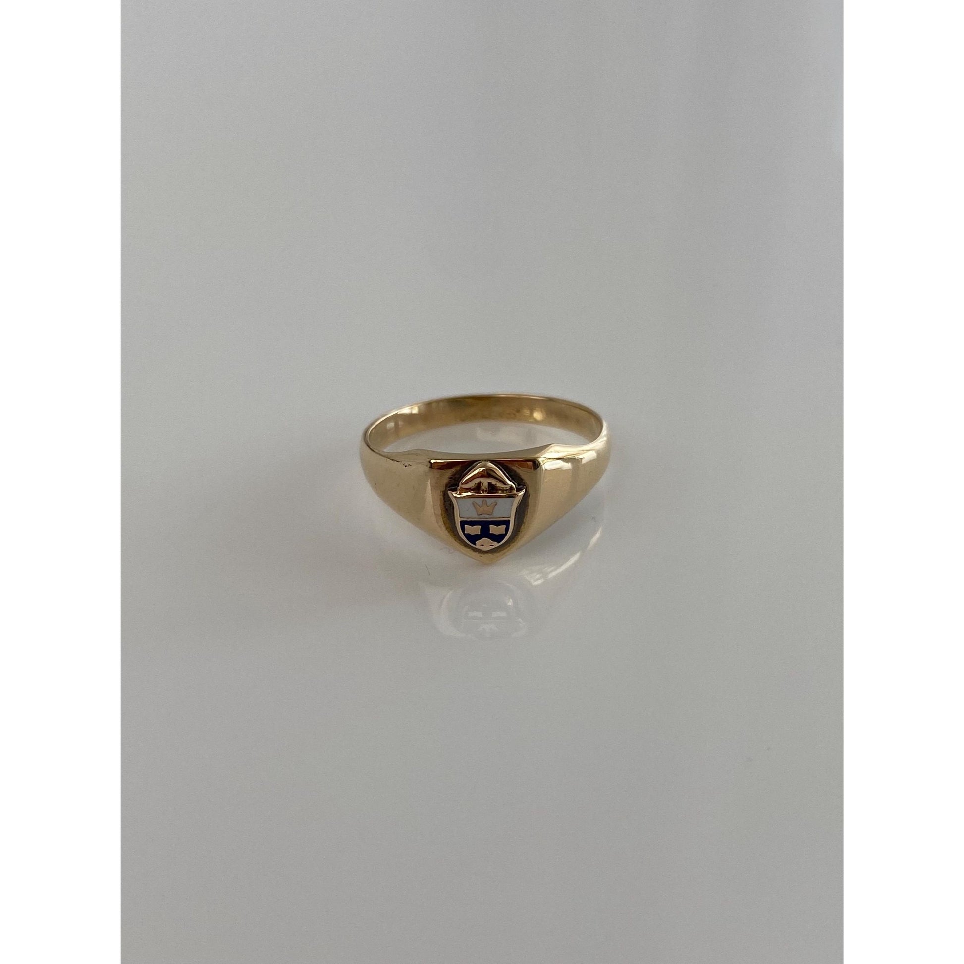 Vintage Solid 10k Yellow Gold Enamel Crest Signet Ring - Size 4.75