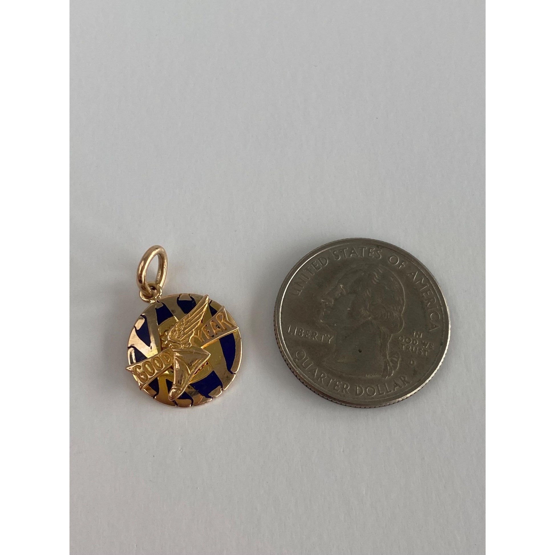 Vintage Solid 10k Yellow Gold Enamel 'Good Year Tires' Charm