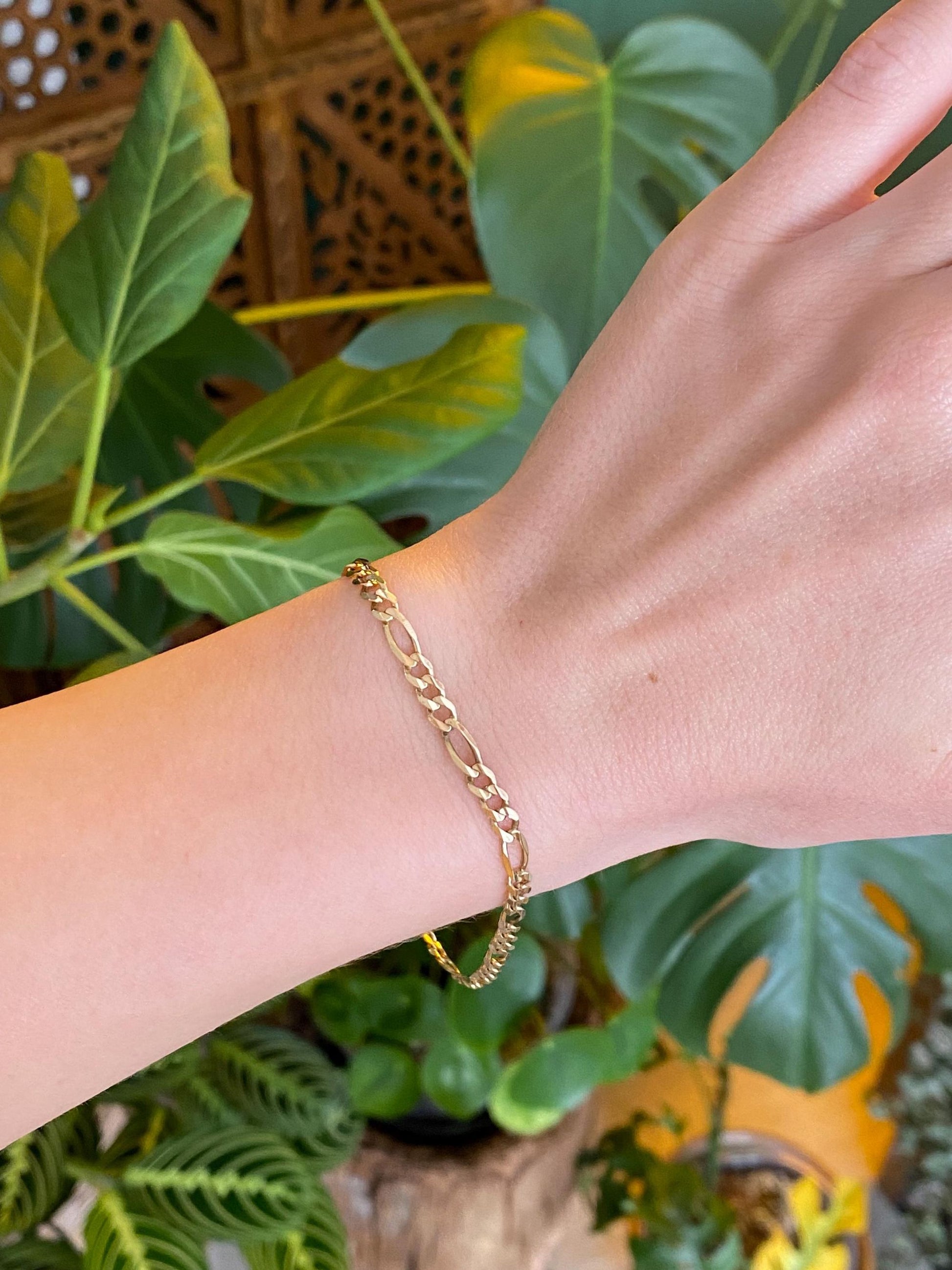 Vintage Solid 10k Yellow Gold Figaro Chain Anklet - 8.25 inches