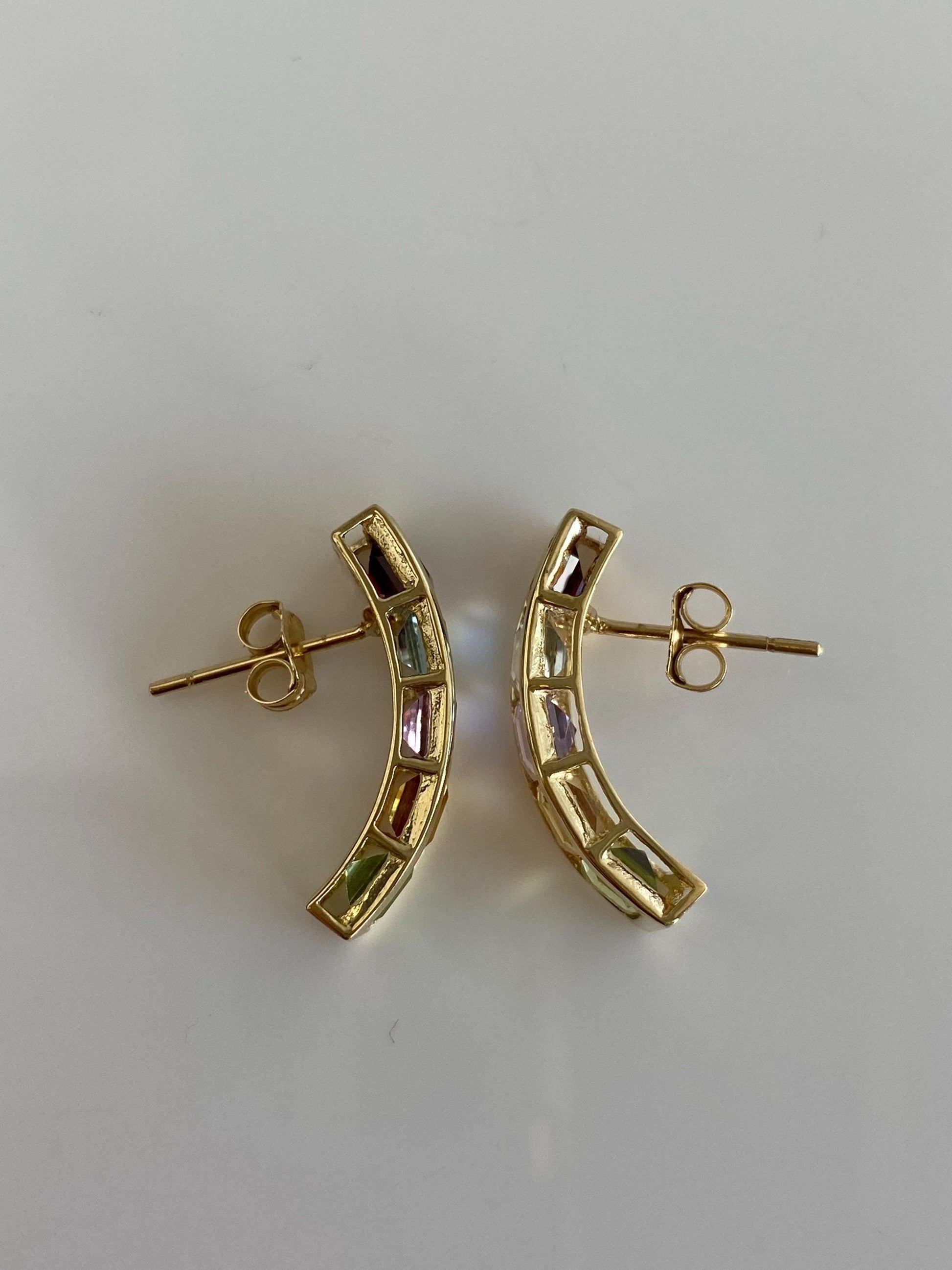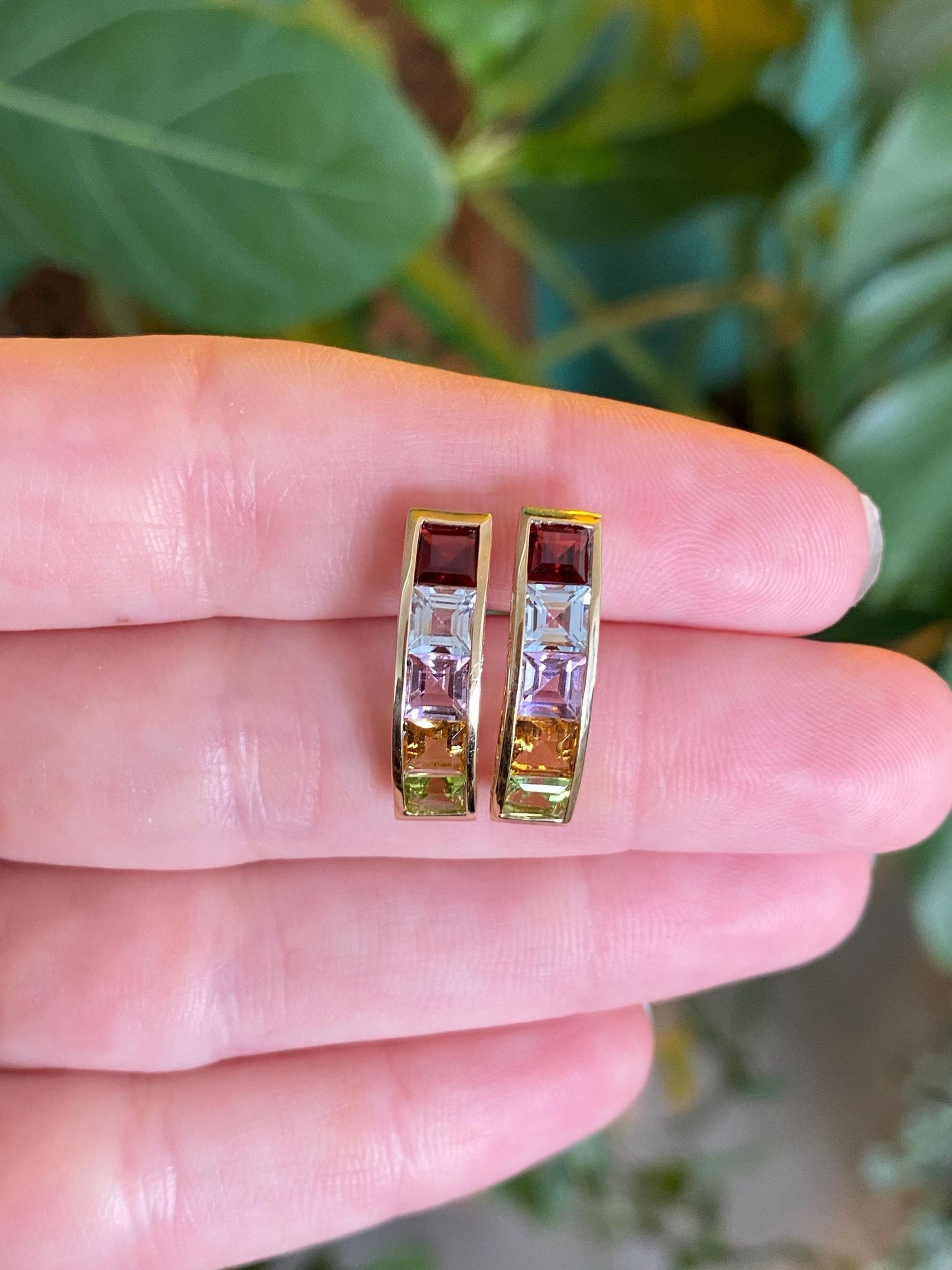 Vintage Solid 10k Yellow Gold Garnet Aquamarine Citrine Green Purple Cubic Zirconia Stud Earrings