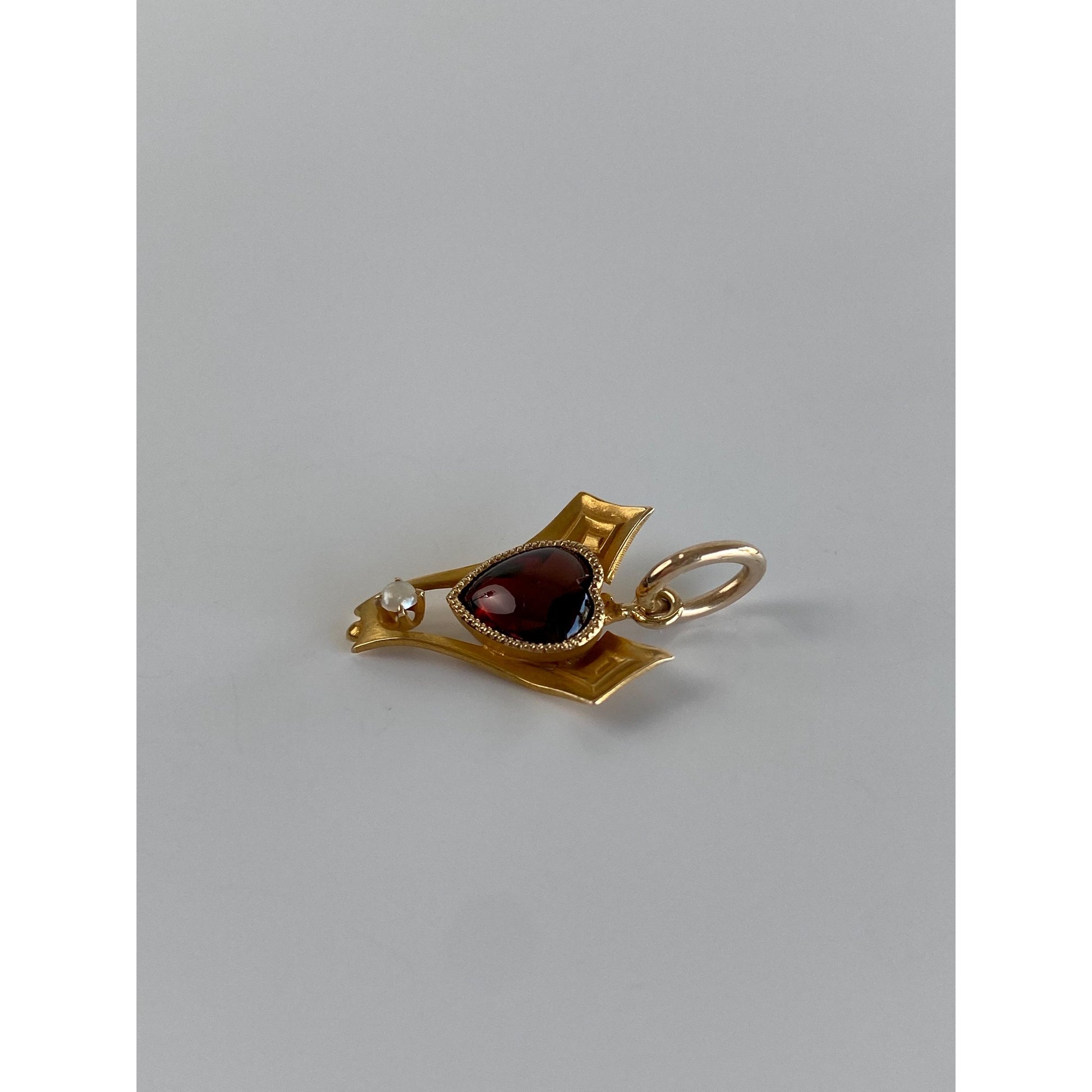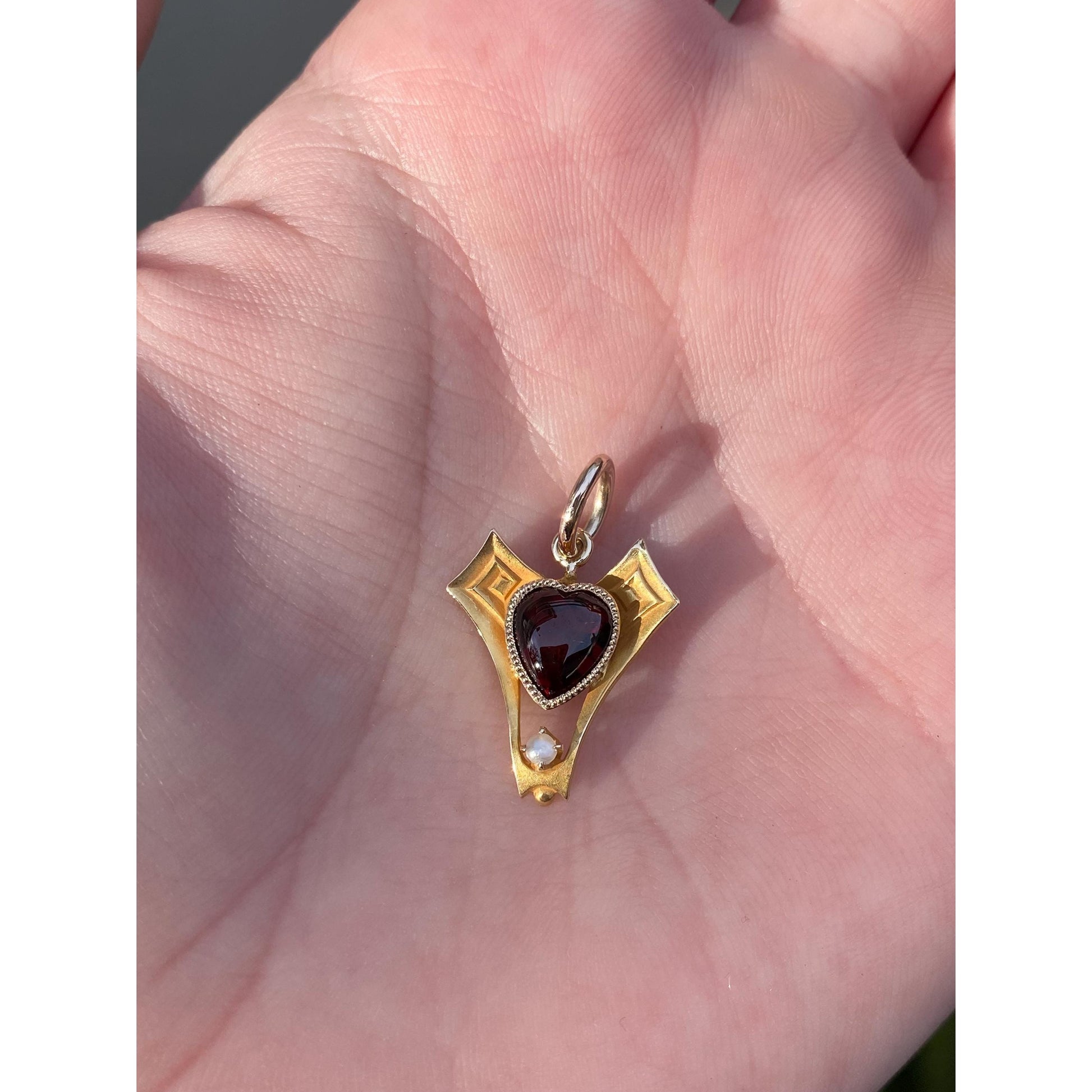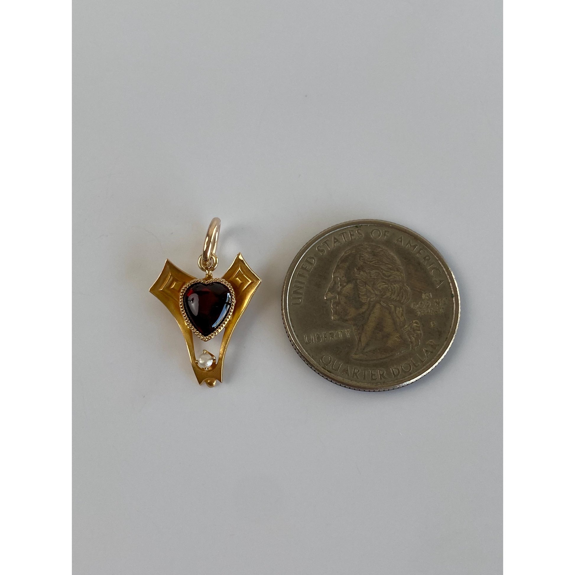 Vintage Solid 10k Yellow Gold Garnet Heart Seed Pearl Stick Pin Conversion Charm