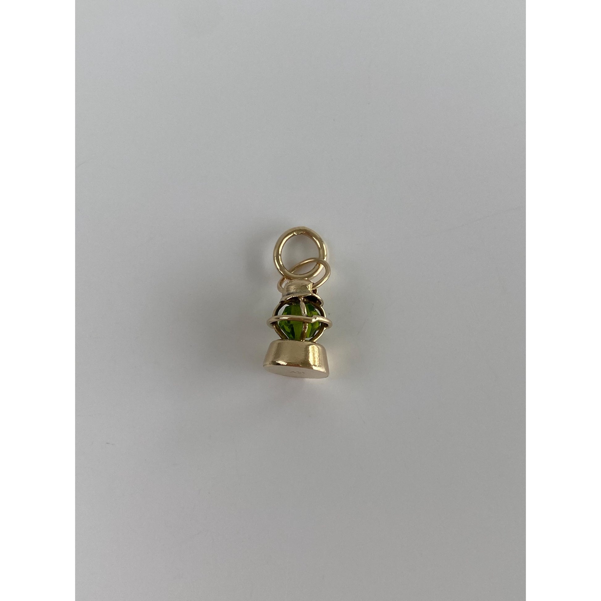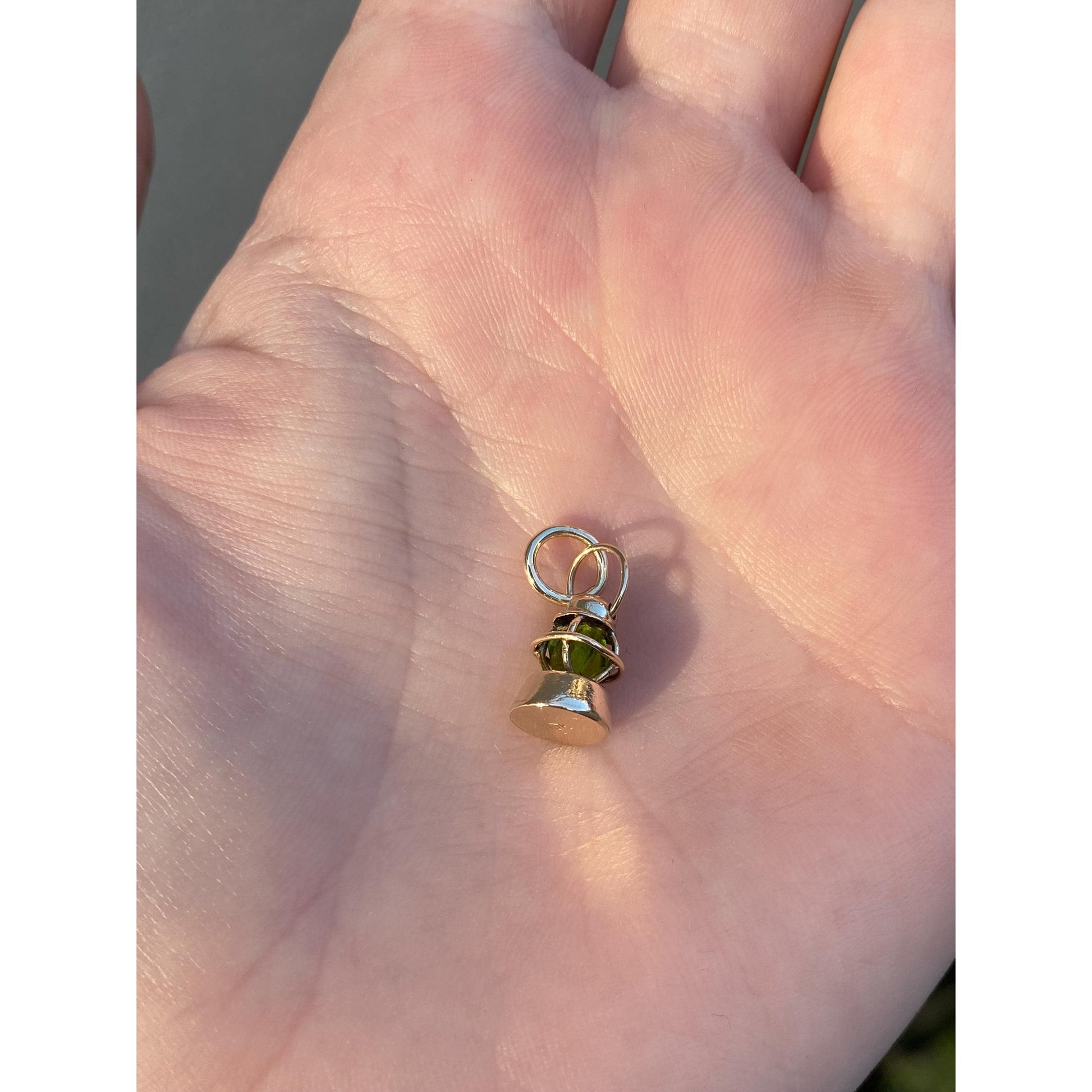 Vintage Solid 10k Yellow Gold Green Bead Lantern Charm