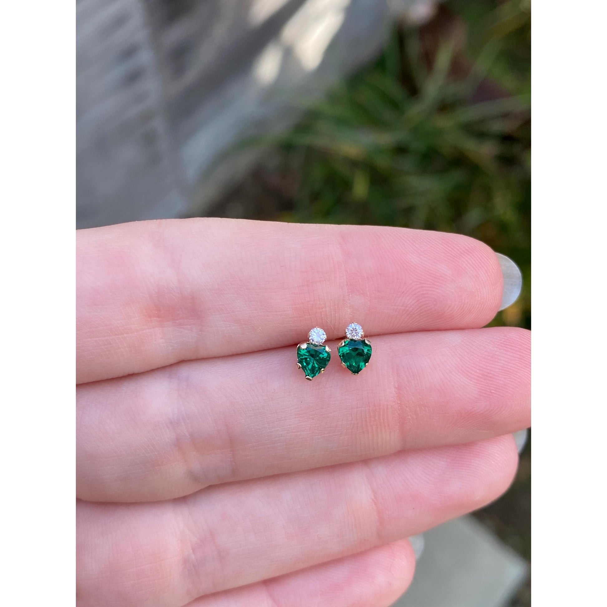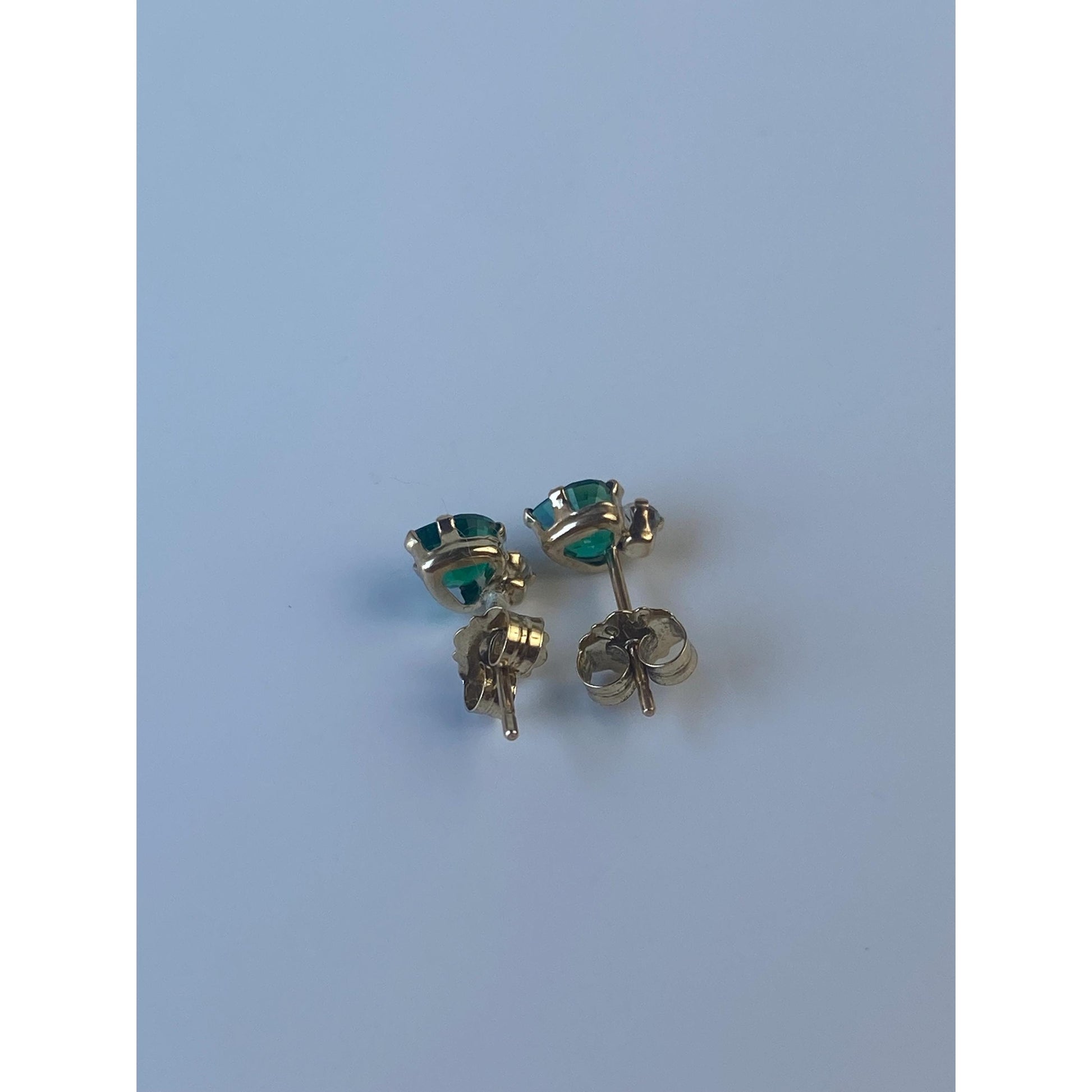 Vintage Solid 10k Yellow Gold Green & Clear Cubic Zirconia Stud Earrings
