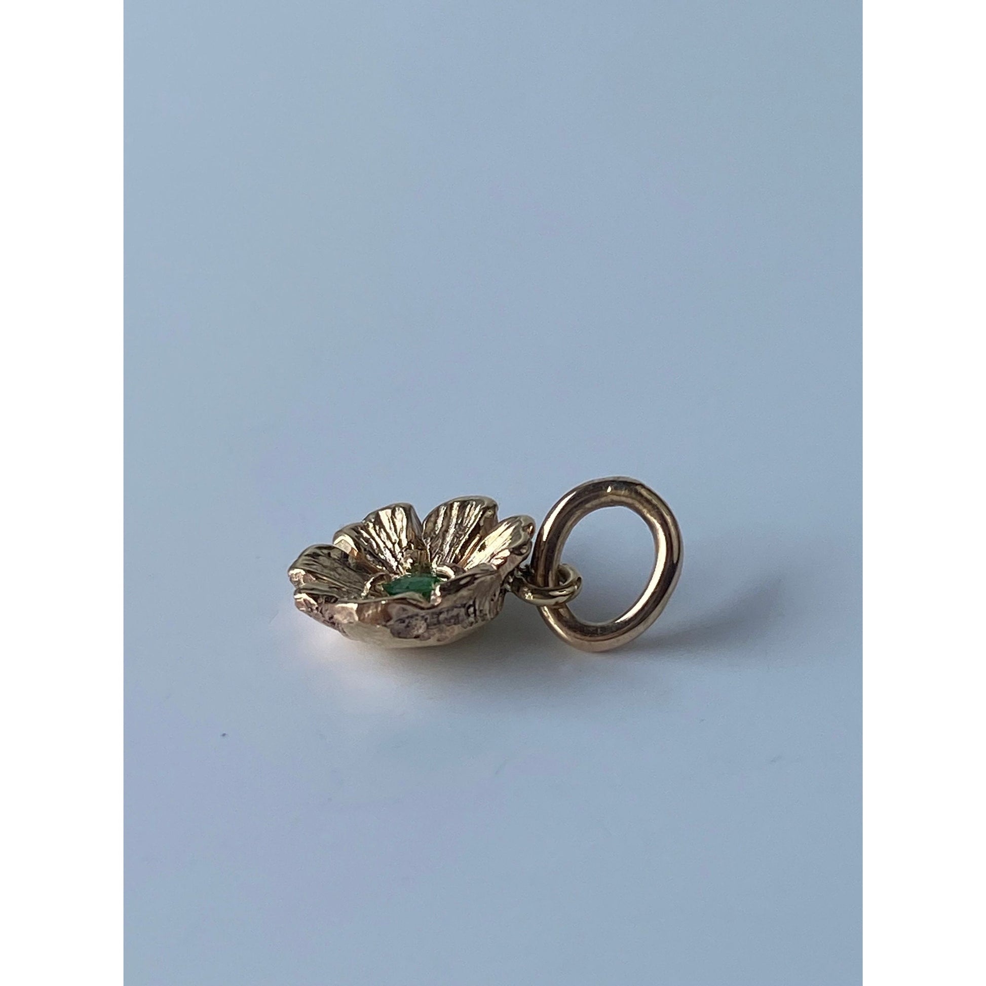 Vintage Solid 10k Yellow Gold Green Cubic Zirconia Flower Charm