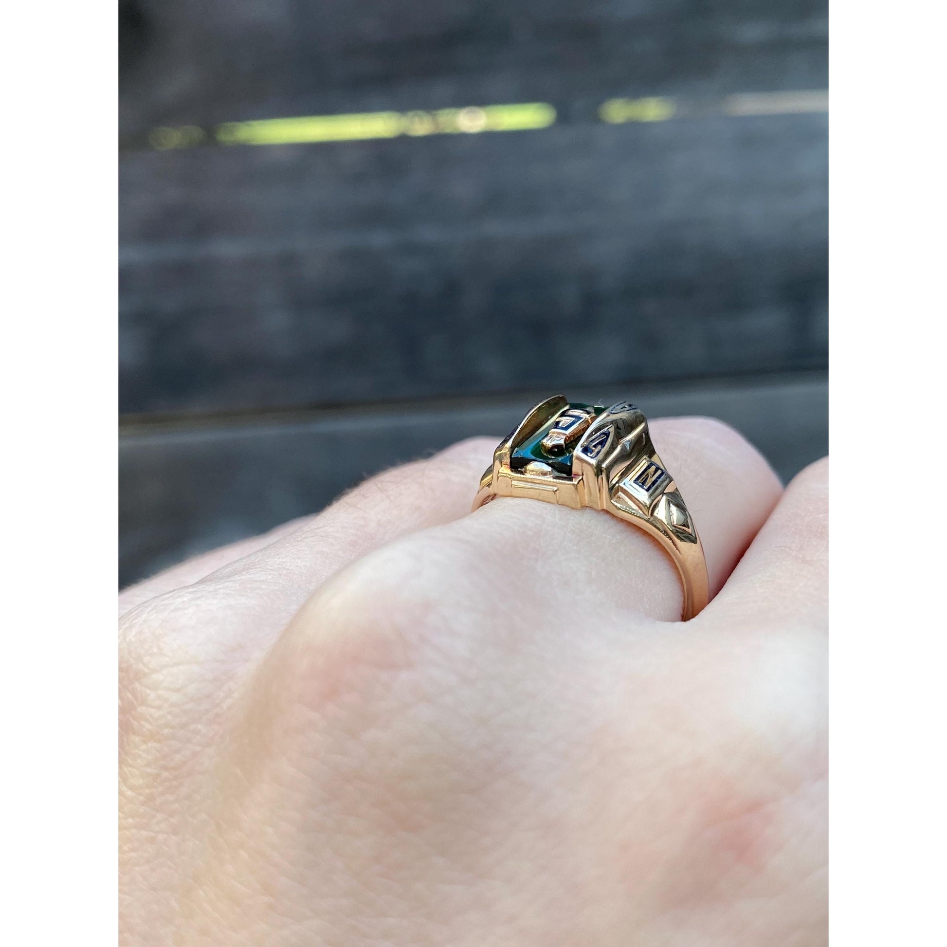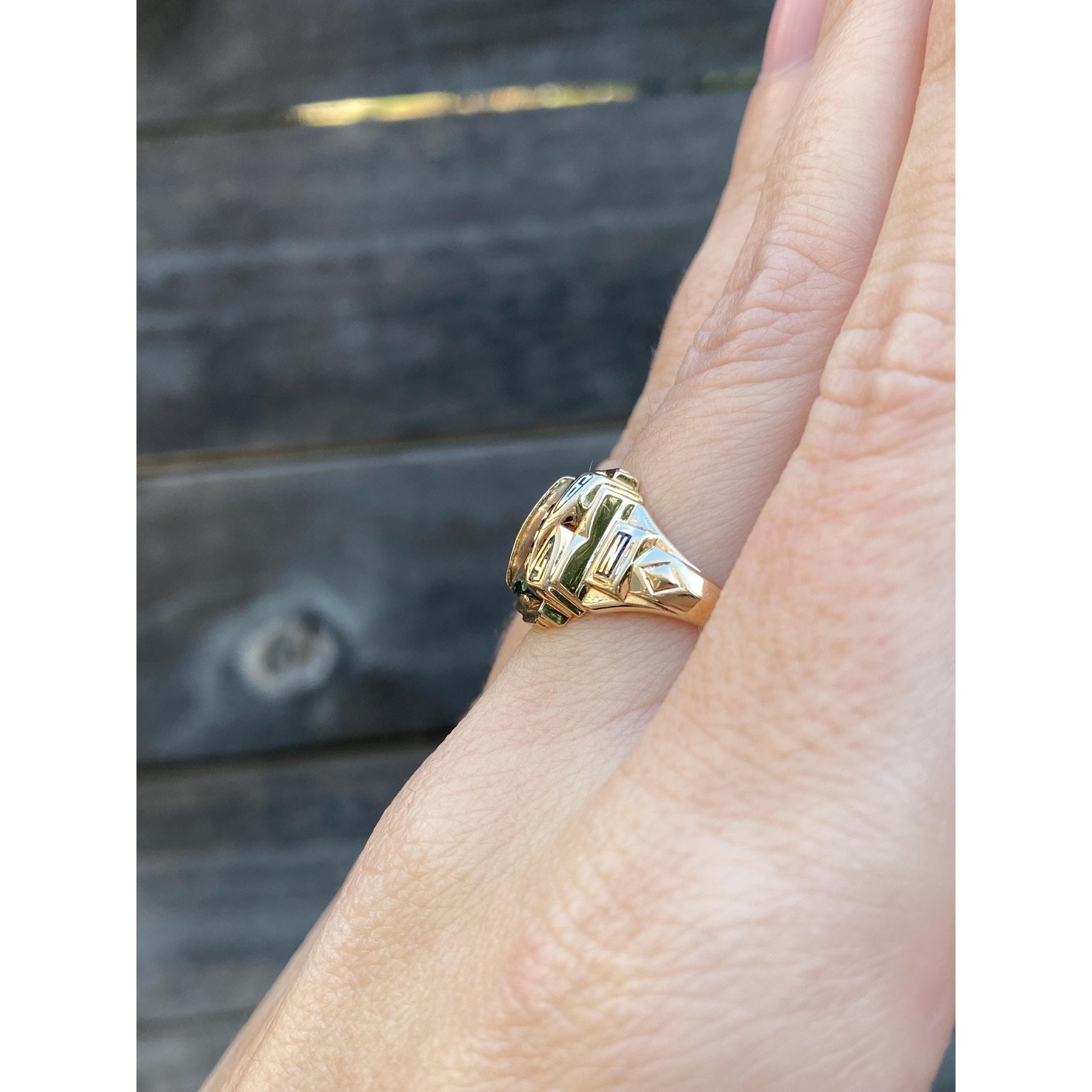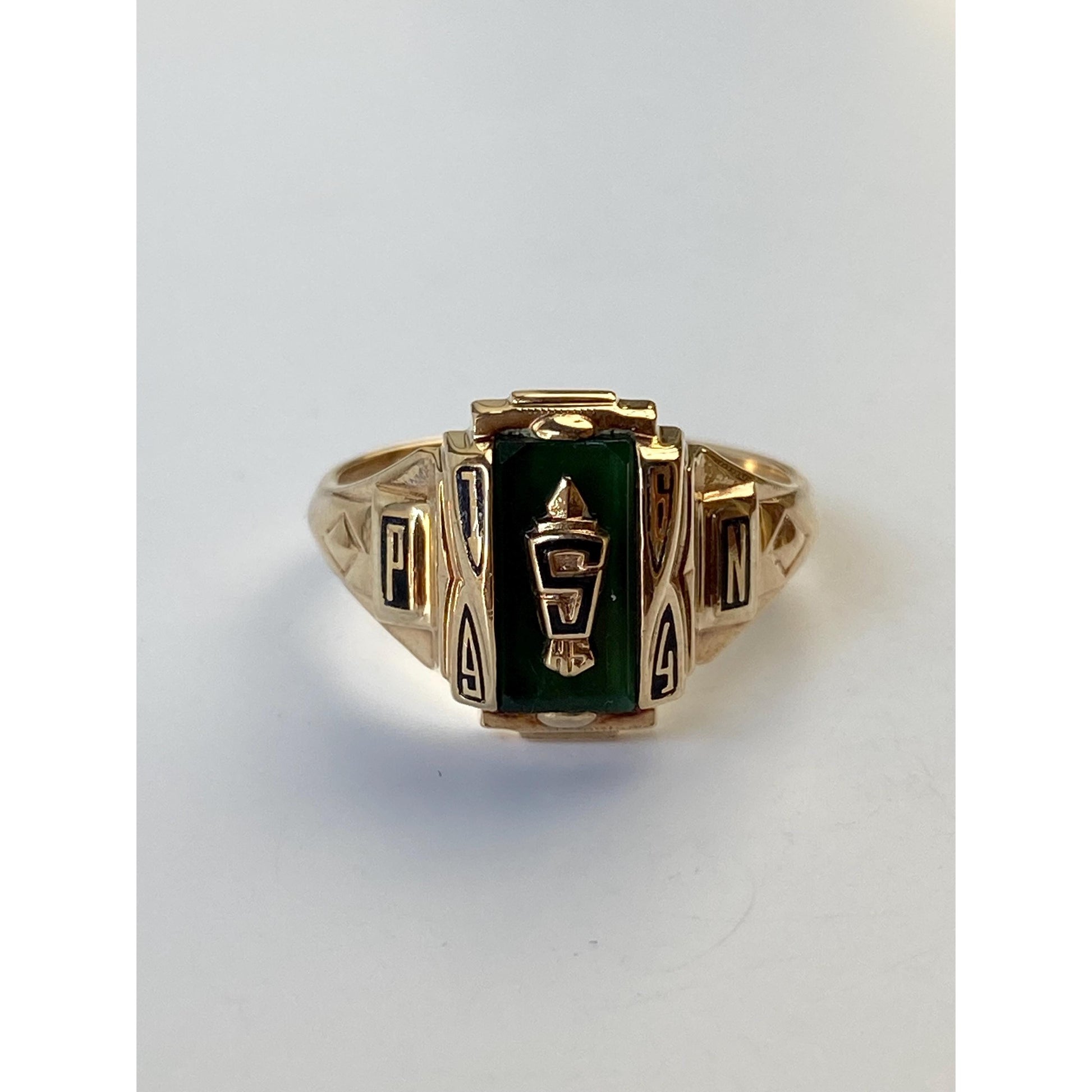 Vintage Solid 10k Yellow Gold Green Spinel 1964 Class Ring - Size 7.5
