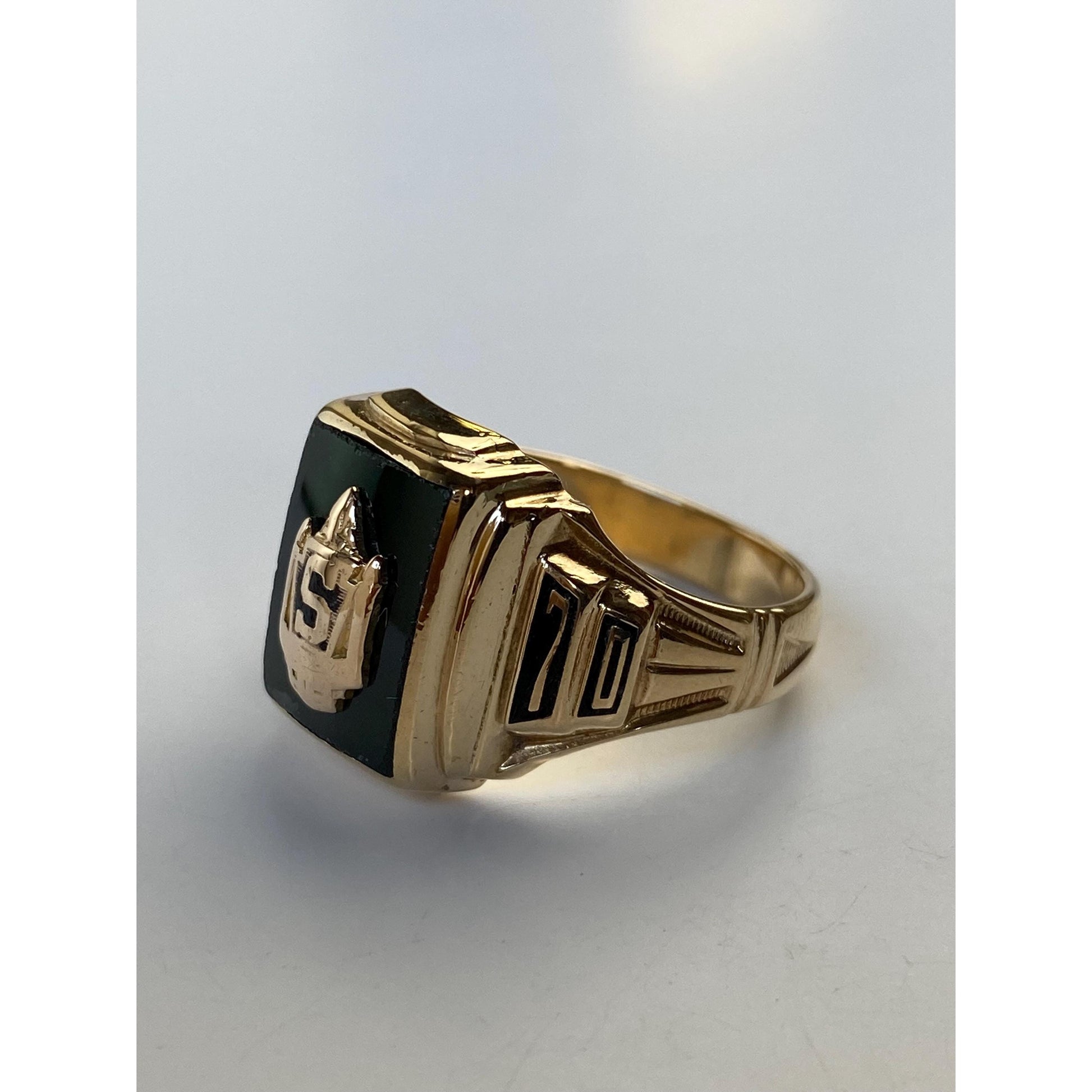 Vintage Solid 10k Yellow Gold Green Spinel 1970 Class Ring - Size 9.5