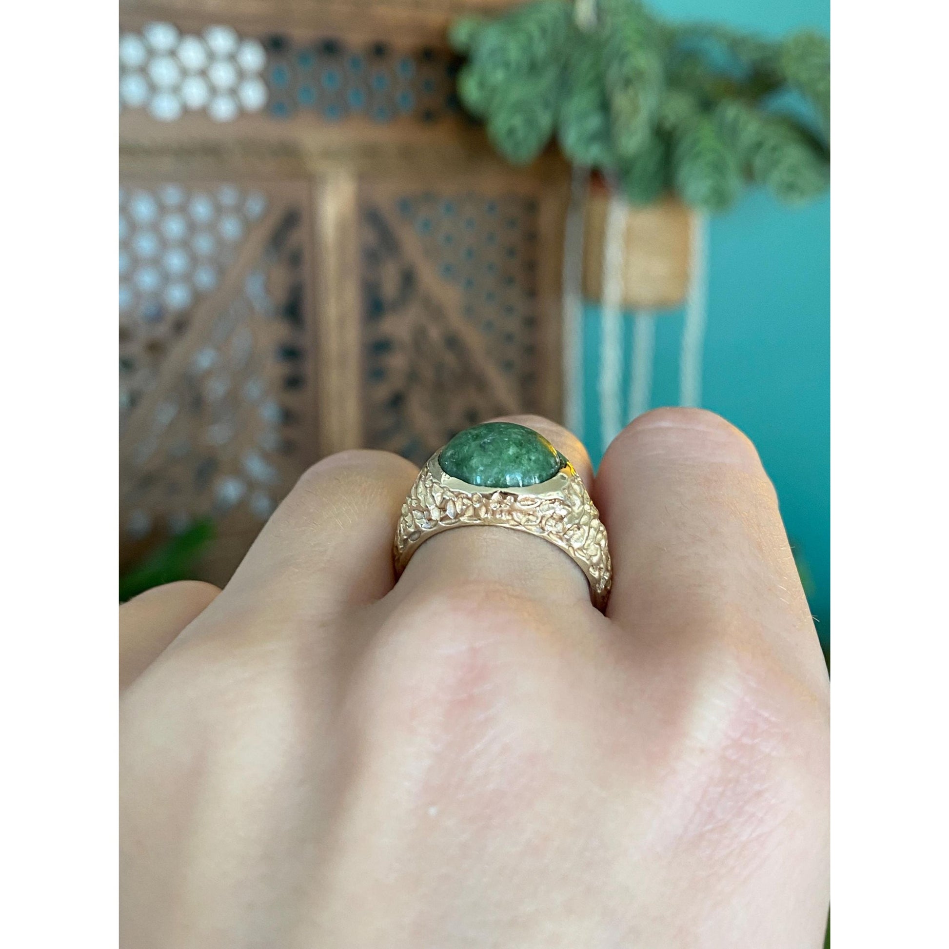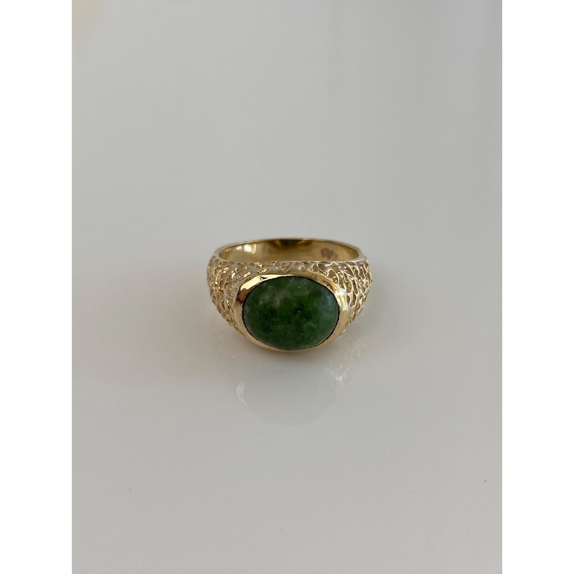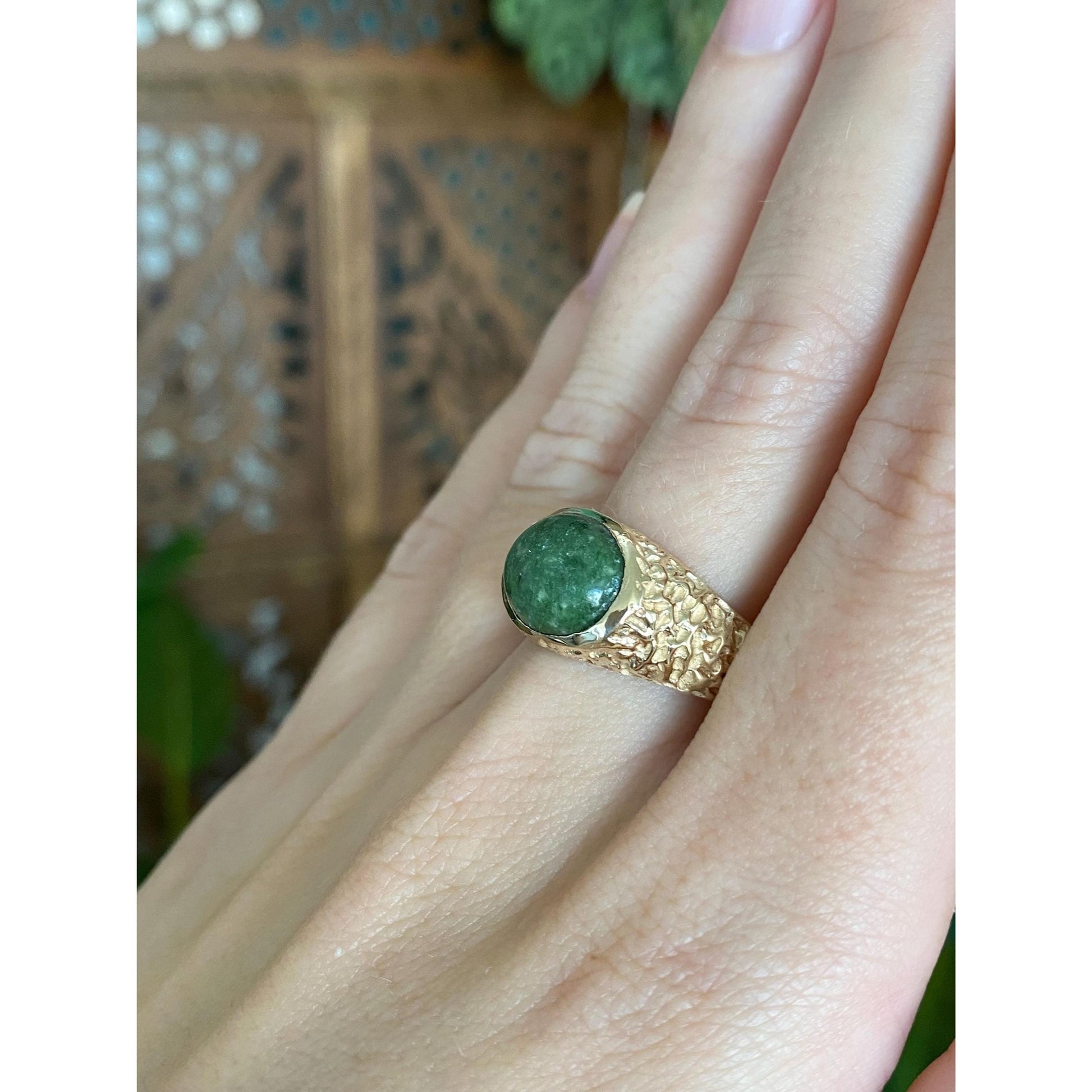 Vintage Solid 10k Yellow Gold Green Stone Textured Ring - Size 8.75