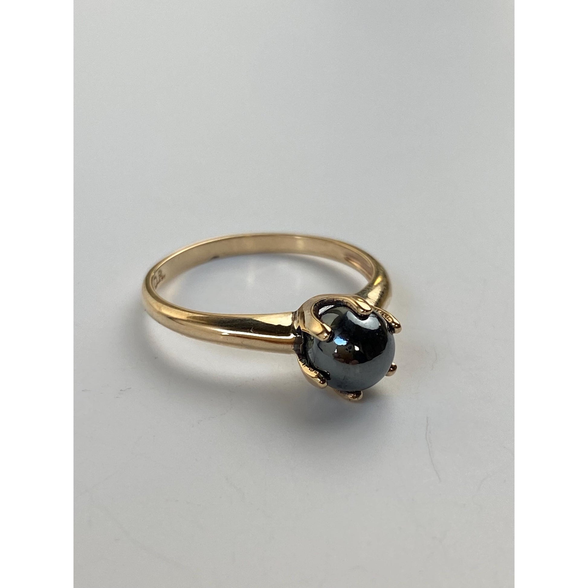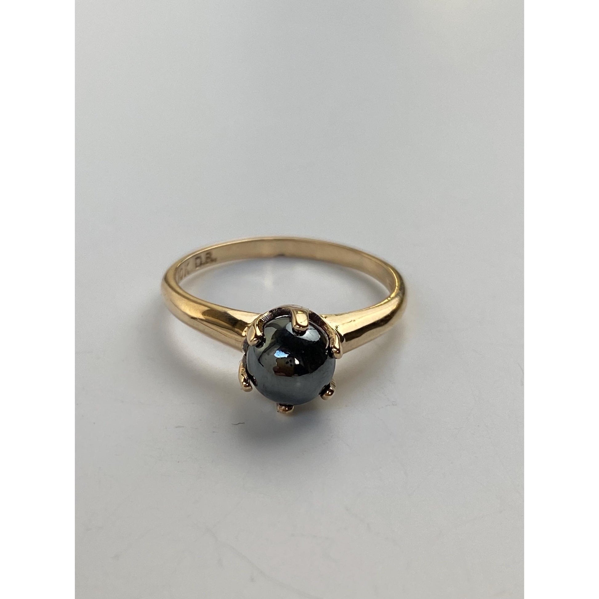 Vintage Solid 10k Yellow Gold Hematite Ring - Size 5.25