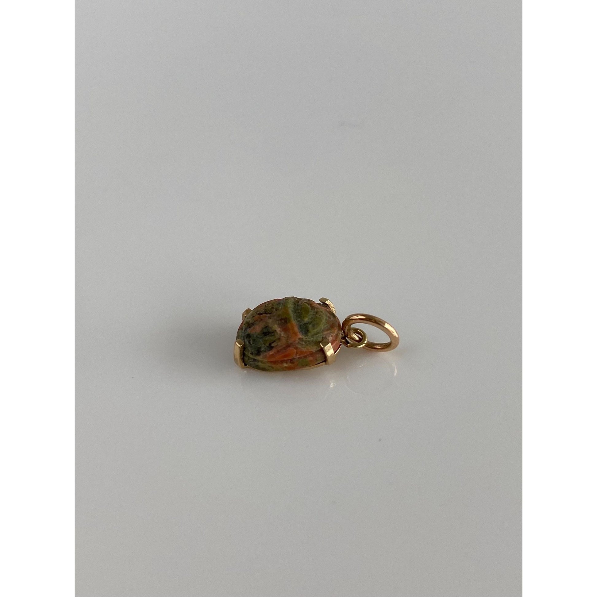 Vintage Solid 10k Yellow Gold Little Carved Agate Scarab Charm