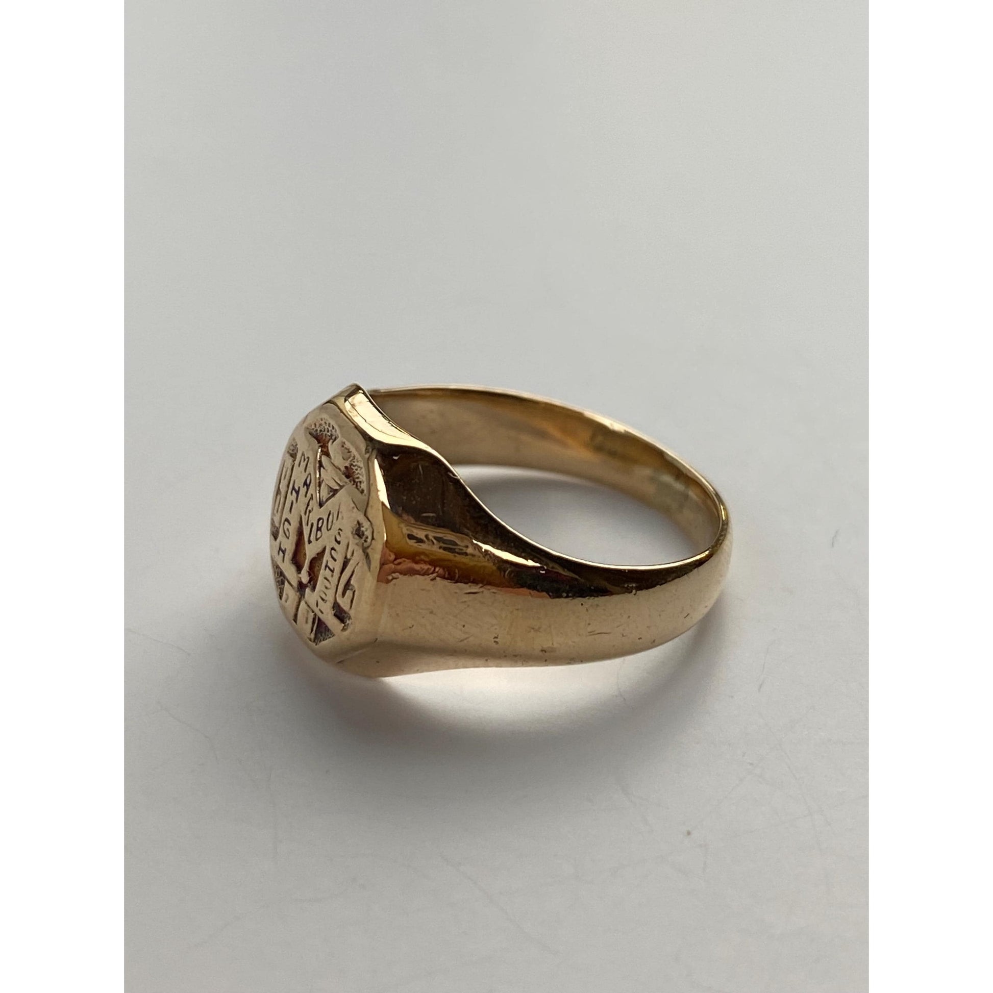Vintage Solid 10k Yellow Gold 'M' School Signet Ring - Size 4.75