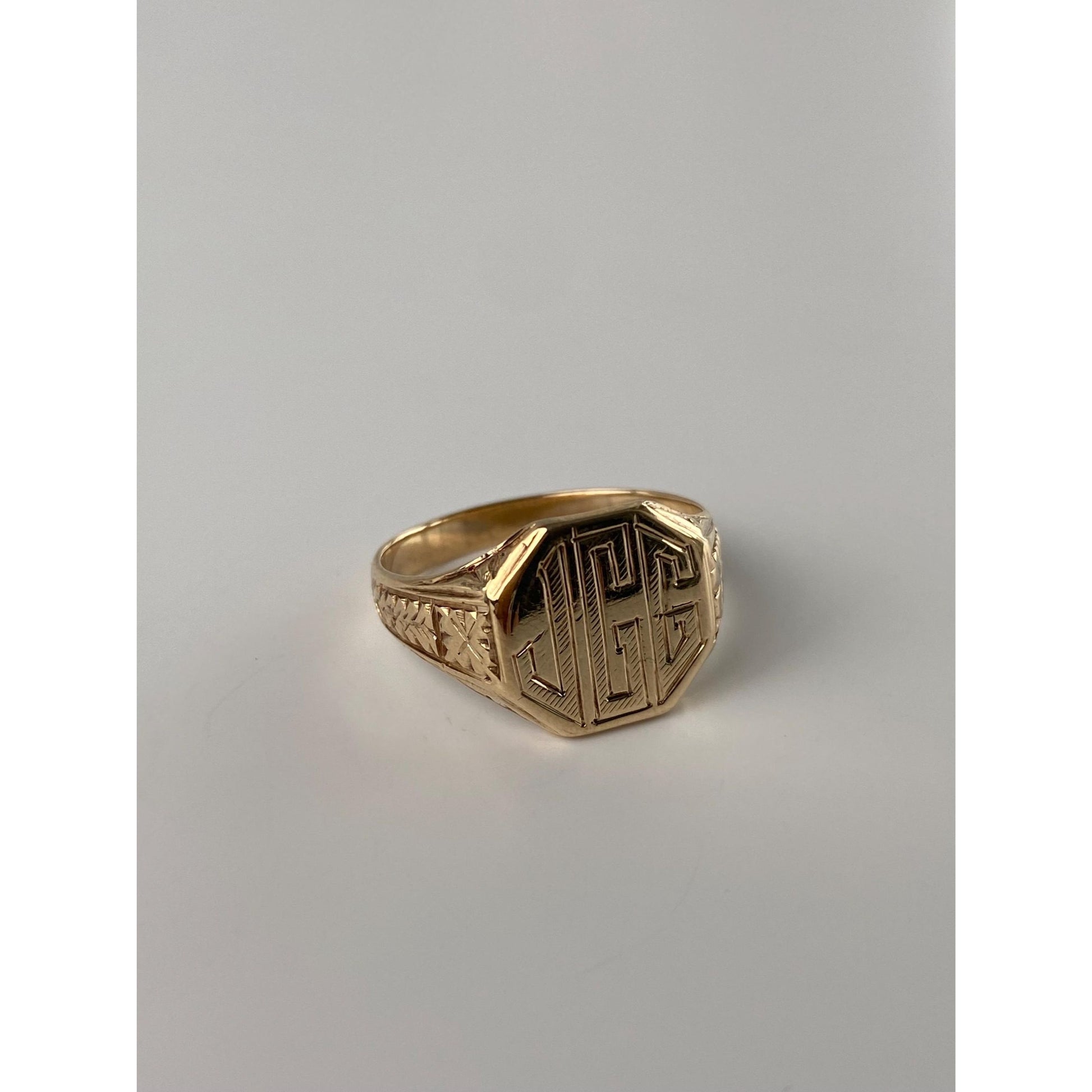 Vintage Solid 10k Yellow Gold Monogram JGC Pattern Signet Ring - Size 6.75