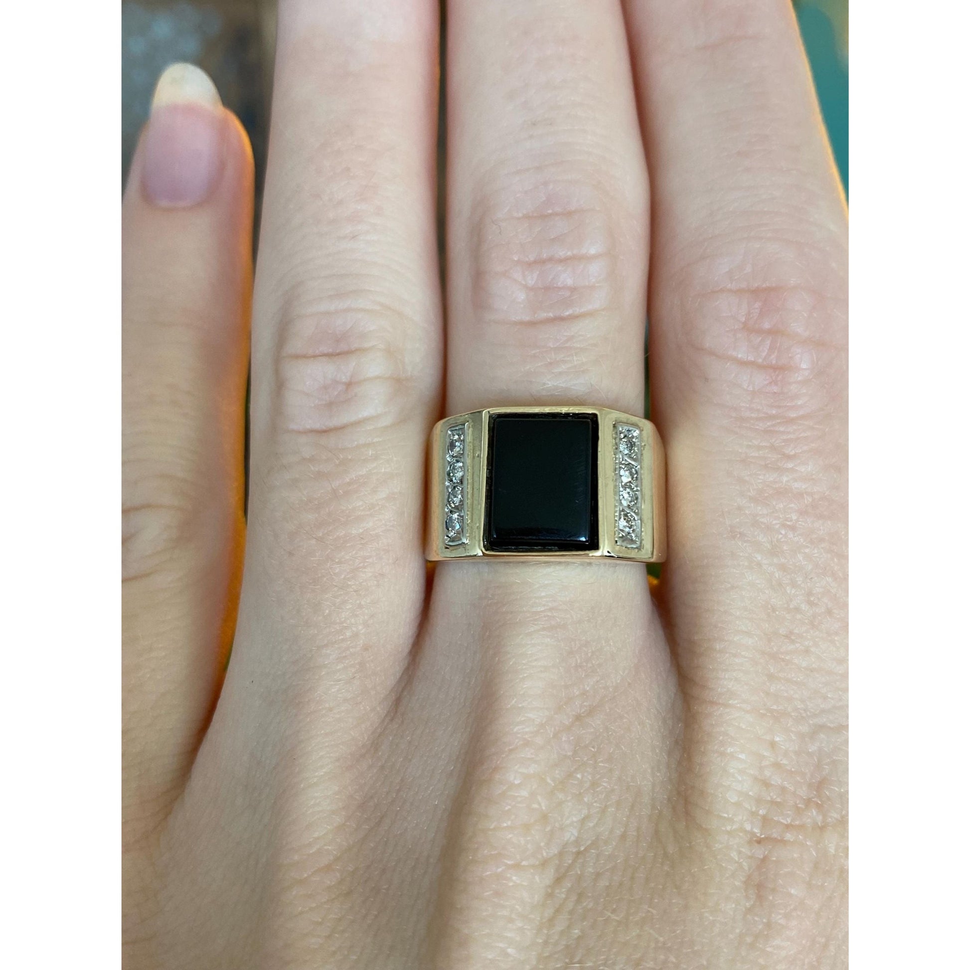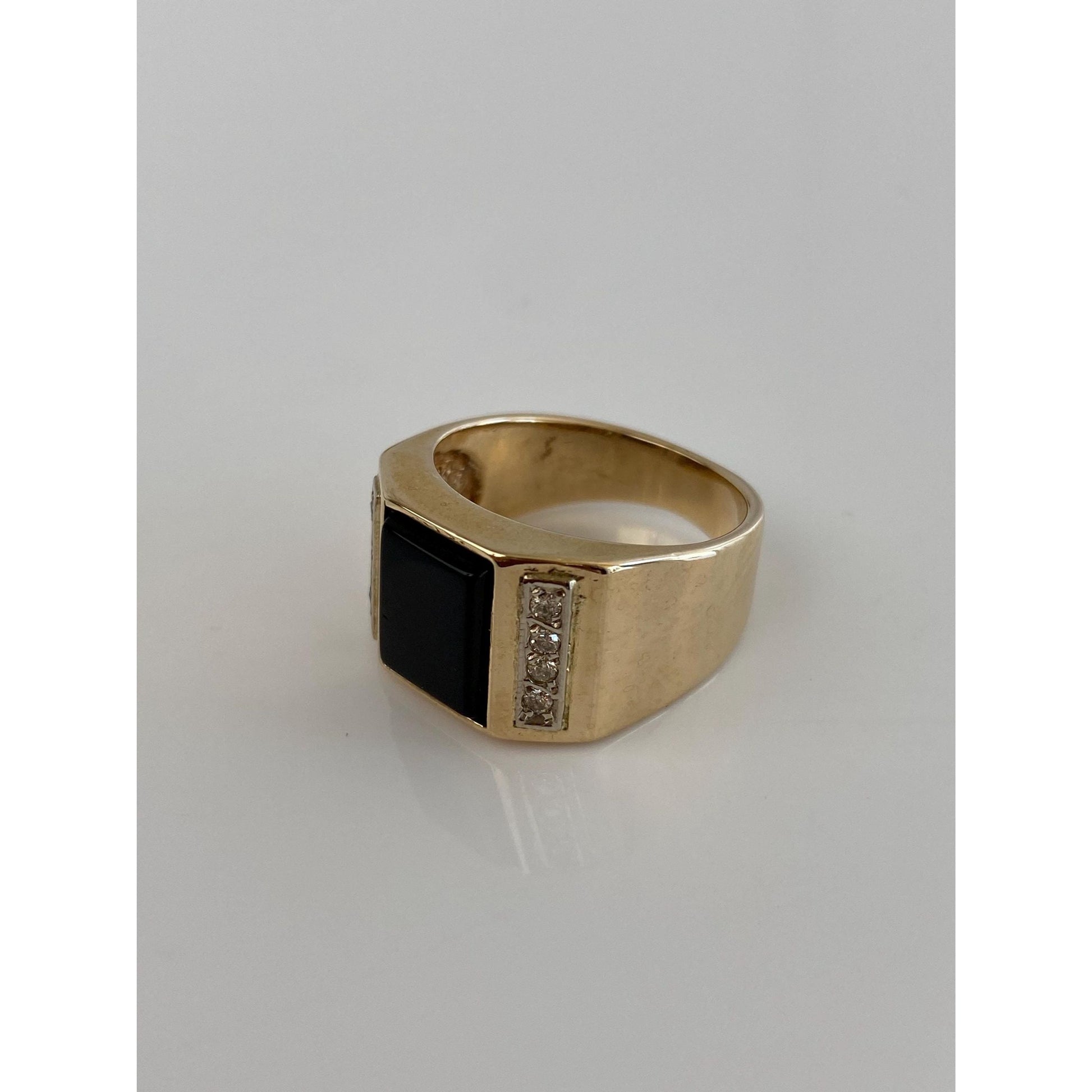 Vintage Solid 10k Yellow Gold Onyx & Diamond Ring - Size 7.5