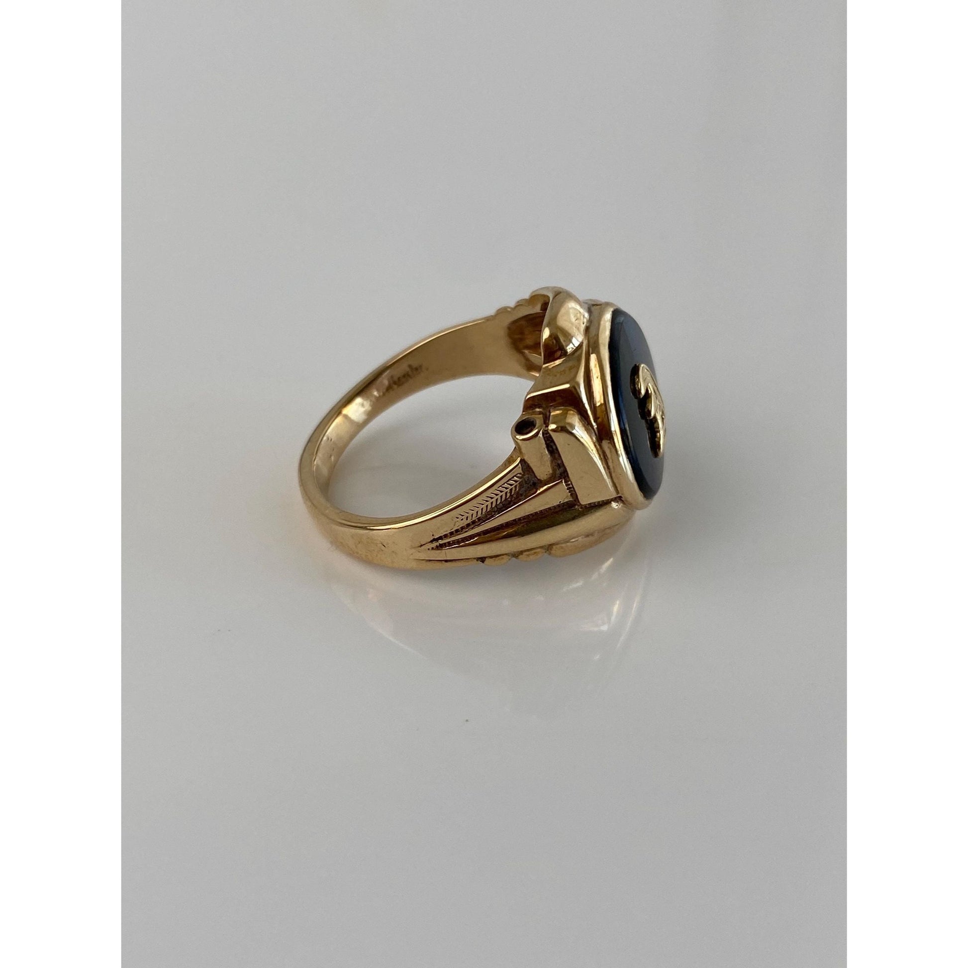 Vintage Solid 10k Yellow Gold Onyx Initial 'A' Ring - Size 11