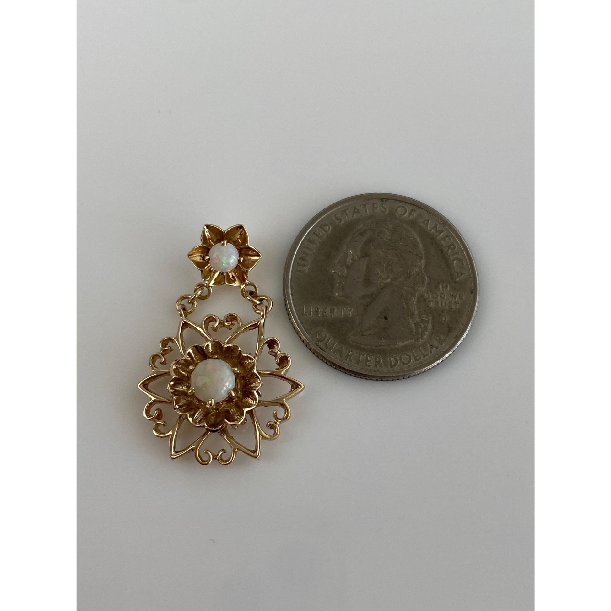 Vintage Solid 10k Yellow Gold Opal Flower Dangle Slide Charm