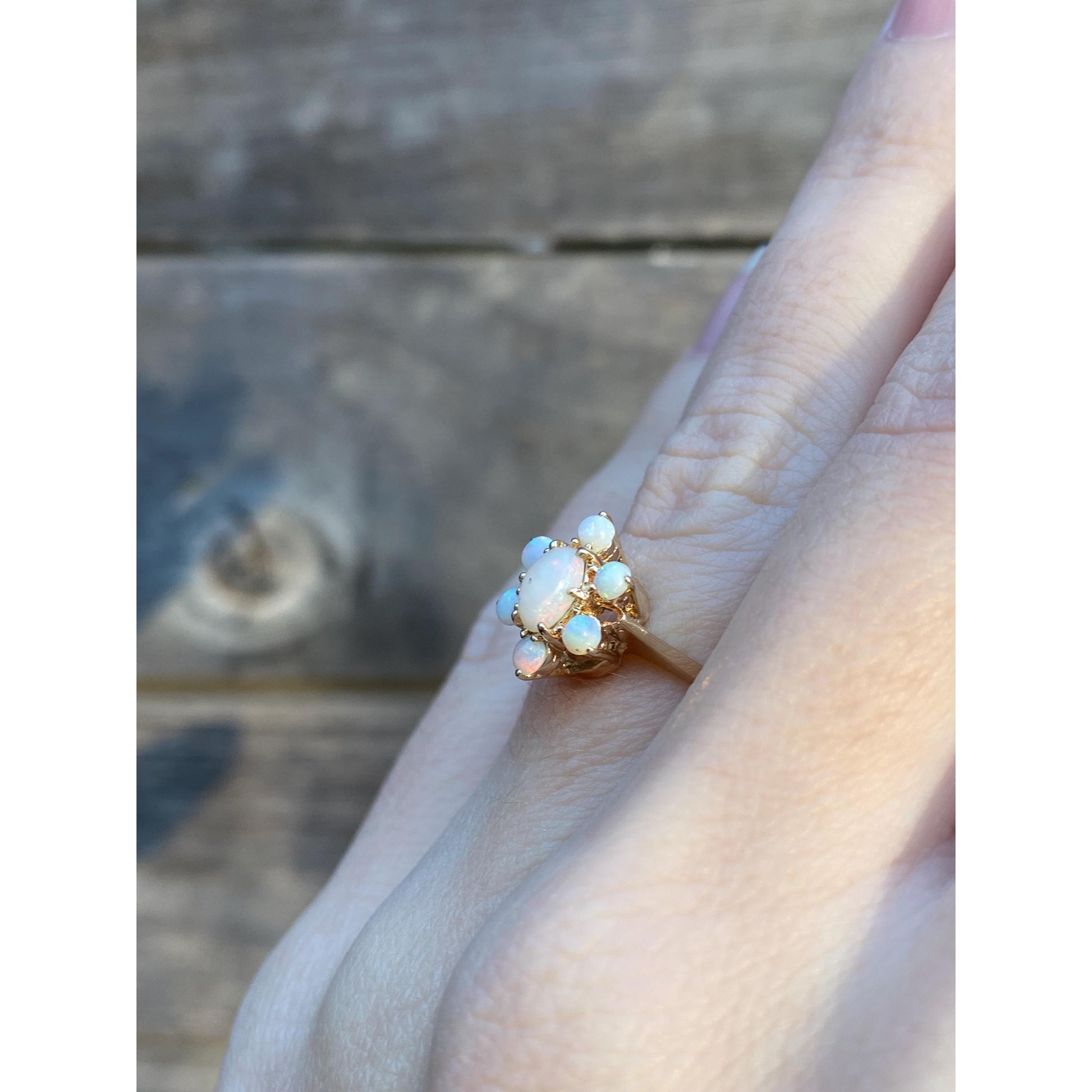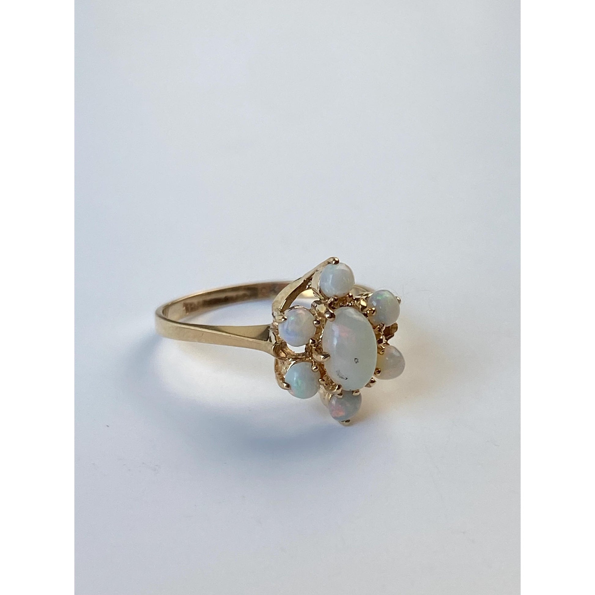 Vintage Solid 10k Yellow Gold Opal Halo Ring - Size 4.5