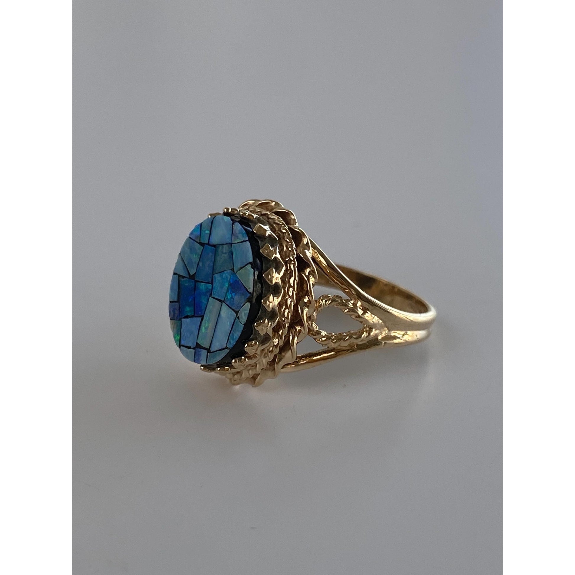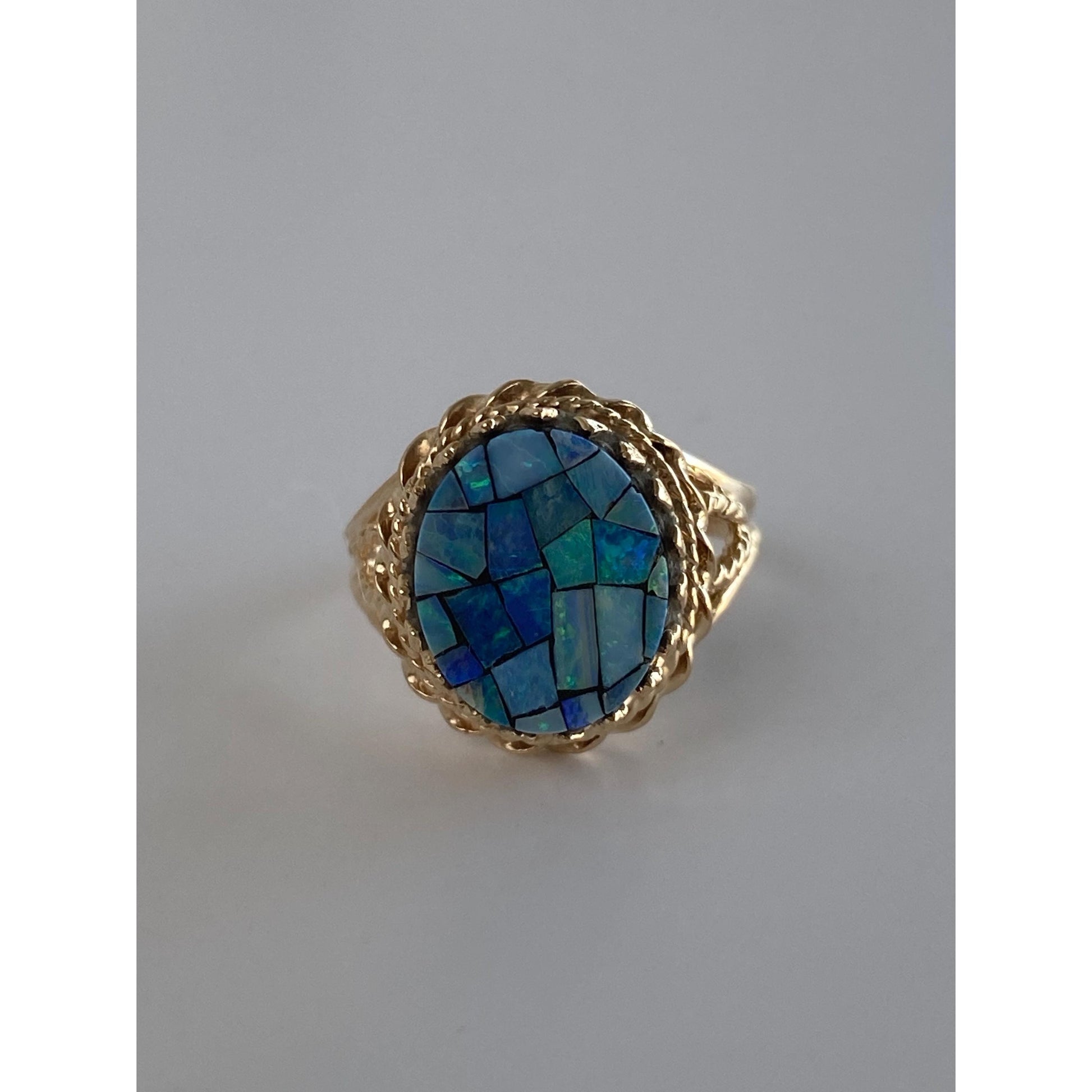 Vintage Solid 10k Yellow Gold Opal Mosaic Ring - Size 4.25