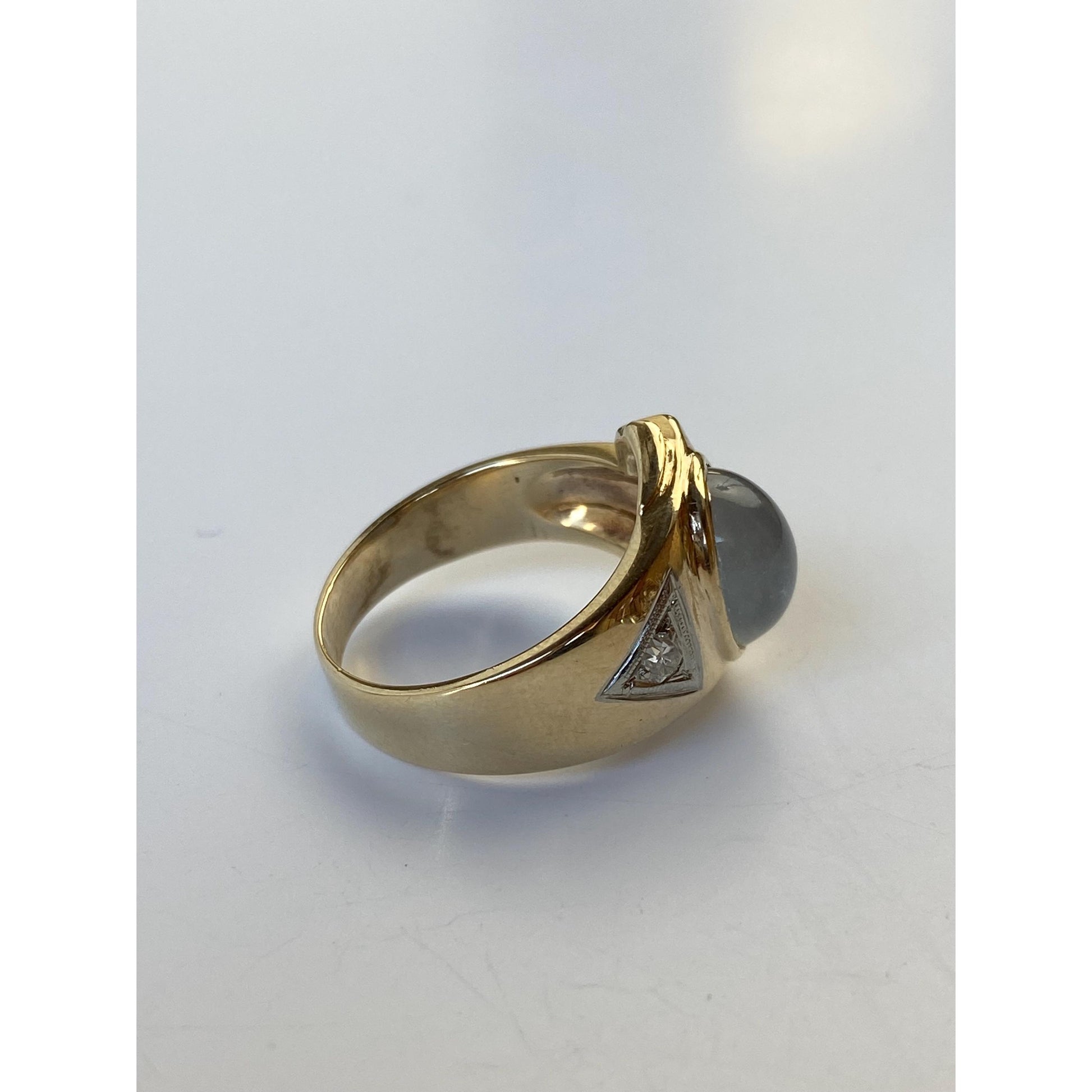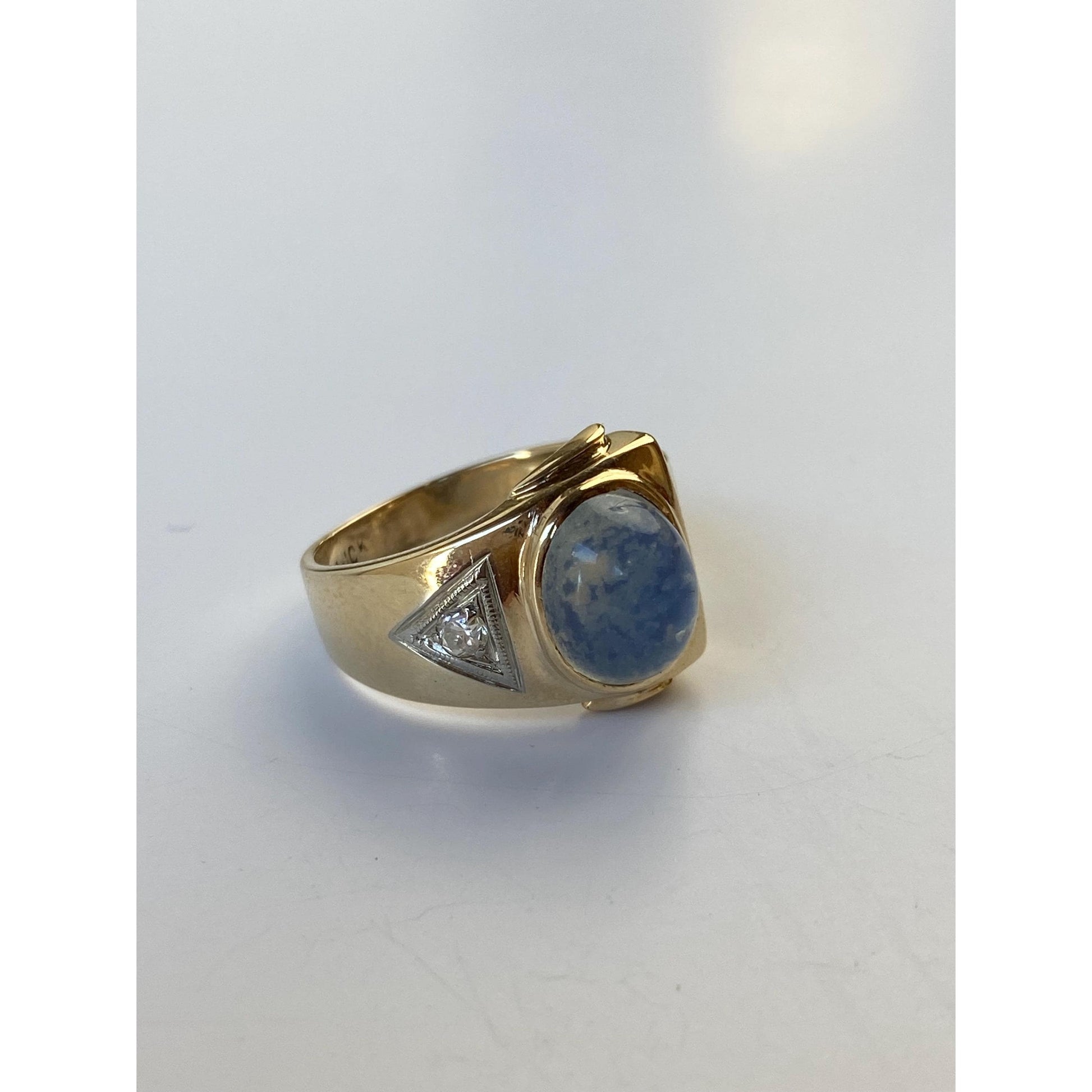 Vintage Solid 10k Yellow Gold Painted Quartz Clear Sapphire Ring - Size 6.75