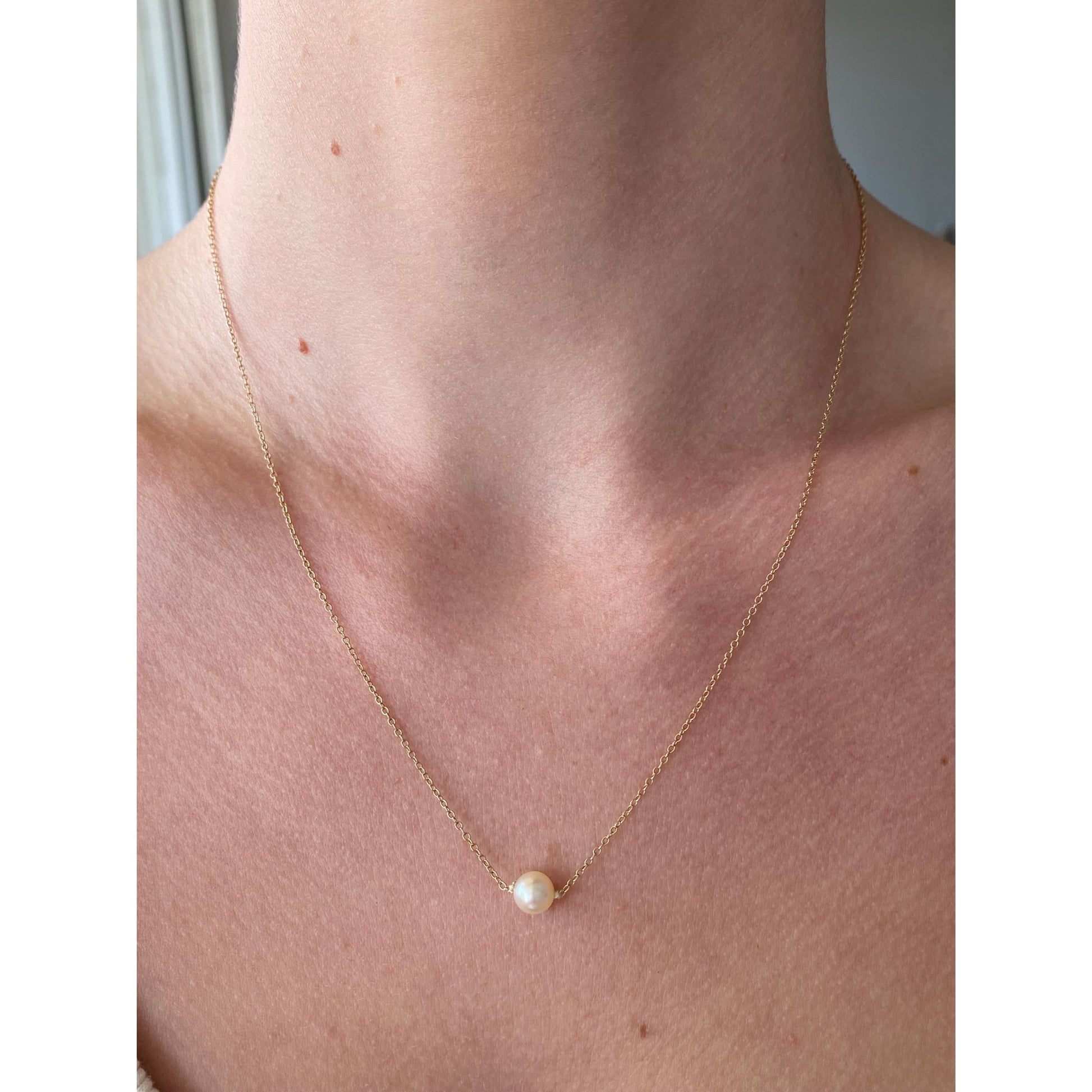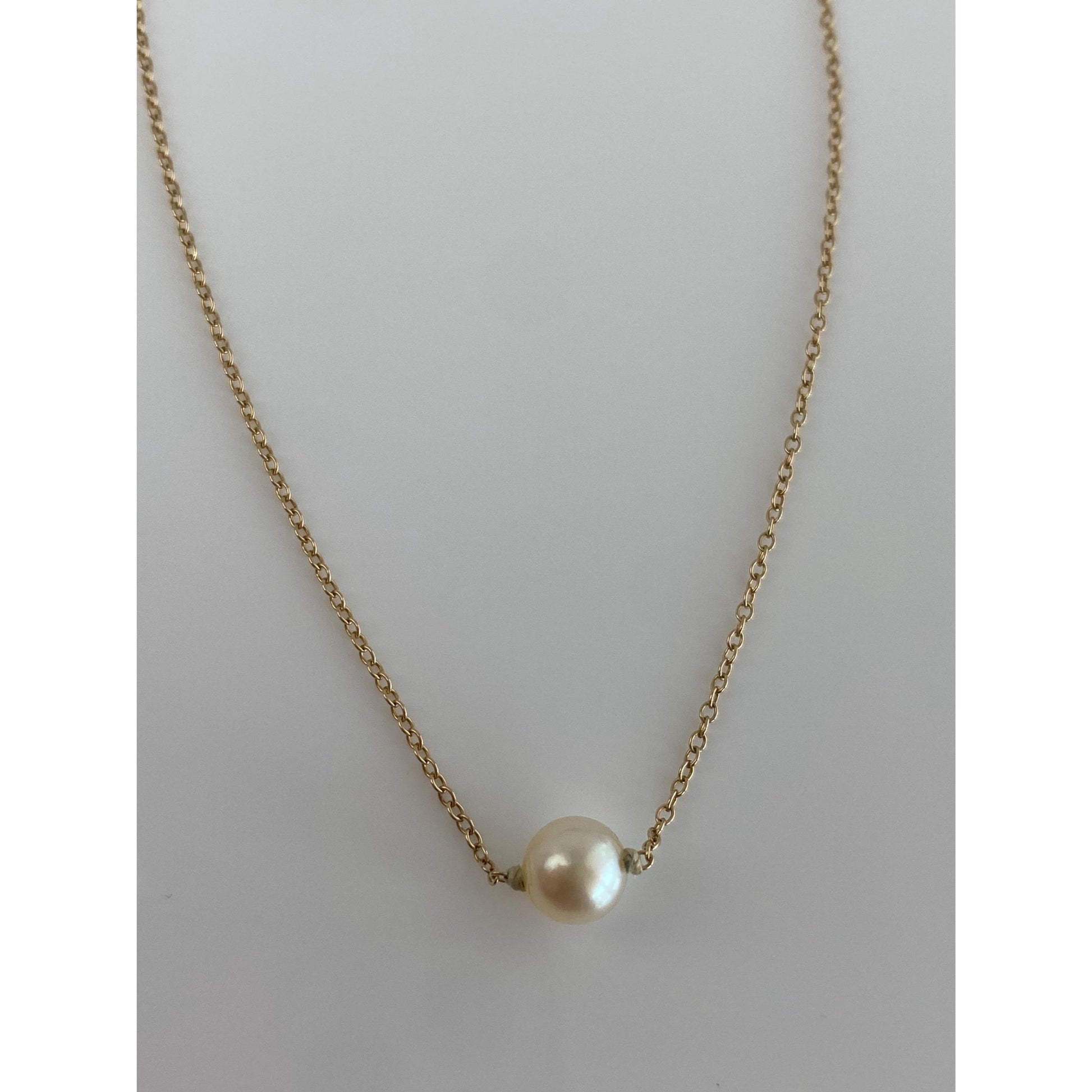 Vintage Solid 10k Yellow Gold Pearl Cable Chain Necklace - 18.25 inches