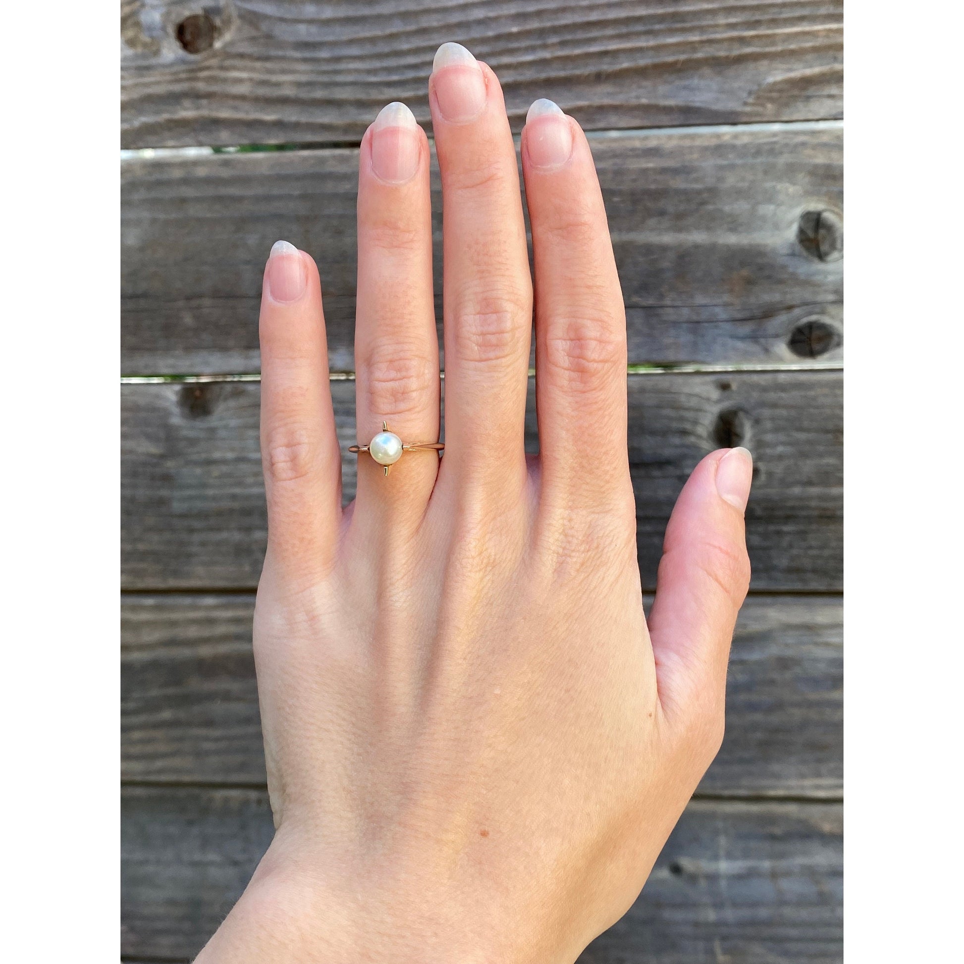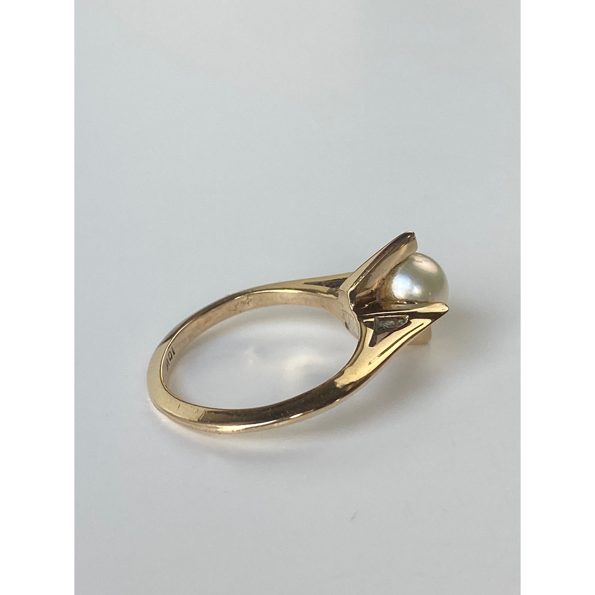 Vintage Solid 10k Yellow Gold Pearl Ring - Size 4.75