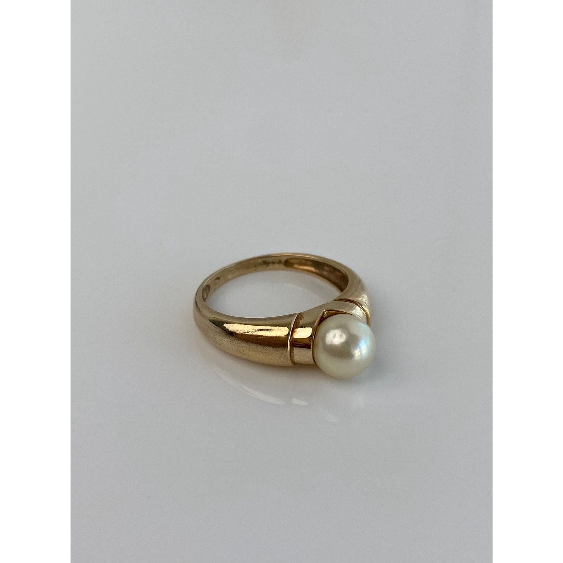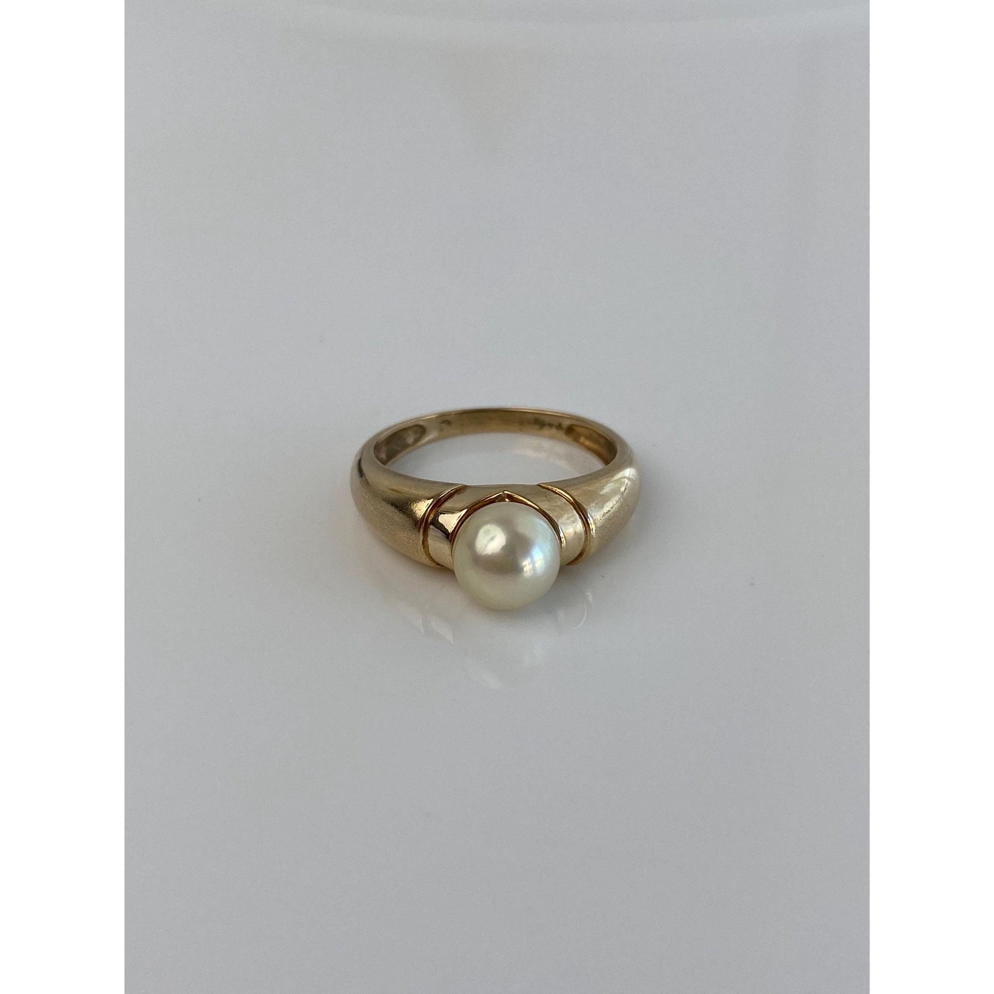 Vintage Solid 10k Yellow Gold Pearl Ring - Size 7.5