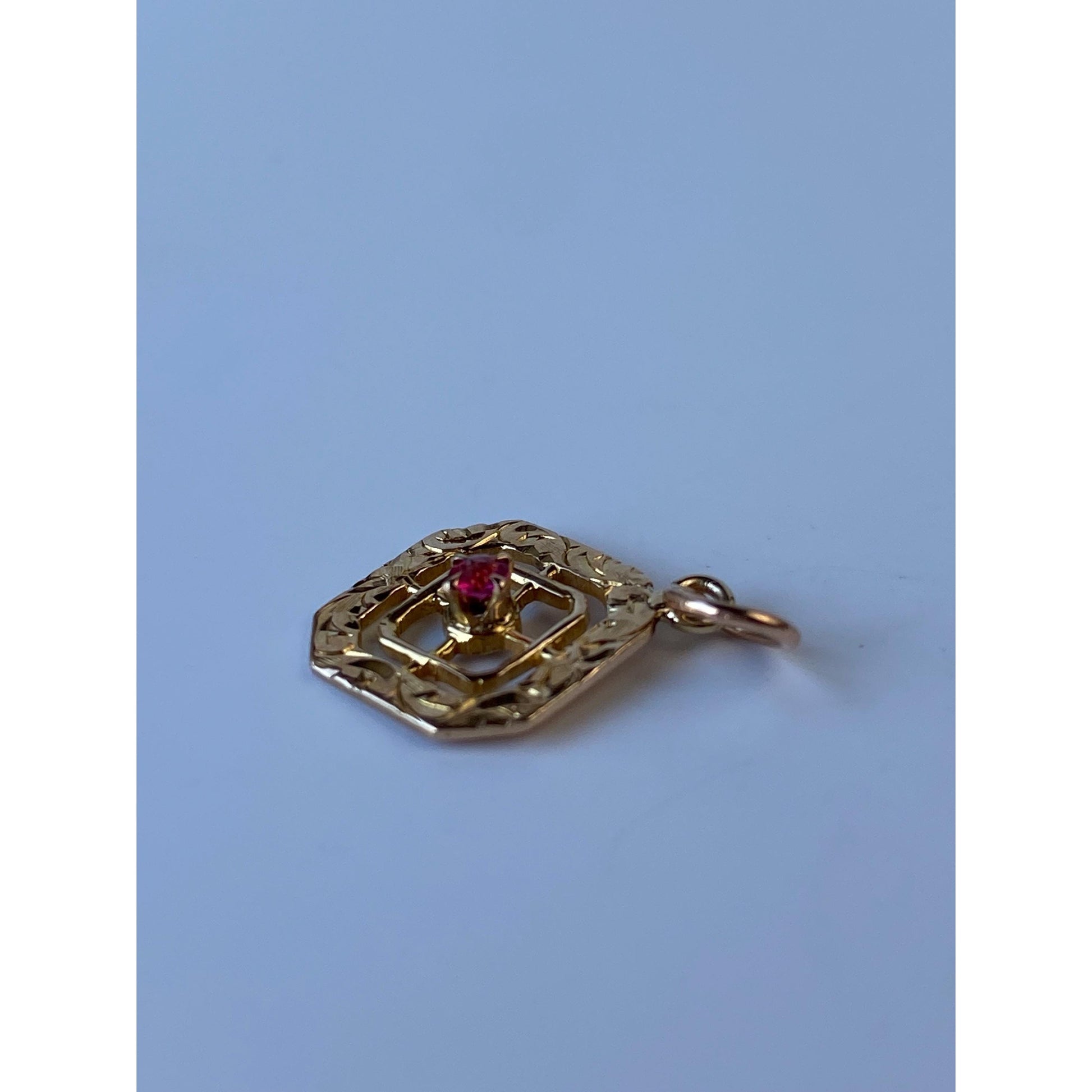 Vintage Solid 10k Yellow Gold Pink Cubic Zirconia Stick Pin Conversion Charm